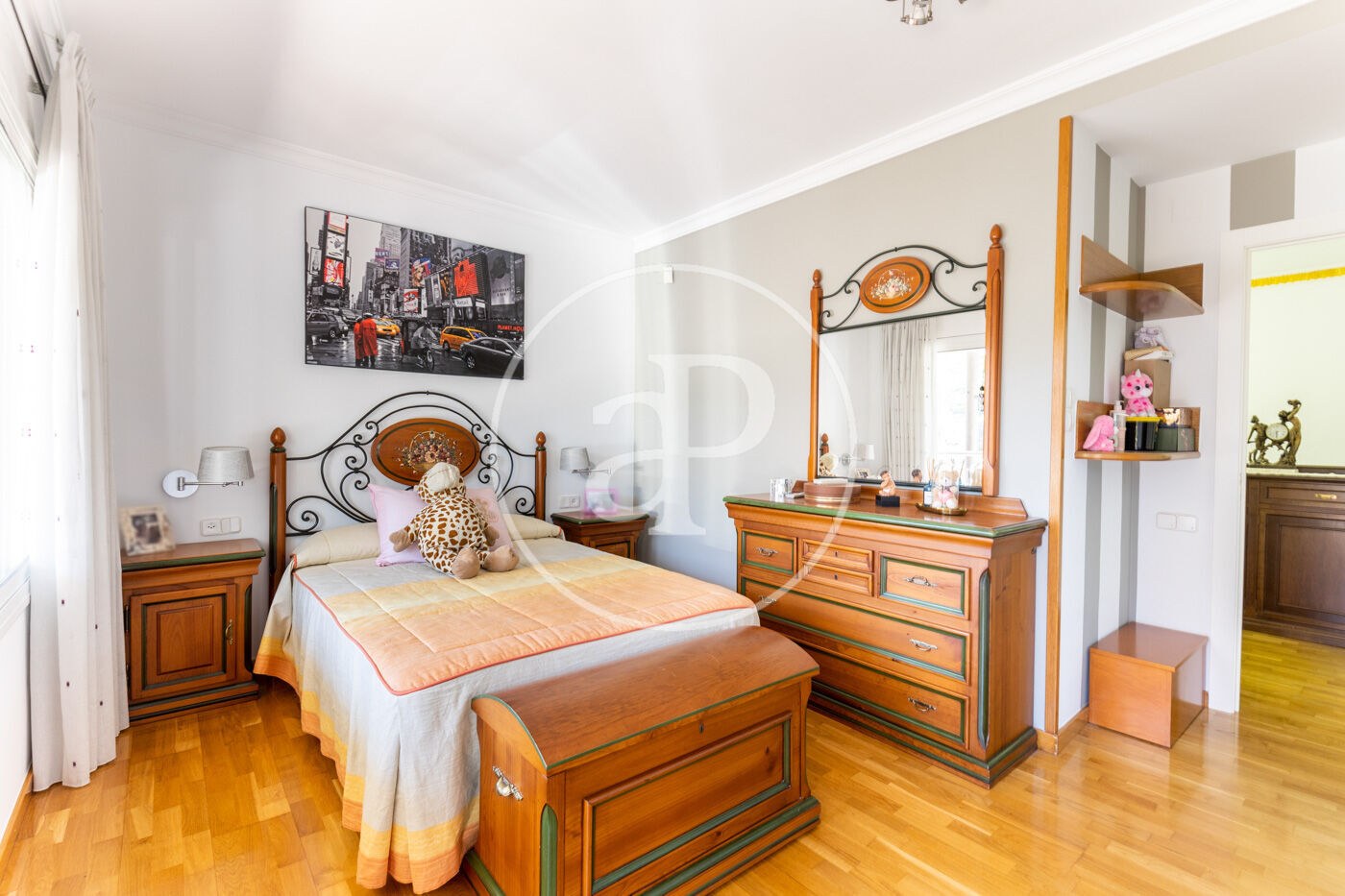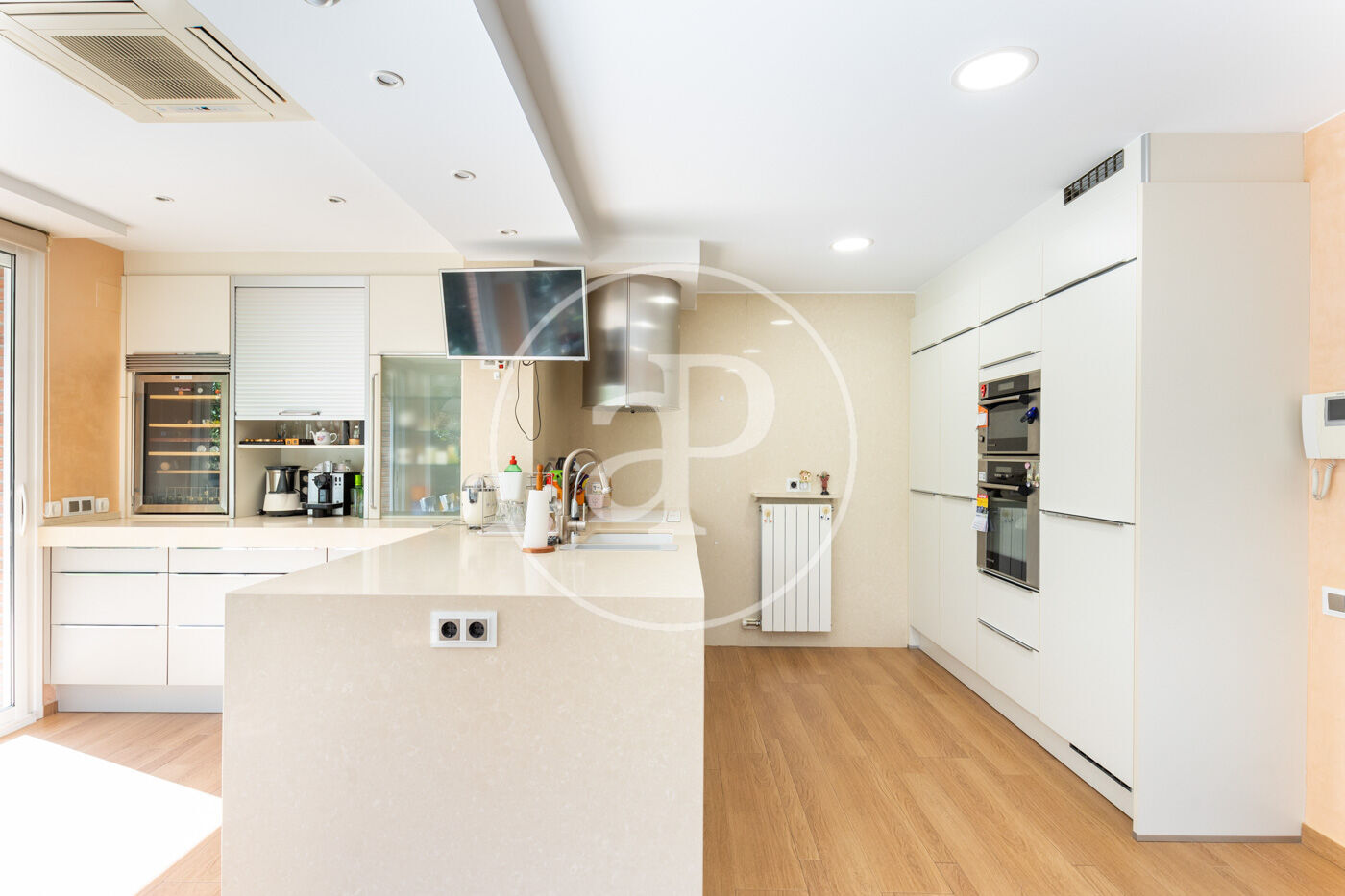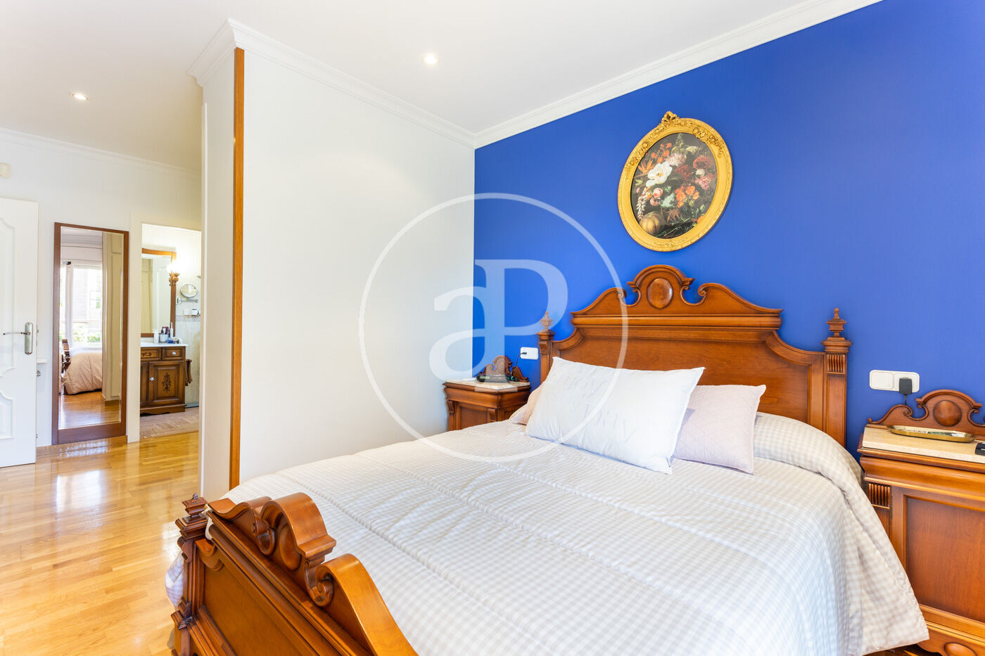 On the main floor there is a living room with fireplace and large openings to the garden. The independent kitchen, large and bright with its office space for dining, glazed and communicating with the garden. On this same floor there is a suite with office, dressing room and bathroom. Also with access to the garden and lots of light.