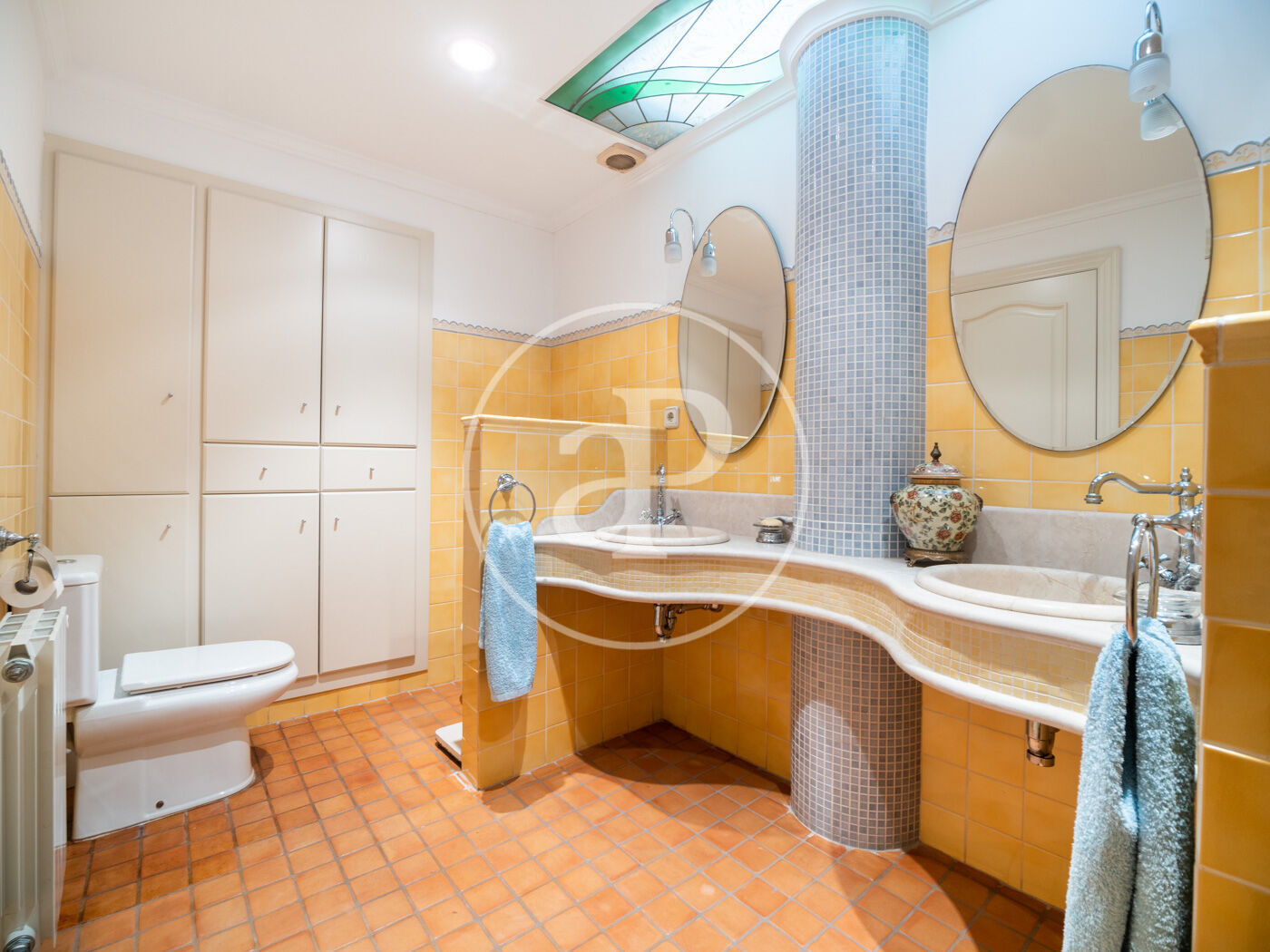 At aProperties, we present this exclusive detached house located in a high-end residential area, nestled in a unique natural setting with breathtaking views of the sea, the city, and the mountains. Ideal for those seeking peace, privacy, and connection with nature—without giving up excellent access to the center of Barcelona. PROPERTY DETAILS 1,429 m² plot in an elevated area 429 m² built area, spread over 3 levels with a design adapted to the slope 6 bedrooms (1 master suite with fireplace, walk-in closet, and private terrace) 4 full bathrooms Spacious living-dining room with fireplace and large windows 2 multipurpose rooms (play area, gym, office, etc.) Staff quarters Independent kitchen with access to green area Garden surrounded by lush vegetation Enclosed garage for 4 cars with direct access to the house HIGHLIGHTED ADVANTAGES Sea and city views from all floors Very bright throughout the day thanks to its orientation Great potential for renovation and layout customization Total privacy in one of the most peaceful areas of the city PREMIUM LOCATION Very close to Montiba School Upper area of Barcelona – exclusive, natural, and quiet surroundings Just minutes from the city center Well connected: bus stop for line 111 – Tibidabo nearby A UNIQUE OPPORTUNITY IN THE MOST SOUGHT-AFTER AREA OF BARCELONA A house with the potential to become the home of your dreams. Location, views, and privacy: the three pillars of true luxury. Contact us for more information or to schedule a private visit.