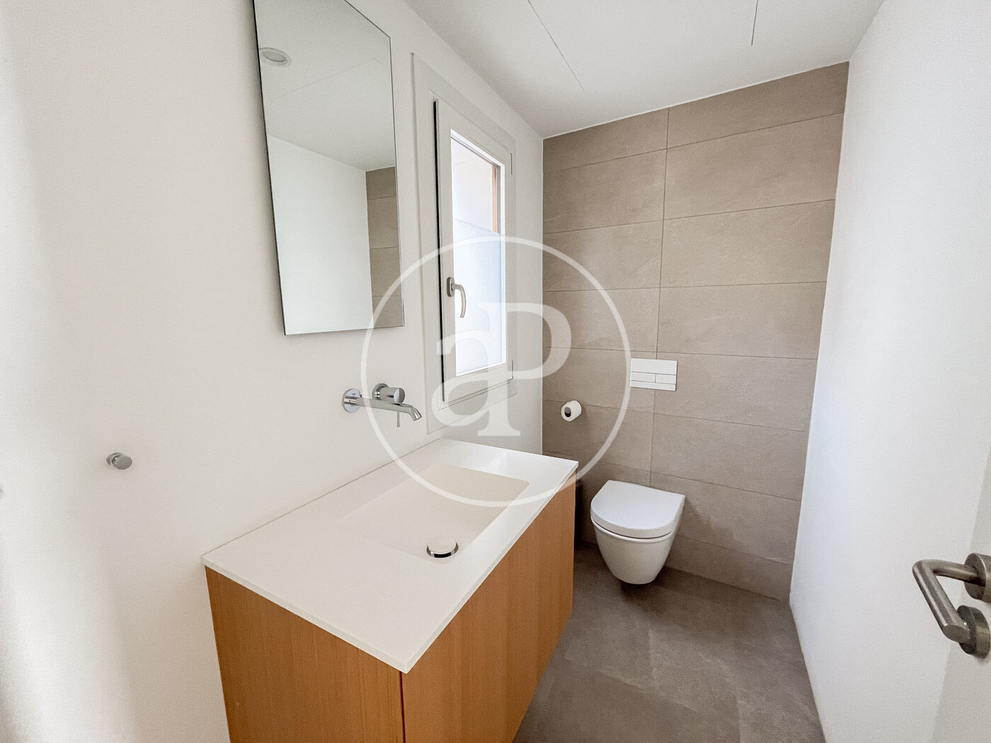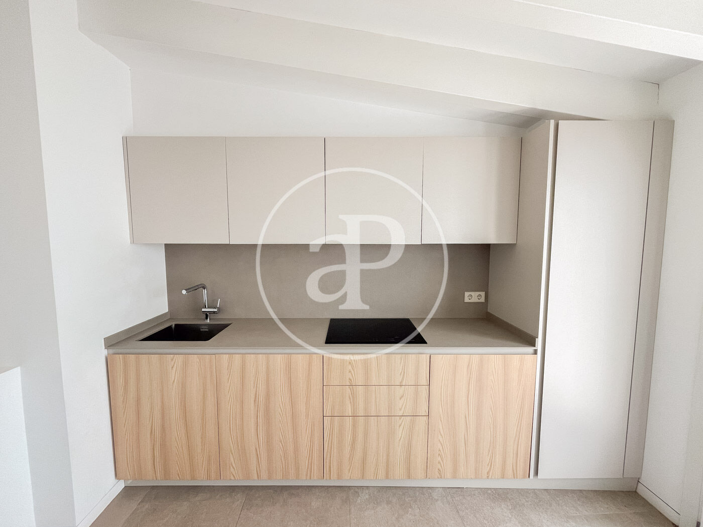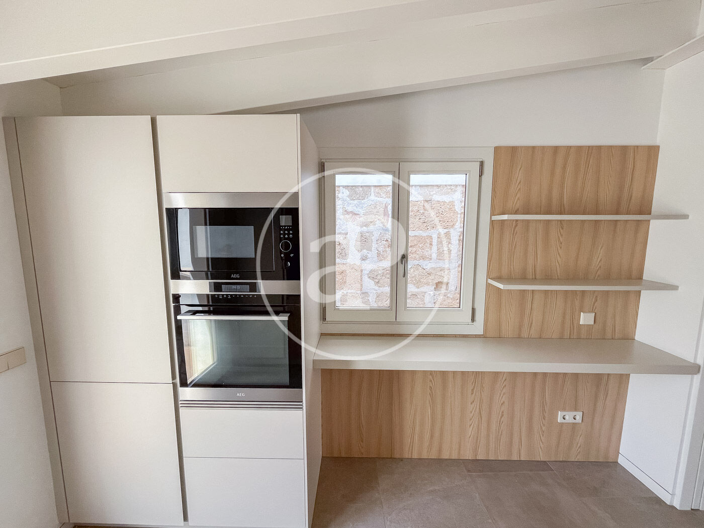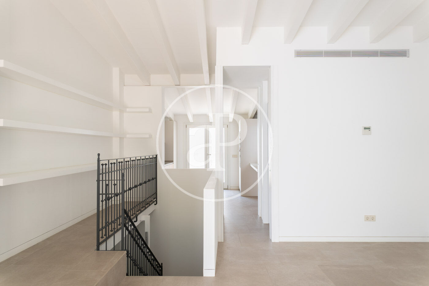 The upper floor boasts a bright living-dining room with access to a 15 m² terrace offering spectacular views of the vibrant Paseo del Born. It also includes a guest toilet and a semi-open kitchen with access to another peaceful 15 m² terrace, perfect for enjoying the tranquility and pleasant climate.