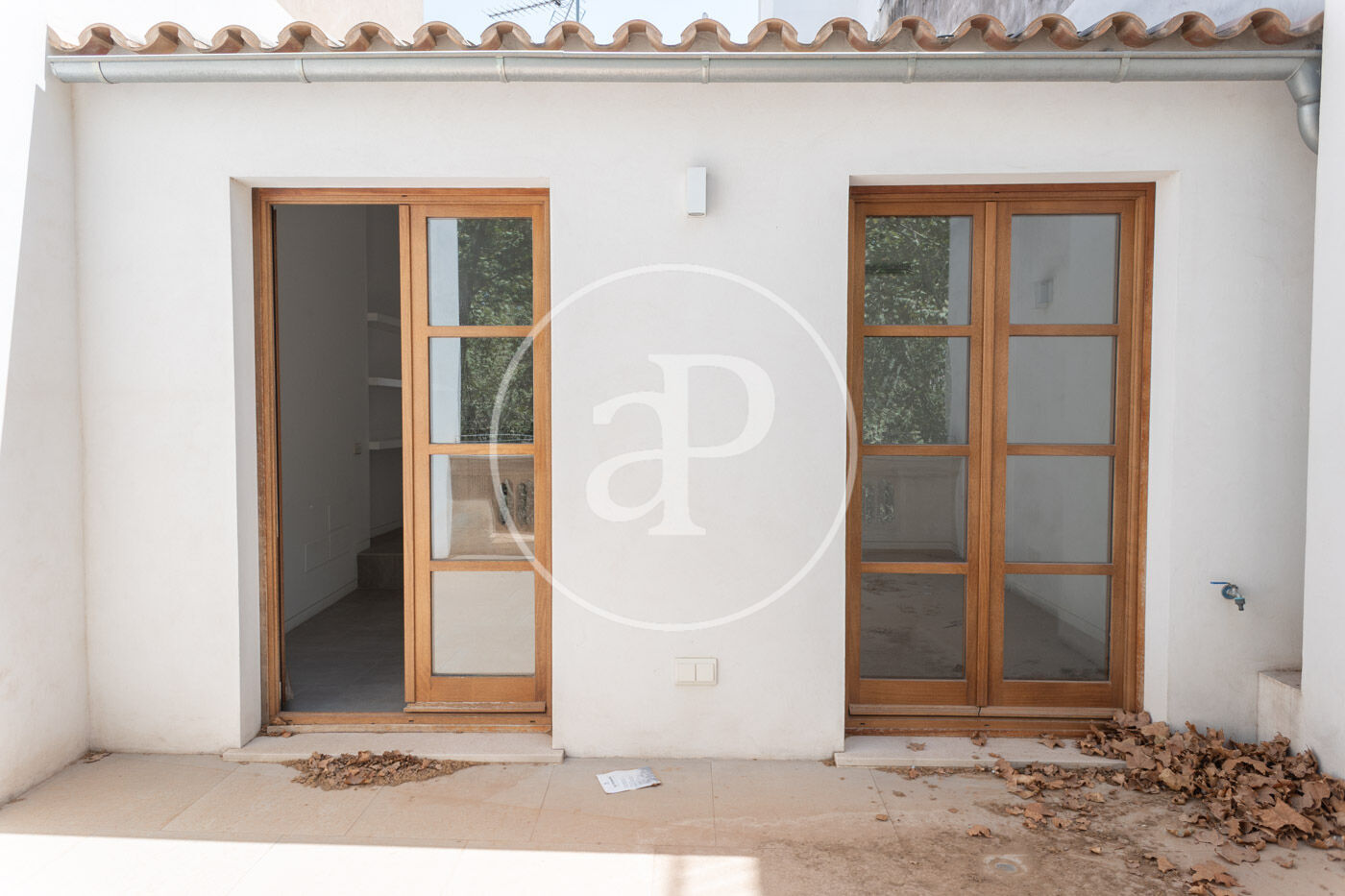 Notable features include large windows, wooden beams, built-in wardrobes, and a high-quality renovation featuring porcelain flooring and an efficient hot/cold air conditioning system, making it ideal for year-round living.