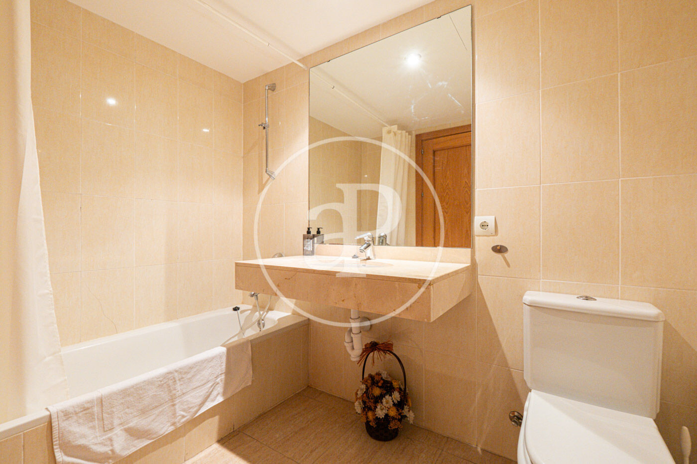This apartment consists of a hall where we find a big built-in wardrobe that gives access to two big bedrooms with access to a small balcony over the communal swimming pool and a big bathroom with bathtub.