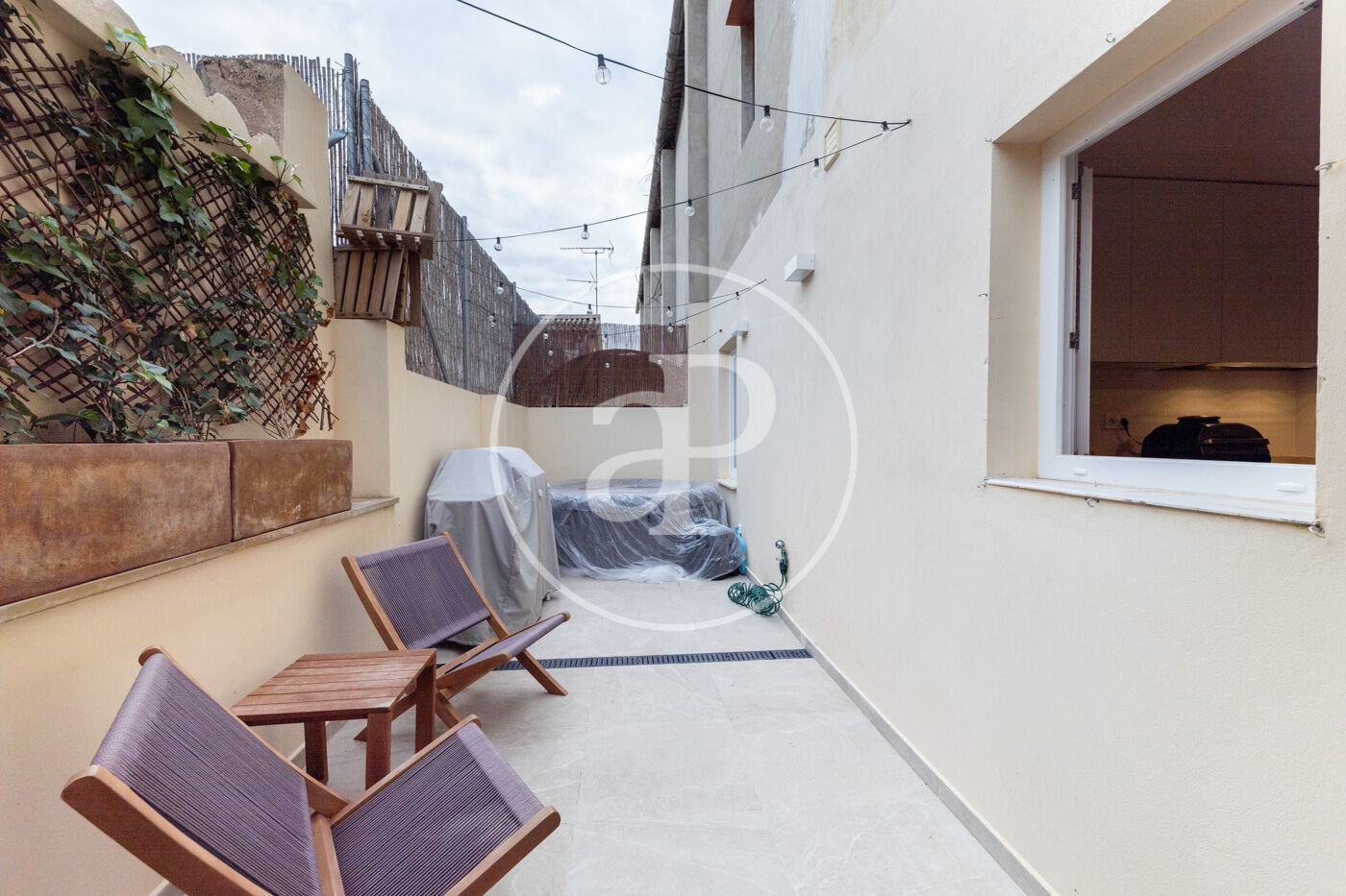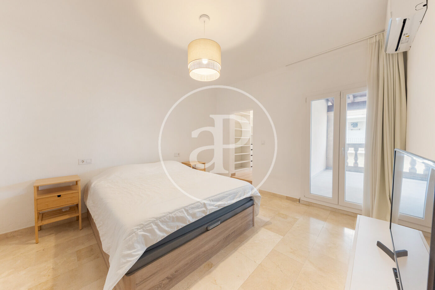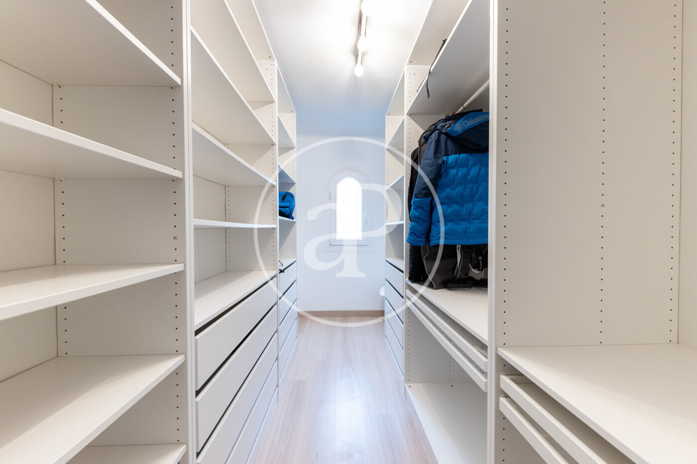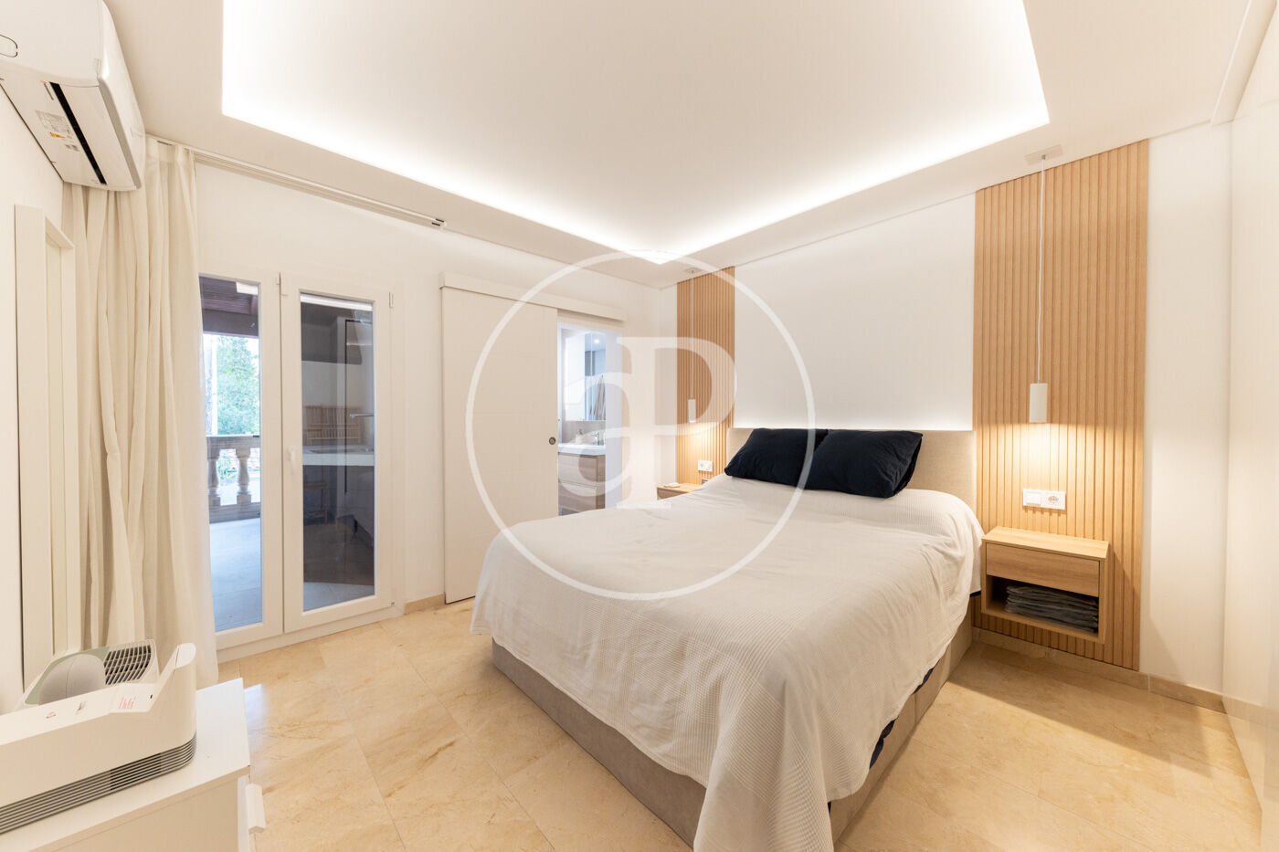 Via a staircase, you reach the night area, where four double bedrooms are distributed, all with access to a large terrace decorated with a table, sofas, and a built-in barbecue. One of the bedrooms has an en-suite bathroom and wardrobes, another has a walk-in closet, and the remaining two are also spacious and bright. There is a second full bathroom with a bathtub.