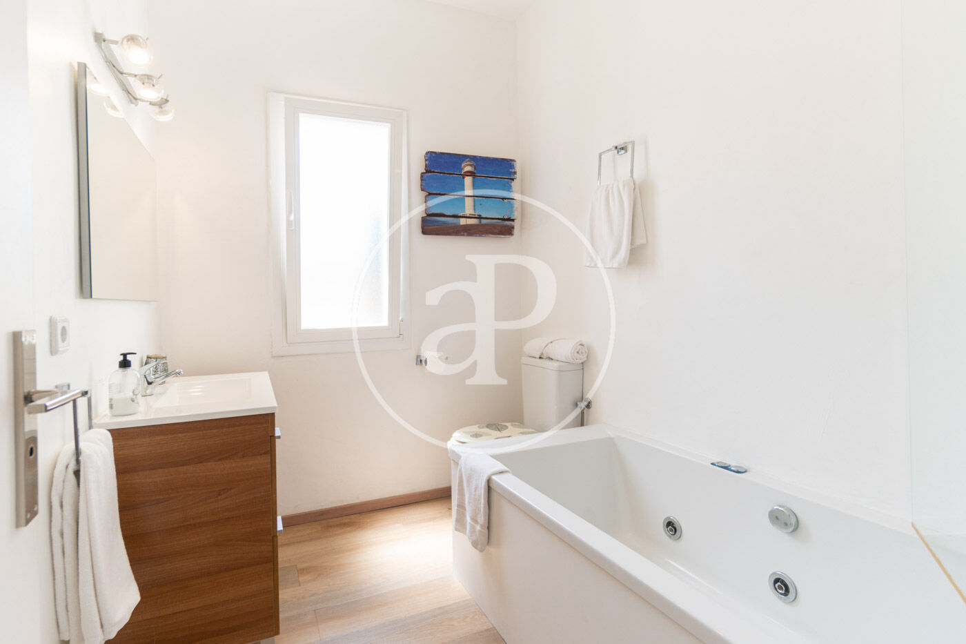 There are three large double bedrooms, all equipped with fitted wardrobes. In addition, there is an office that gives you the possibility to work from the comfort of your home. There are two bathrooms, one with a shower and the other with a bathtub.