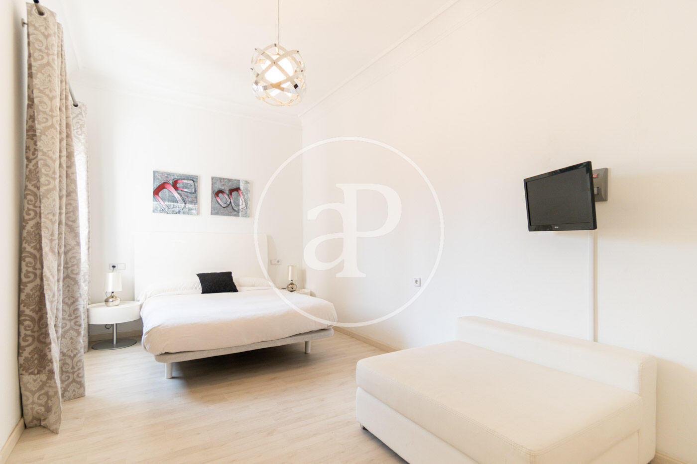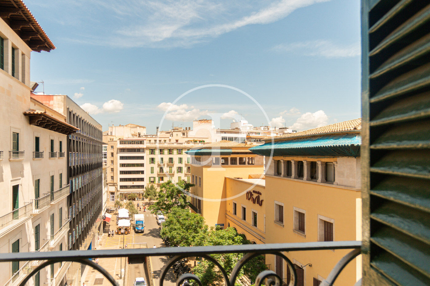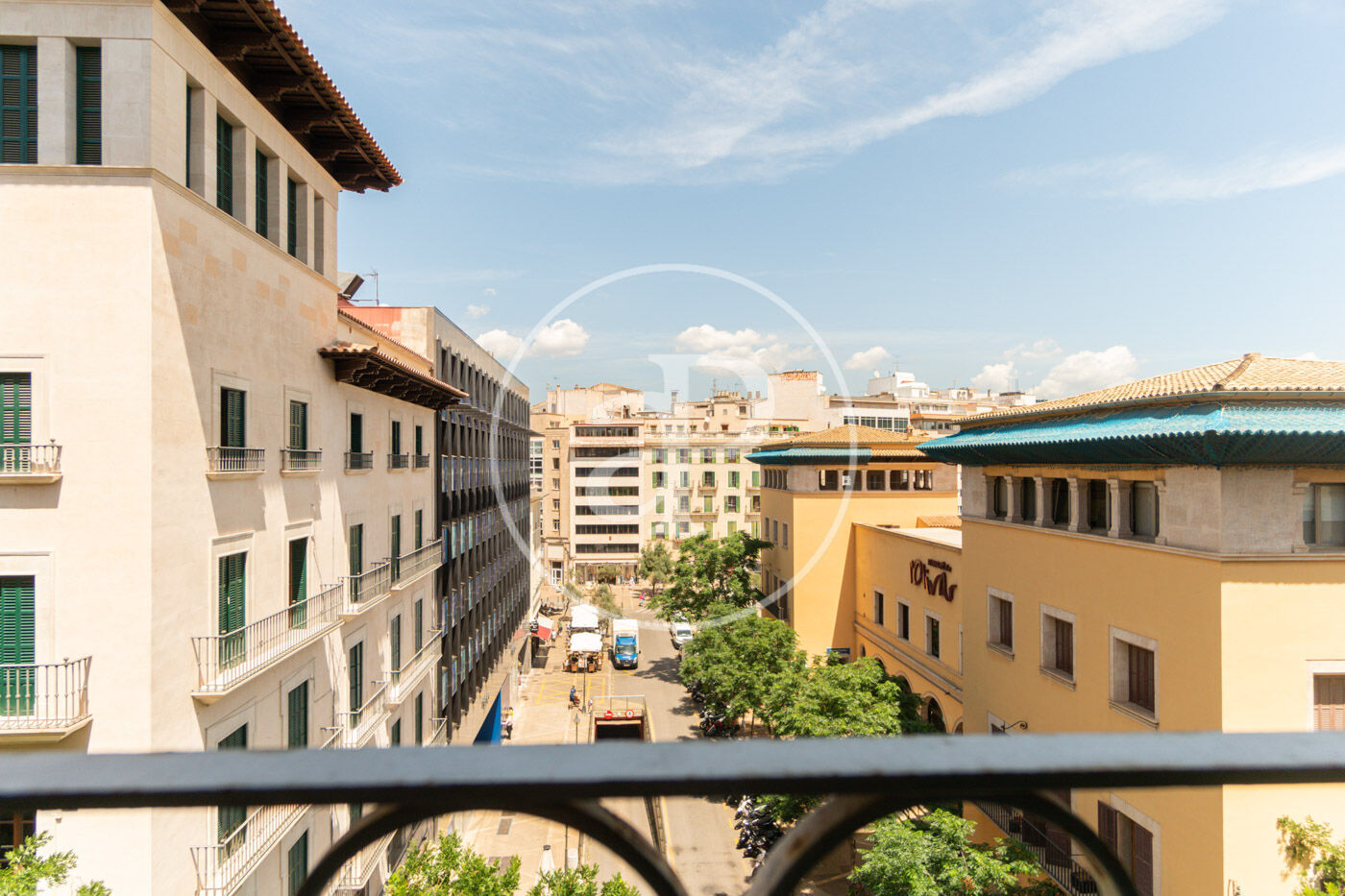 Surrounded by cozy terraces, bars and restaurants, the scene of Christmas markets and concerts during the patron saint festivities, historic and emblematic buildings coexist with others of new construction and avant-garde style. Barely fifty meters away, the diverse offer of fresh and prepared victuals from the Olivar market, as well as ecological purchases in the Plaza de los Patines delights residents and visitors, while its streets make up a network of shops and shopping centers in spread spectrum. A few minutes away, the Parque de las Estaciones is an oasis and an ideal meeting point sheltered by its trees and children's play areas. In the middle of the square stands the equestrian sculpture of the conqueror of the once walled city: King Jaime I. However, it is an area in continuous revaluation that welcomes a large part of the institutions and public and private organizations and is a true luxury for those who decide to set up residence and invest, just a few minutes from the airport, the sea and all the services of a boiling Palma where you can still remember that you are on «the island of calm».