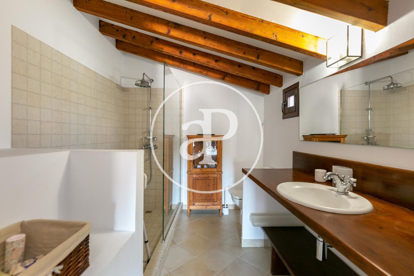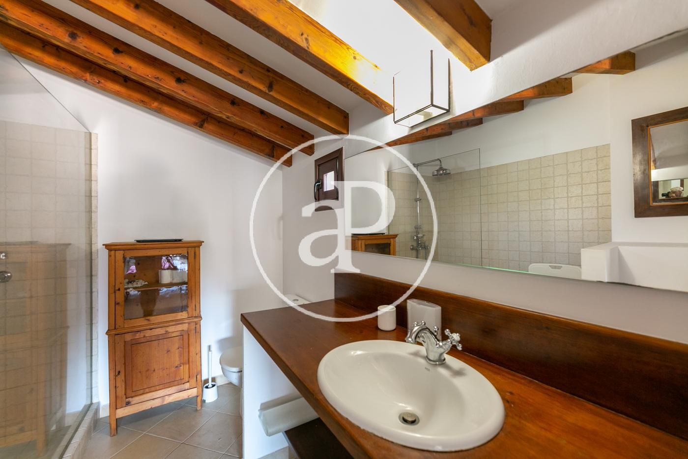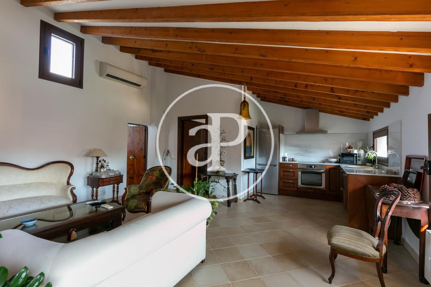 The property consists of a very spacious and bright entrance hall with a full view of the living room and kitchen, which is fully equipped and with appliances in perfect working order. Next we find an exterior double bedroom with wardrobes and a complete en-suite bathroom with shower. Finally, there is a small laundry room. There is also a communal terrace.