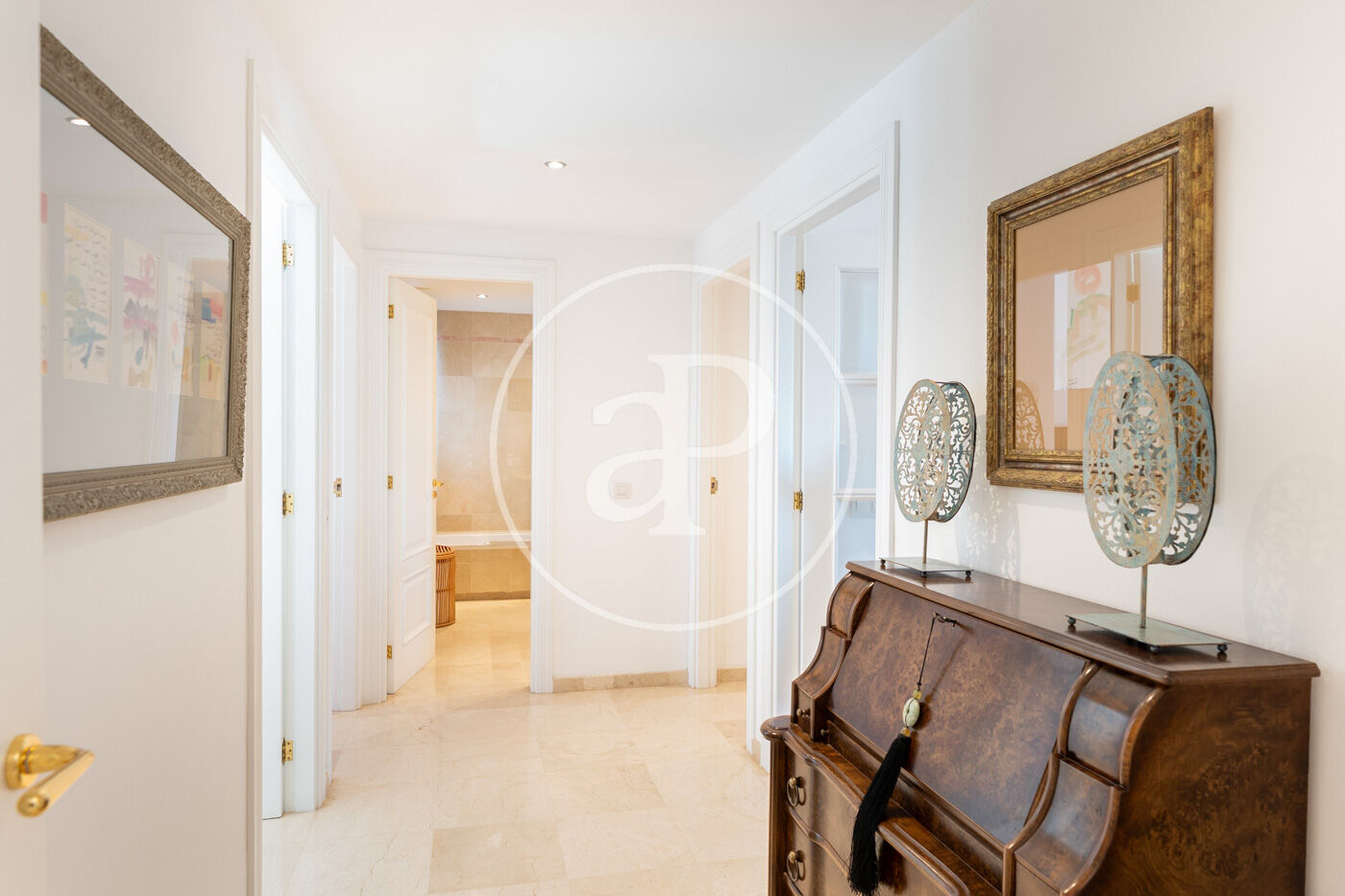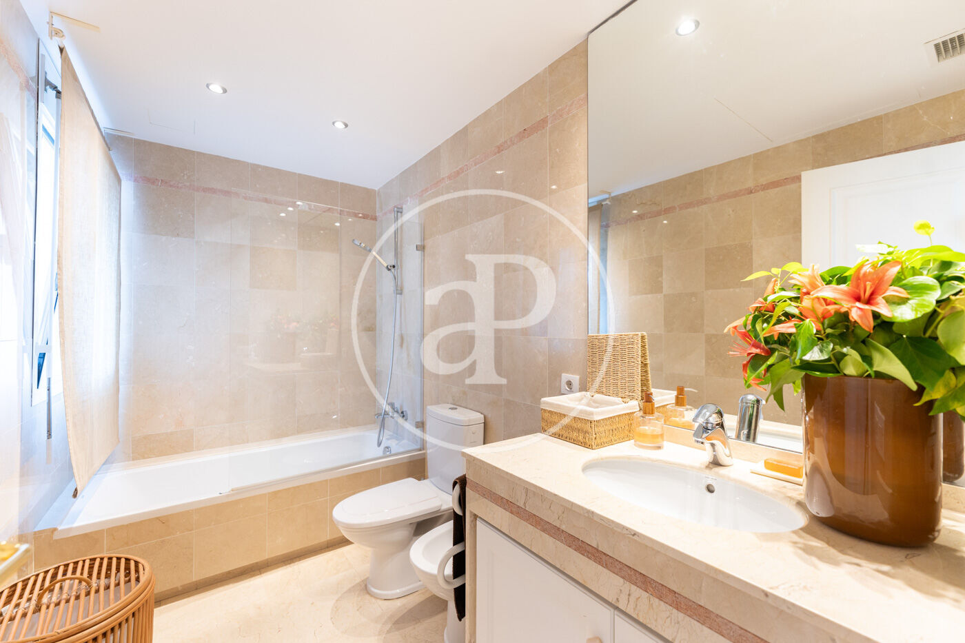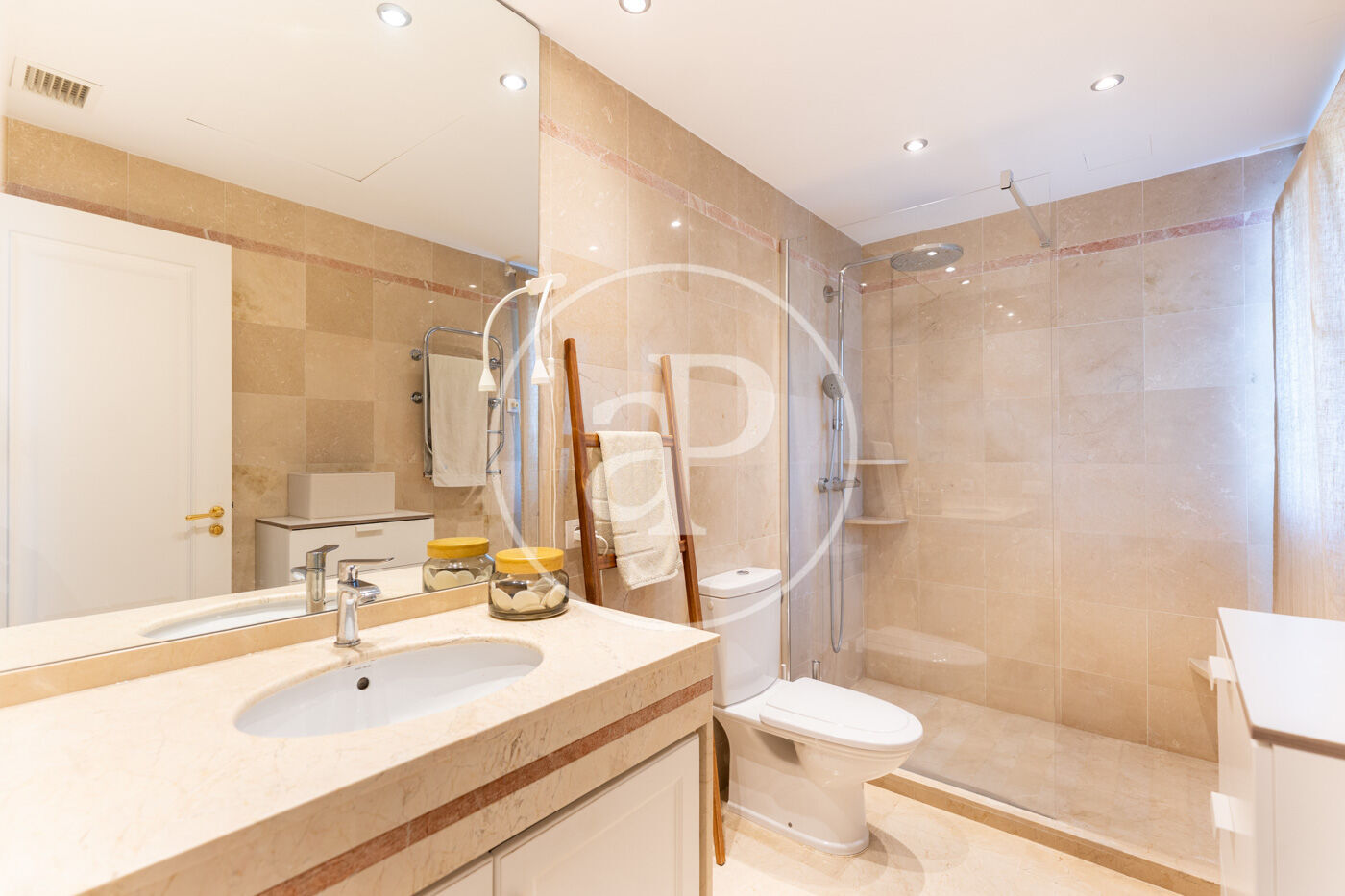 The night area consists of 3 bedrooms and two bathrooms. The main bedroom has an en-suite bathroom, walk-in closet and direct access to the large terrace with views. In addition, the other two exterior bedrooms with built-in wardrobes share a full bathroom.