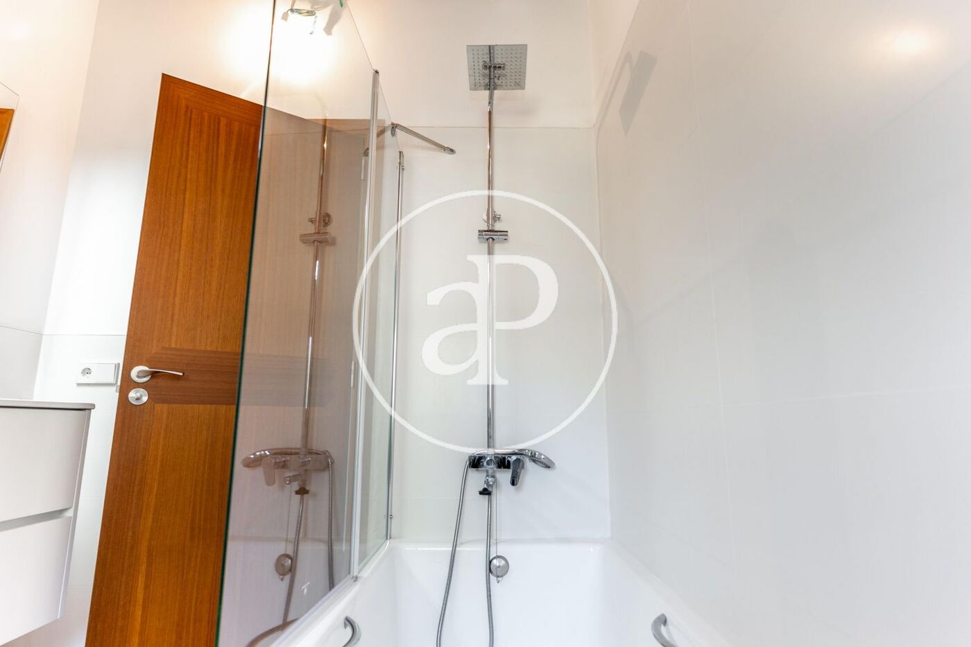 The upper floor, the night area, includes a living room, 3 double bedrooms with fitted wardrobes and en-suite bathrooms (two with showers and one with a bathtub), all with terrace access and unobstructed views.