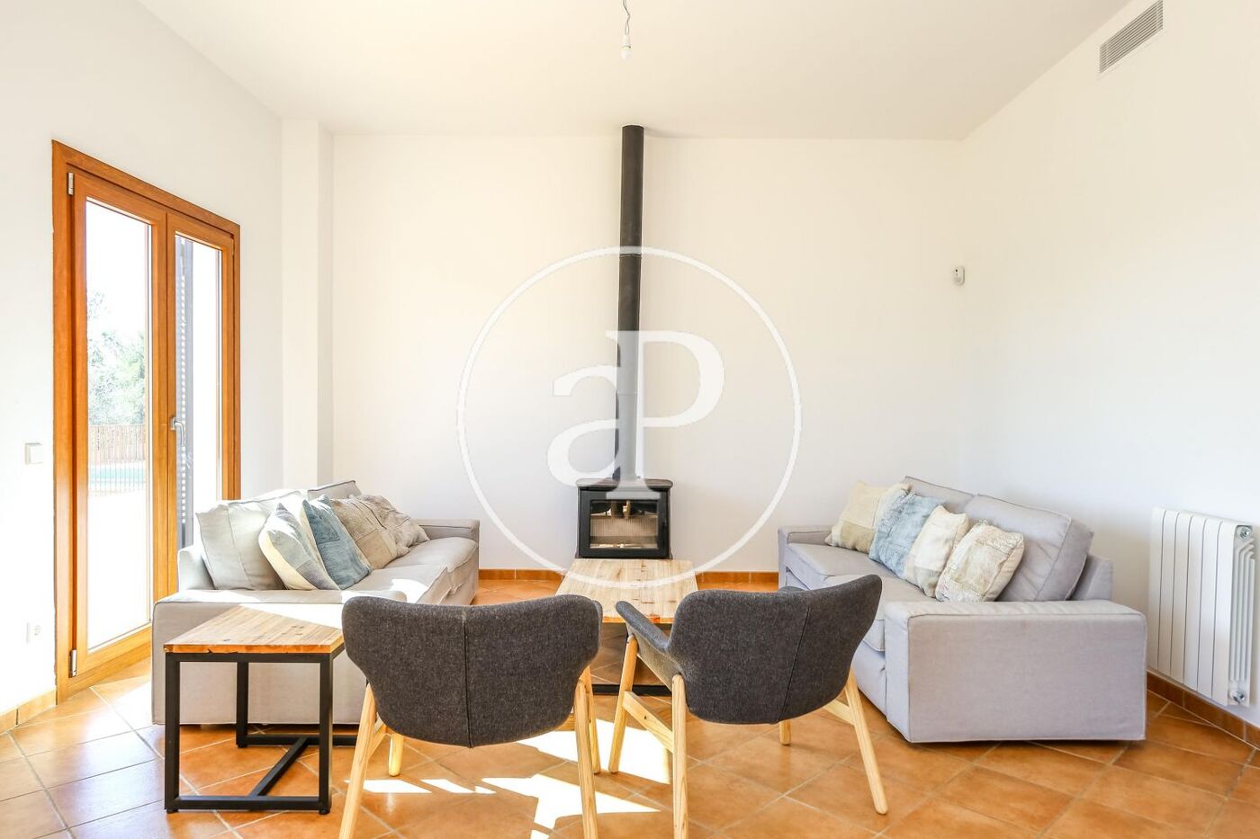 Built in 2017, the house features ducted air conditioning, oil heating, wooden carpentry, double-glazed windows, a wood stove in the living room, well, and solar panel. Outdoors, there’s a saltwater pool, multiple parking spaces, and a beautiful garden.