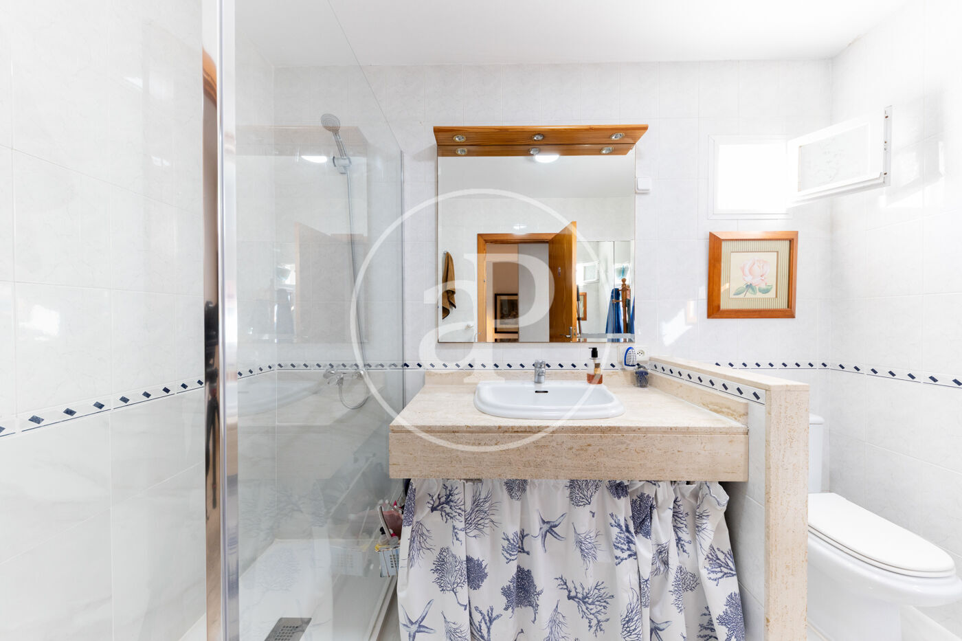 It features a large living-dining room, ideal for leisure moments with family or friends. The fully equipped kitchen is perfectly connected to a large terrace, perfect for enjoying Mallorcan afternoons. The study, also on this floor, offers an additional space that you can adapt to your needs, whether as an office or reading room.