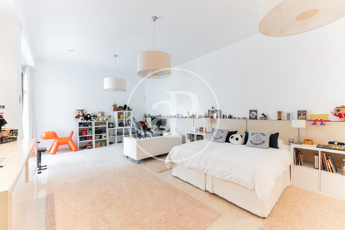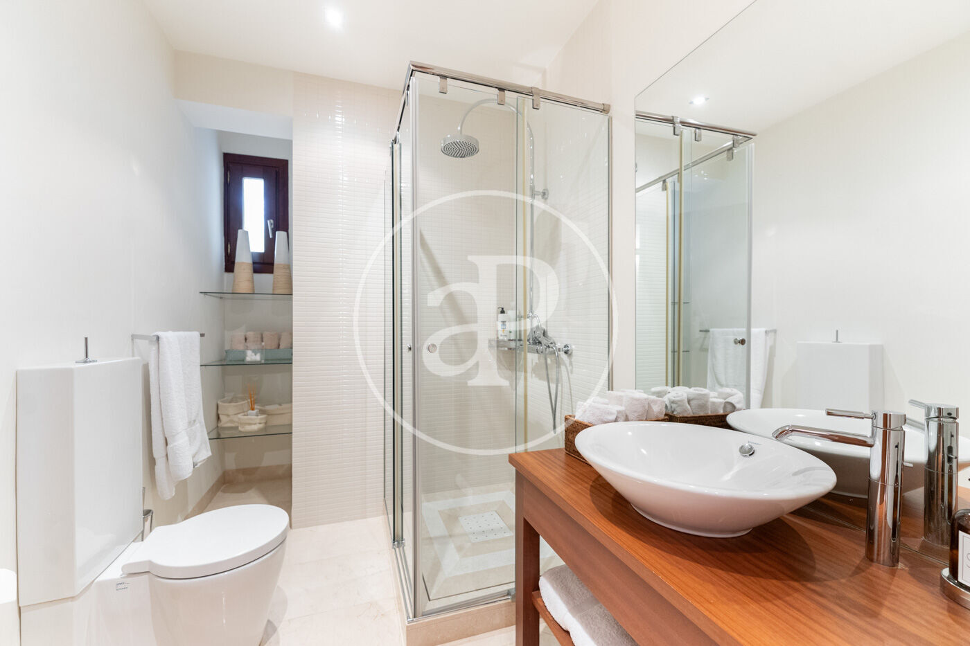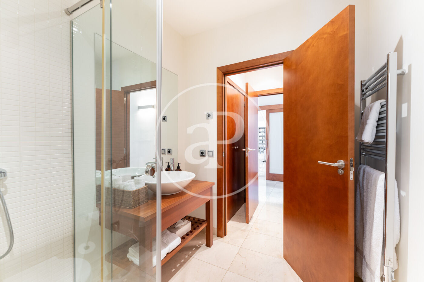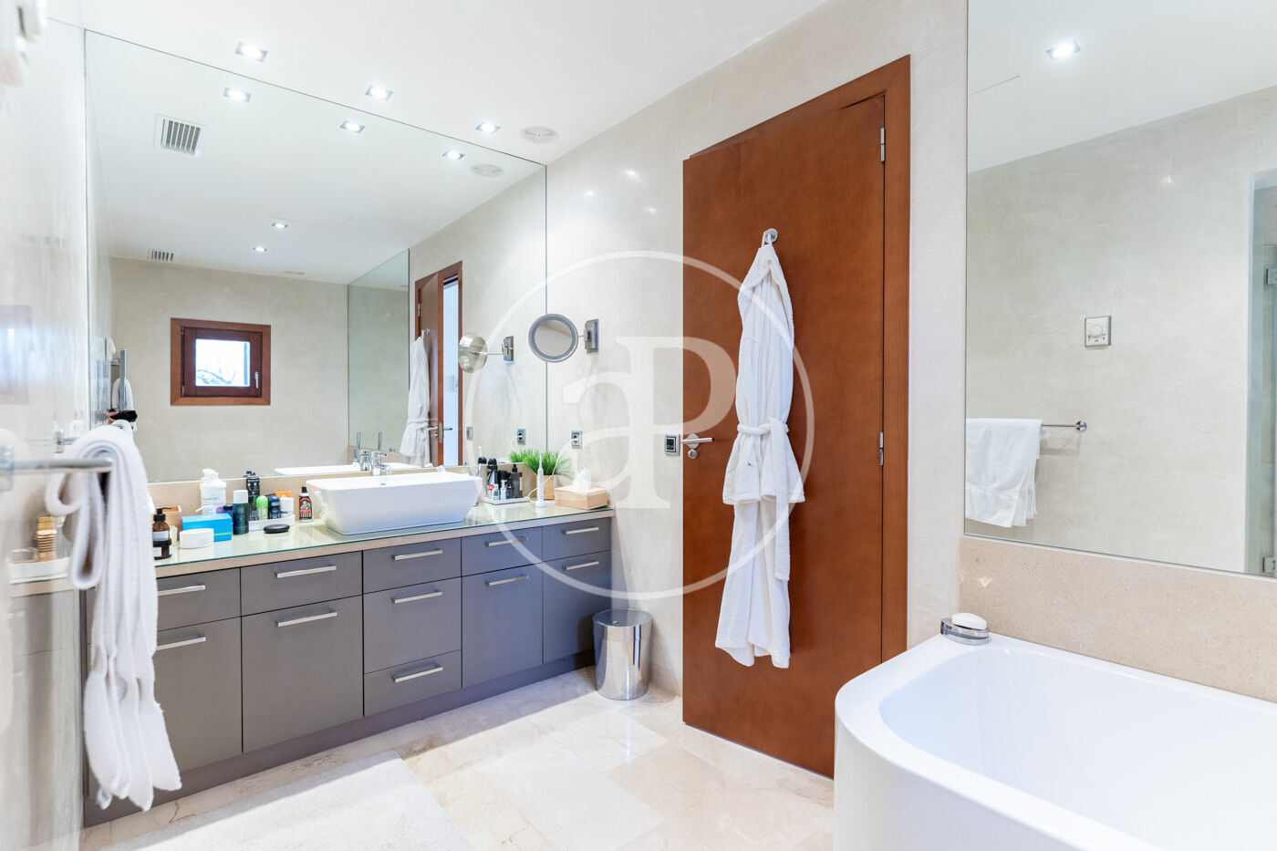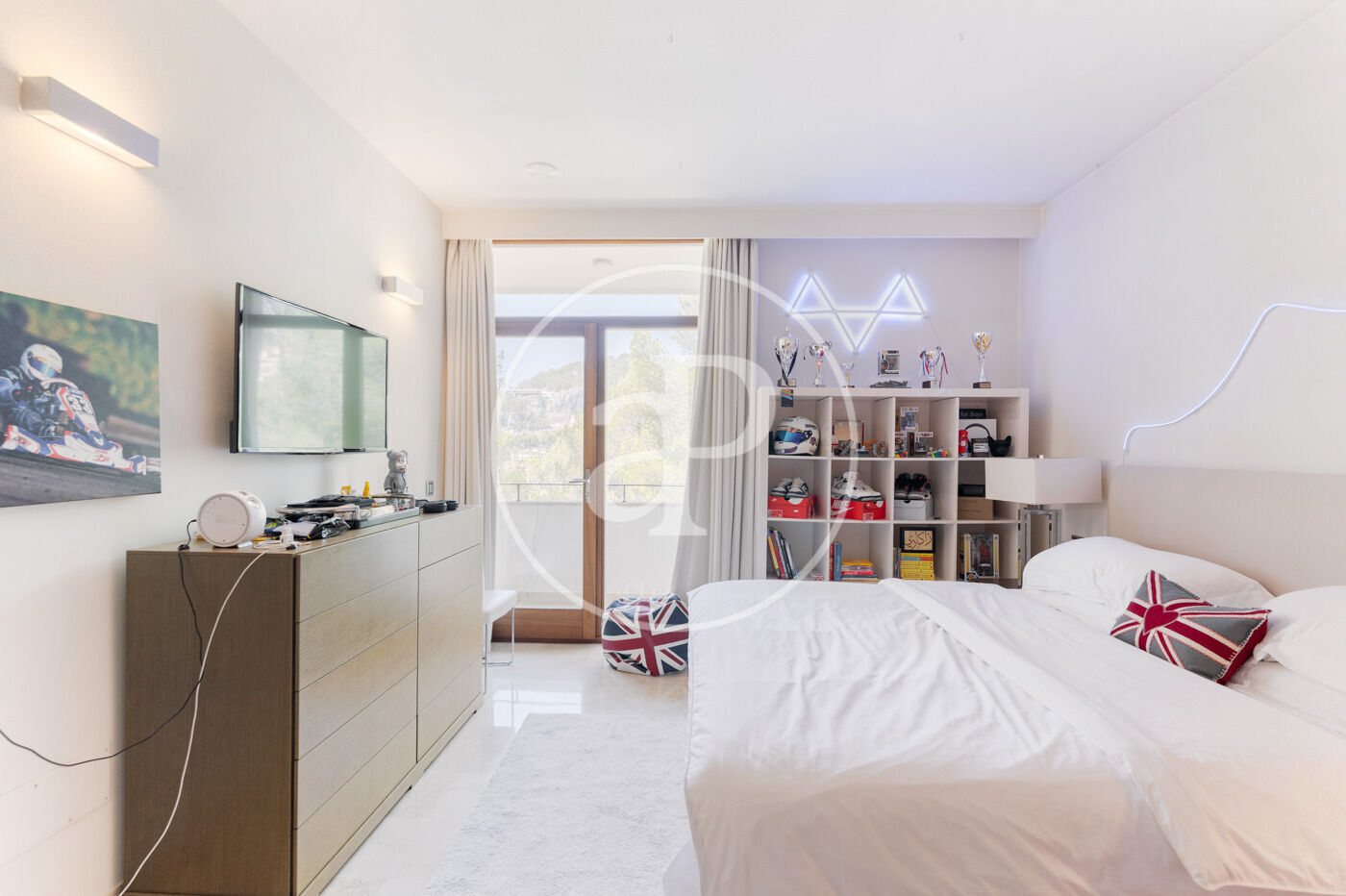 The villa features five spacious bedrooms, four of which are en suite, offering privacy and comfort for both family and guests. All rooms stand out for their size, natural light, and high-end finishes.