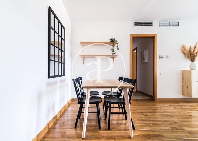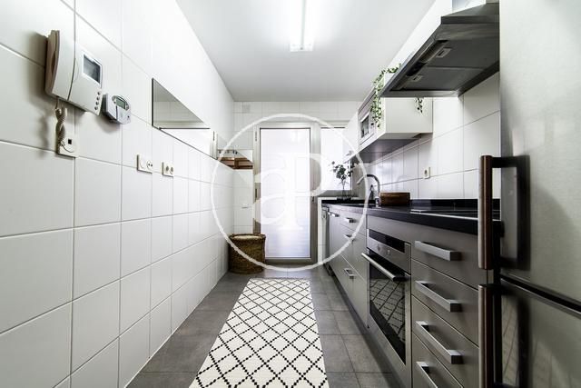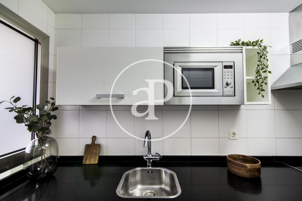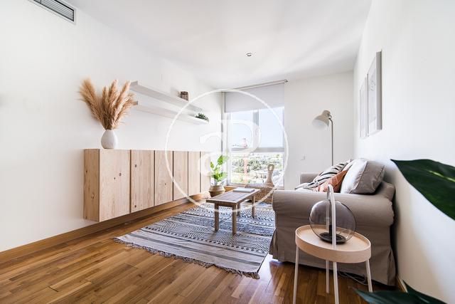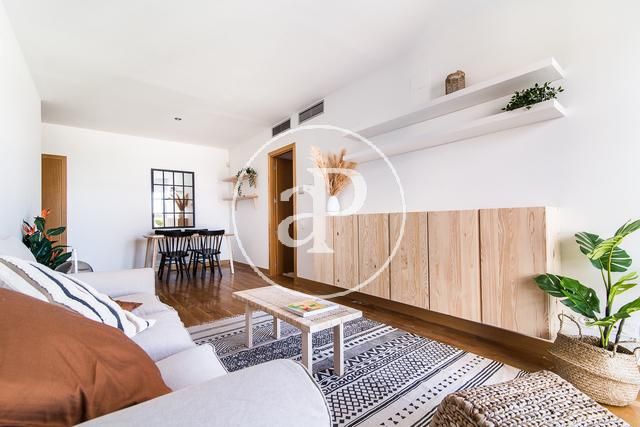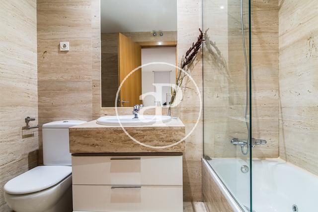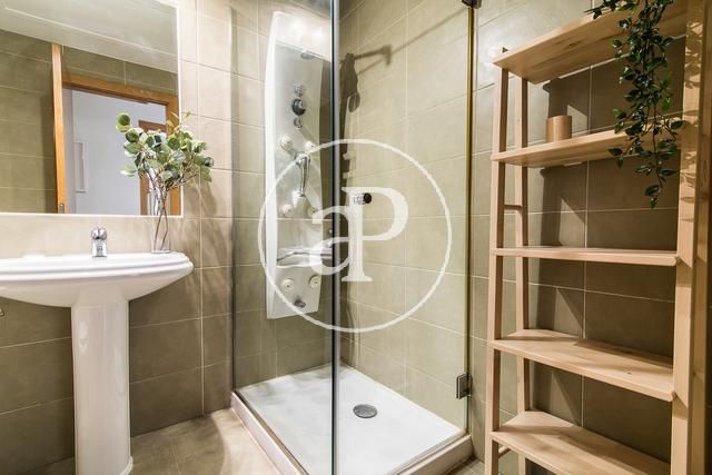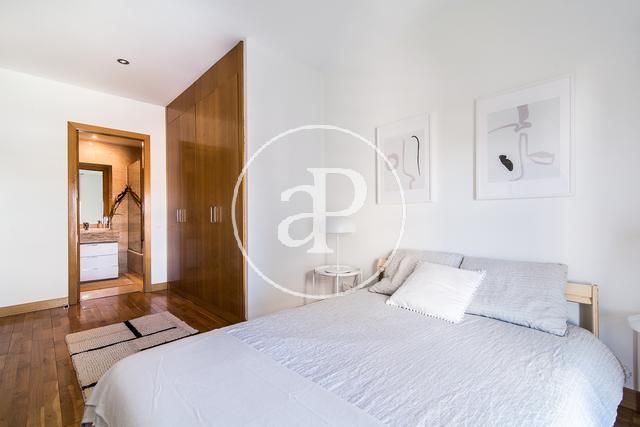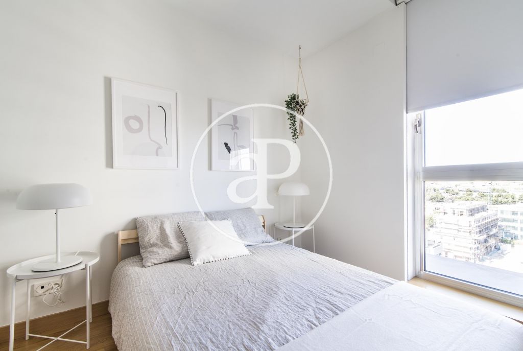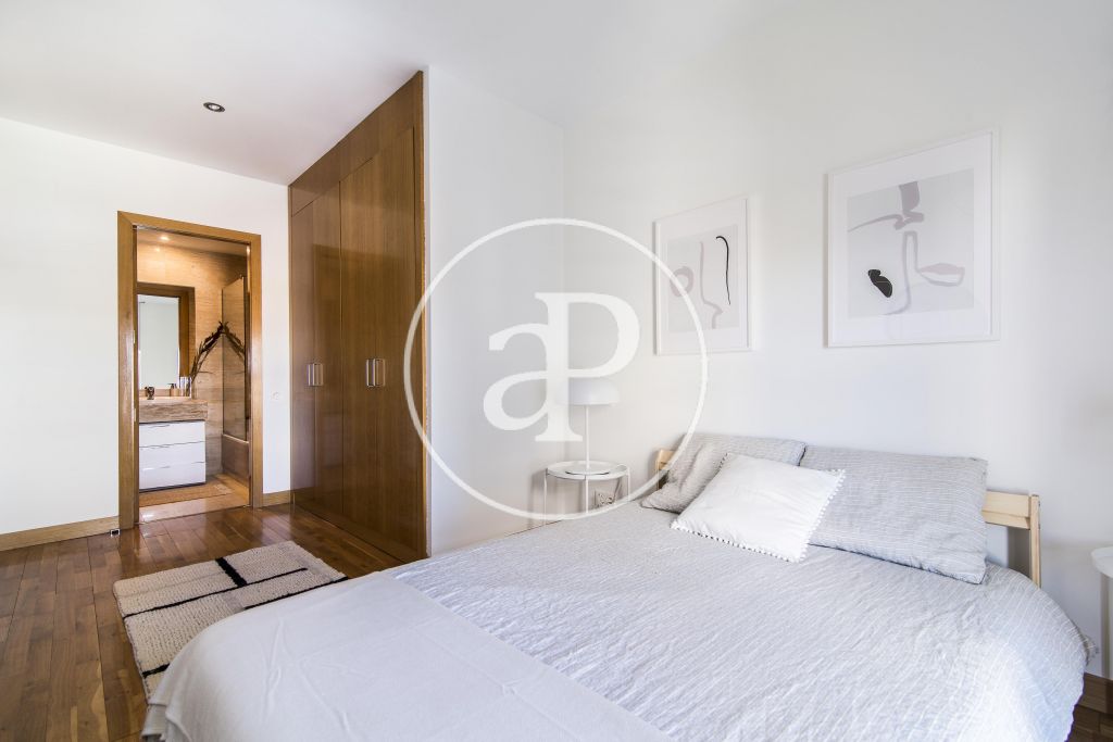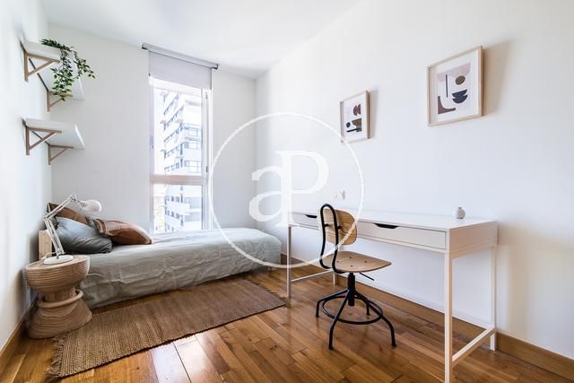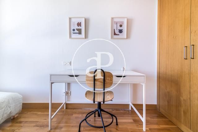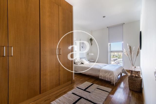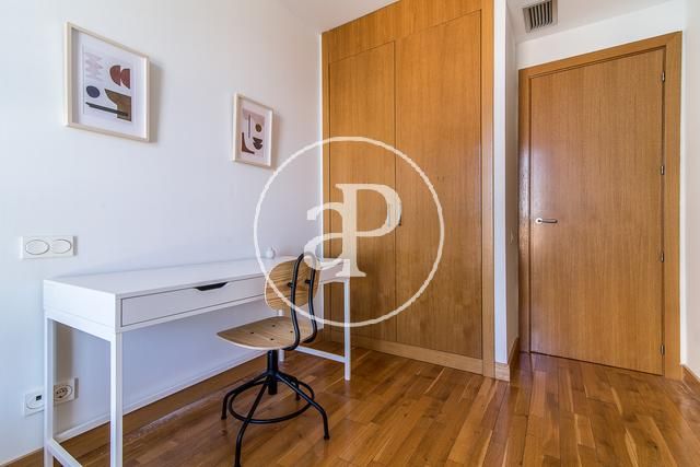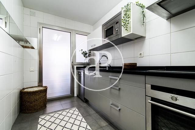 Located in a quiet and residential area with excellent access to the main roads of Madrid is this splendid apartment with storage room and two parking spaces. The building has twenty floors and has four elevators. The house has two bedrooms and two bathrooms. The master bedroom has the bathroom en suite. The kitchen is independent and has a small covered terrace. The bedrooms and the living room have electric shutters and air conditioning. The floor is totally exterior and has extraordinary unobstructed views and lots of light. The urbanization has large green areas, 24h doorman, semi-Olympic pool and children's fenced pool. It also has a full gym, changing rooms and sauna. Located 200 meters from the Fuente de la Mora station (multimodal station of the metro line 1 and the C-1 and C-10 commuter lines). Access to the M-30 is immediate by car, as well as access to the A1 and M40.