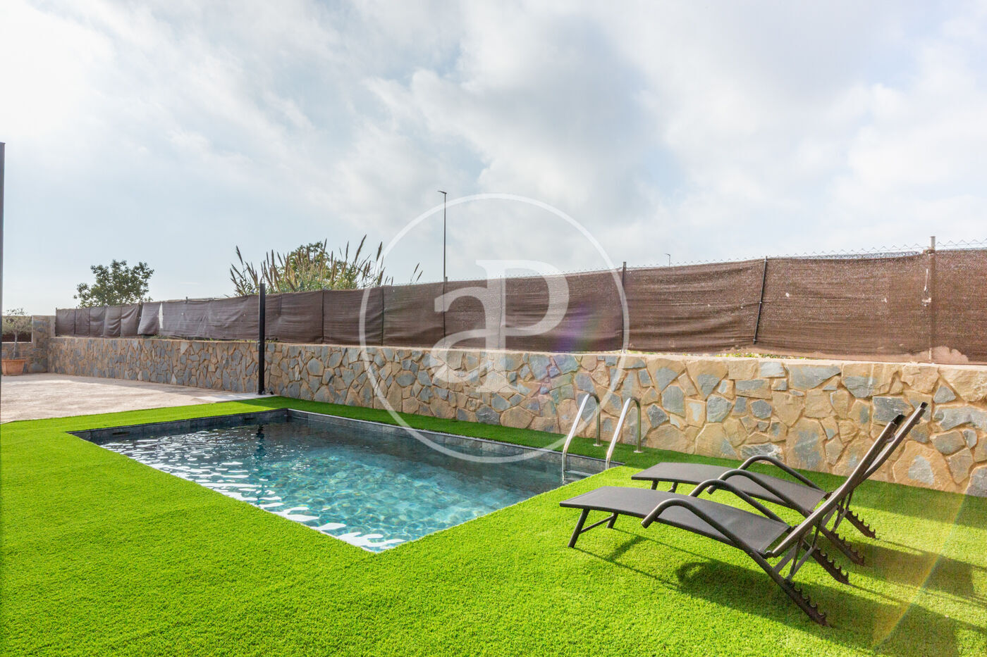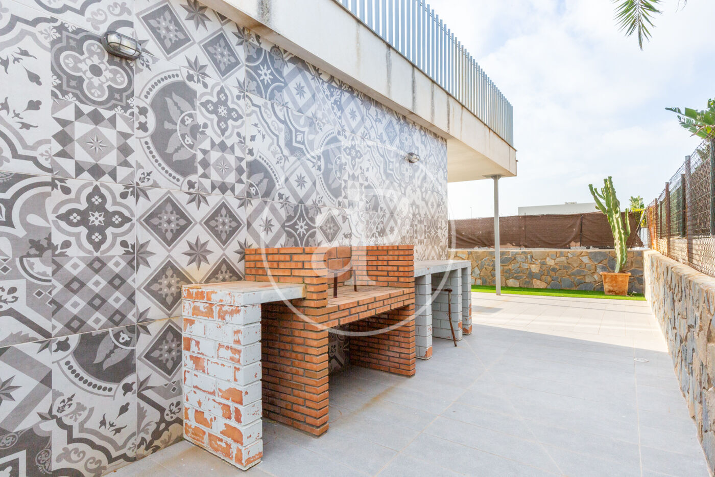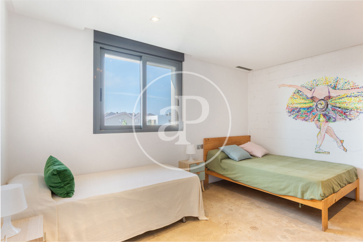 Built in 2017, this spectacular high-end property stands out for its quality materials and finishes and features three bedrooms, two of them with private terraces, and three bathrooms, one of them on the ground floor. Additionally, the property includes a covered garage of over 30 square meters and a large basement, ideal for use as storage, a wine cellar, gym, or game room.