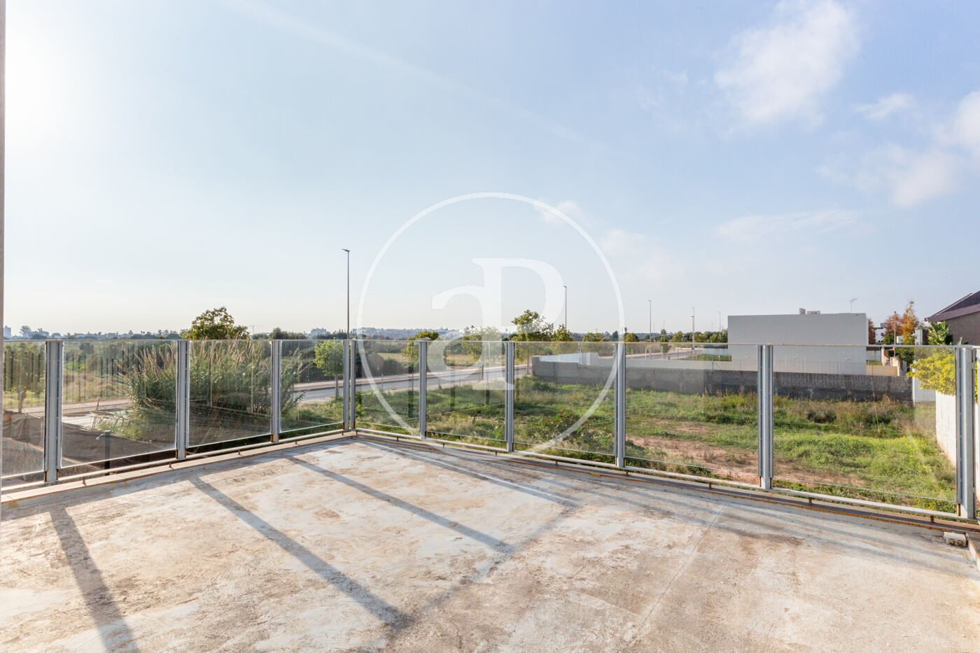 Aproperties is pleased to present for sale this semi-detached house, located next to the prestigious El Bosque Golf Club. This south-facing semi-detached house, situated in a privileged location, offers a unique opportunity: a home with the major construction work already completed, in an excellent area, and still allowing the buyer to choose the finishes according to their taste and budget. On the ground floor, there is a spacious open kitchen, still without equipment or furniture, which the buyer can design to their specifications. There is also a bright and open living-dining area, a full bathroom, and a double bedroom. On the upper floor, there is a double bedroom with direct access to a large terrace, from which you can enjoy spectacular views of nature. This floor also has a second single bedroom and a second bathroom. Both bathrooms are fully tiled but are delivered without bathroom furniture, shower screens, or doors, allowing full customization. All water and electricity connections are in place, with sockets, switches, and light points installed. The windows are double-glazed, and the flooring throughout the house is already installed. Interior doors are not included, providing great freedom for the buyer to choose models and materials according to their style. The house stands out for its abundant natural light thanks to its south-facing orientation. Outside, there is an electric entrance gate and space for two cars. Additionally, the property has a building permit to install a swimming pool, further enhancing its potential, with complete freedom to create your own garden, terrace area, barbecue, and more. A home with a solid foundation, in an unbeatable area, ready to be finished exactly as you have always imagined. The location is another major attraction: close to a supermarket, several restaurants, and the renowned Levante International School. It is only 15 minutes from Valencia airport and 25 minutes from the city center and beaches, offering the perfect combination of tranquility and accessibility. An exceptional opportunity to move into a brand-new home in one of the most sought-after areas.
