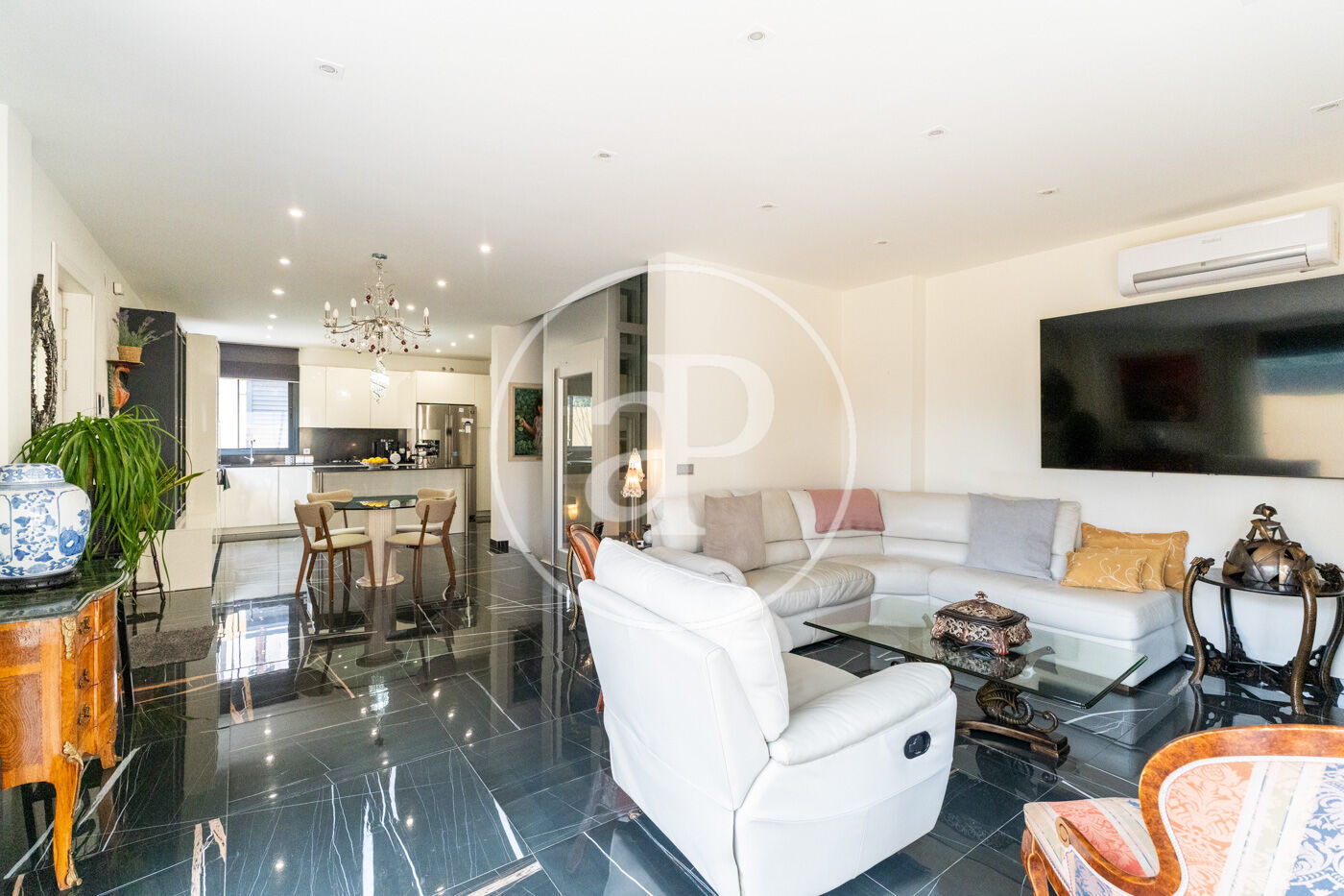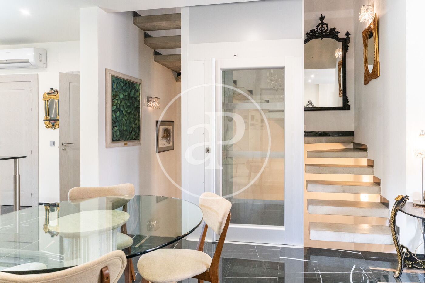 The semi-basement floor offers a spacious living room with access to an English patio, which brings abundant natural light and ventilation. On this floor there is a bedroom with access to the patio, a full bathroom, a utility room with an aerothermic system and a convenient laundry area.