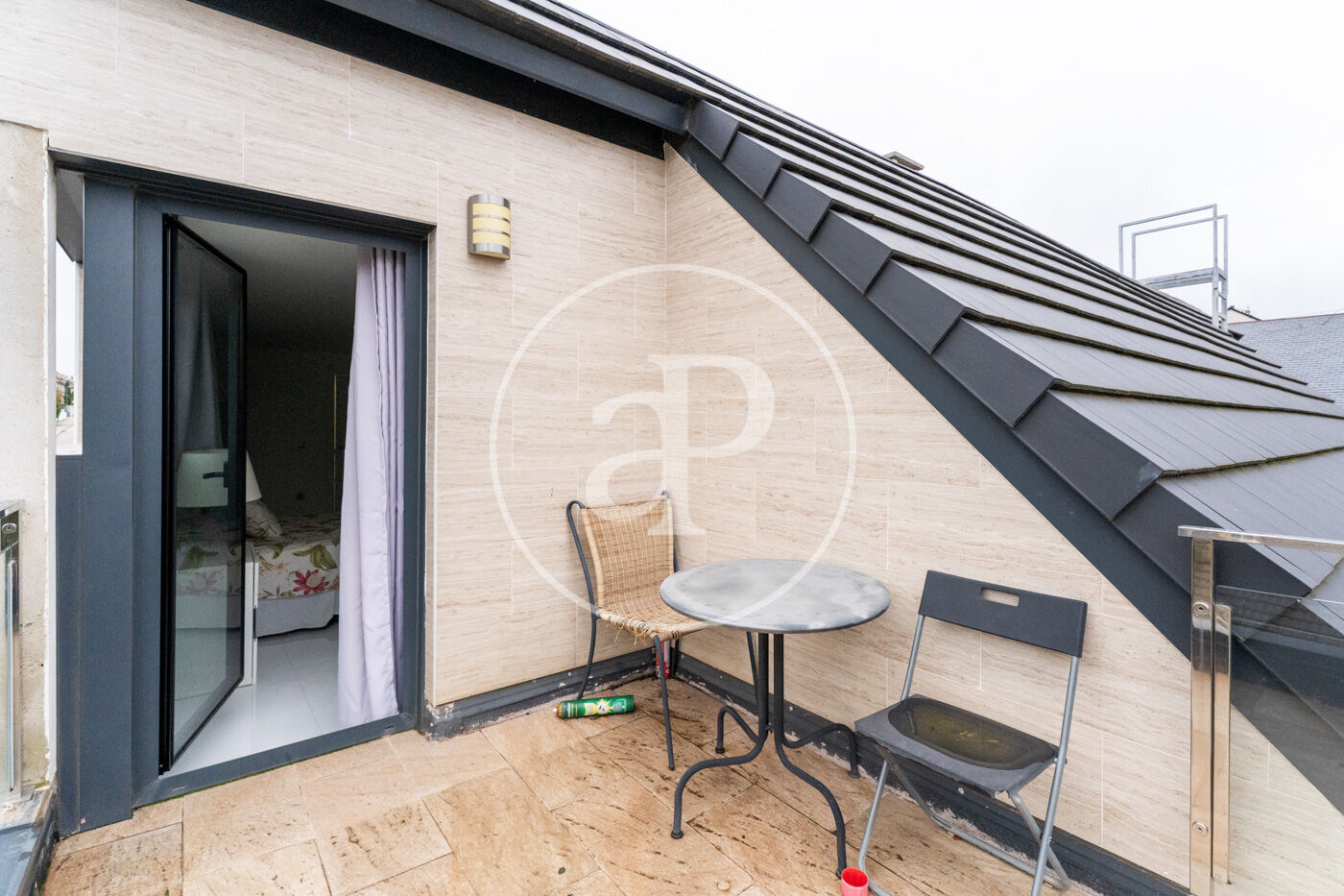 The second floor has a spacious bedroom, which has a full bathroom with shower and access to a terrace with stunning views of the skyline of Madrid. On both sides of the floor are two attic rooms, ideal as auxiliary spaces, dressing room, storage area or office.
