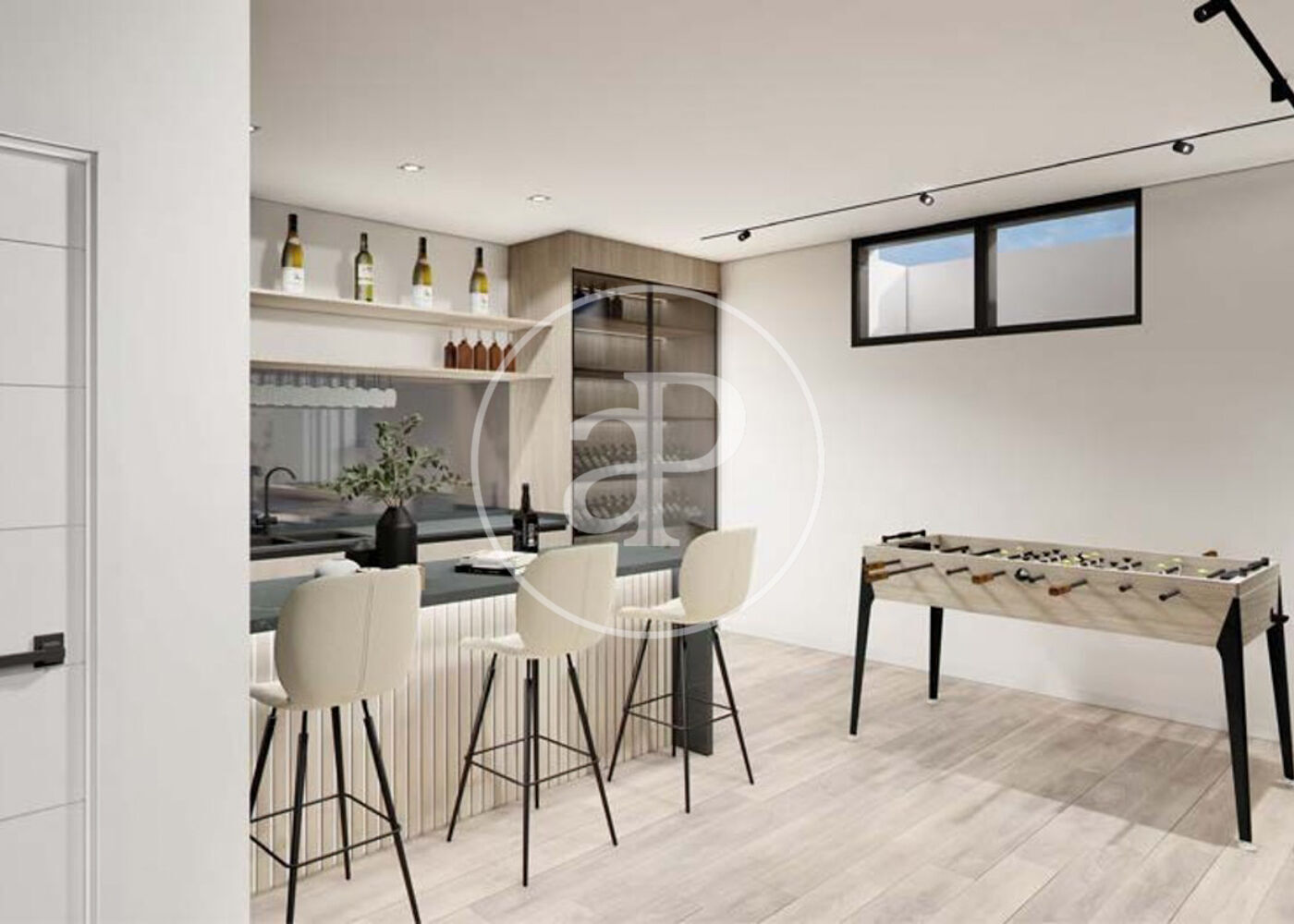 Exclusive Luxury Villa in Pozuelo de Alarcón! aProperties presents this spectacular luxury home in Pozuelo de Alarcón, an exclusive and privileged enclave just 15 km from the centre of Madrid. This impressive house, distributed over three spacious floors, combines contemporary design, high-end materials, advanced technology and comfort in every corner. With a built area of 435 m² on a plot of 807 m², the property has 5 bedrooms and 5 bathrooms, designed to provide maximum comfort for its residents. High-end spaces and design The heart of the home is its living area, an open-plan space that integrates the living room, dining room and kitchen with an avant-garde design. Large windows flood all the spaces with natural light, creating a perfect connection between the interior and the exterior environment. The modern kitchen, equipped with state-of-the-art appliances and a central island, is ideal for both everyday enjoyment and socialising. Exterior and Wellness The exterior of the house is no slouch: a magnificent garden, with carefully designed lighting, surrounds the heated swimming pool, allowing you to enjoy it at any time of the year. In addition, the house includes a complete wellness area with sauna, cryotherapy and a gym on the upper terrace, from where you can enjoy unbeatable green views. Technology and Efficiency State-of-the-art home automation makes it easy to control the lighting, air conditioning and security of the house via mobile phone, offering a comfortable and efficient lifestyle. The large underground garage and leisure areas, with table football and table tennis, complete a unique living experience, designed for the whole family to enjoy. Strategic Location and Security Pozuelo de Alarcón is known for its tranquillity, security and excellent quality of life, with access to prestigious educational institutions and a complete transport infrastructure, as well as being surrounded by green areas such as Monte del Pilar. This luxury villa offers you the possibility to enjoy all of this, without renouncing the proximity and comforts that Madrid has to offer. Come and discover your new home! Can you imagine living here?