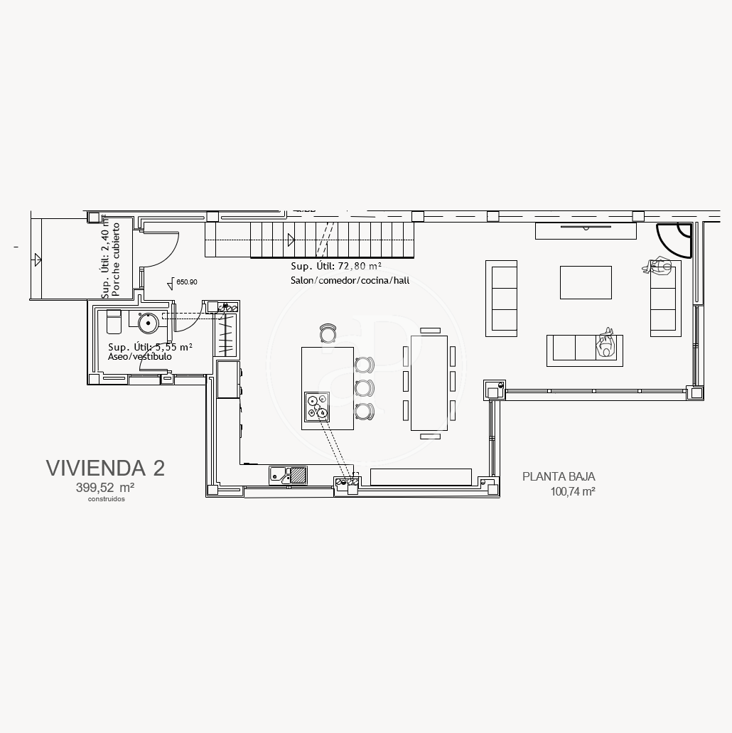 Each home has 400 m² built on plots of 356 m² and 390 m², with independent access from different streets. They are oriented in opposite directions and separated by a single wall with acoustic insulation, ensuring total privacy between neighbors.