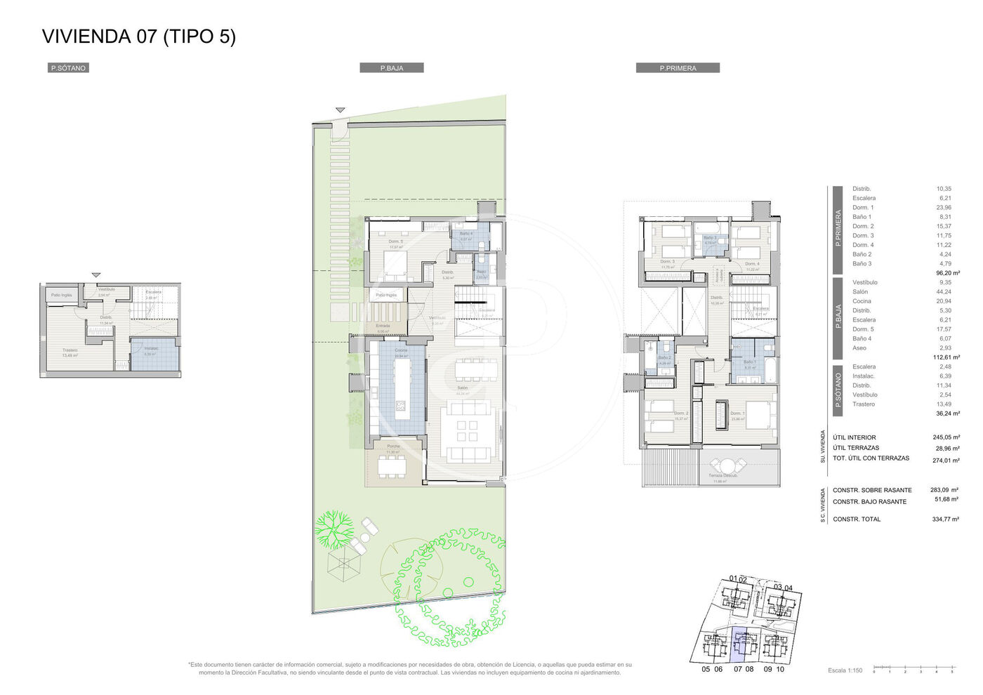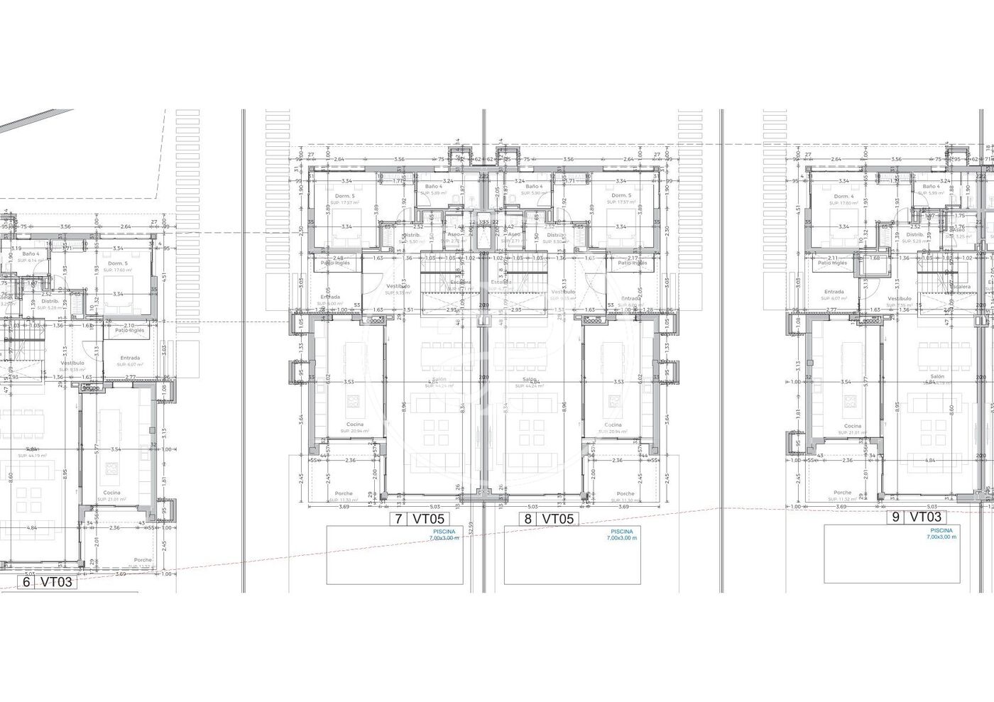 Tribeca Pozuelo offers exclusive villas of 480 m² built area, including a garage, and with an exceptional design. They feature exclusive private gardens with a swimming pool on 520 m² plots. The homes are distributed over three floors and have six bedrooms and five bathrooms, although the layout can be customized to suit each client's individual needs.