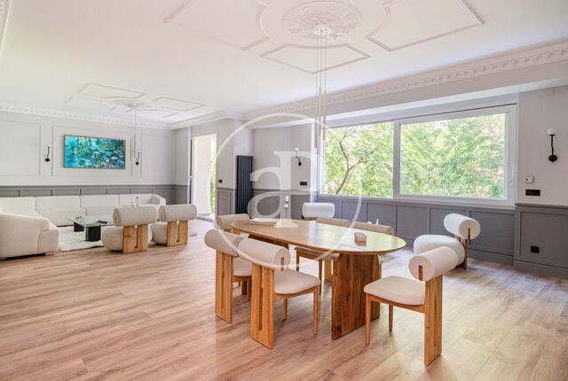 Located in the heart of Recoletos, a few meters from the emblematic Retiro Park, in a beautiful classic estate, APROPERTIES offers for sale this spectacular duplex apartment in one of the most exclusive areas of Madrid. It is a fourth floor exterior very bright with an area of 154 m² built, completely renovated, brand new. The day area is distributed in a main floor where we find a spacious and bright living-dining room, divided into several rooms, with two balconies overlooking the street, offering beautiful views and a large entrance of natural light. The elegant kitchen, of modern and functional design and custom-made, is equipped with high-end appliances and luxury finishes. On this same floor the sleeping area is made up of two double bedrooms, one of them with dressing room and bathroom en suite, a second bathroom and a laundry room, providing great comfort and functionality to the home. From the main floor, an elegant spiral staircase leads to the master suite, a charming attic space of 32 m², with views of the sky of Madrid and a private bathroom, offering an exclusive and intimate atmosphere. The house has gas heating and air conditioning. The integral reform of this house has been made with materials and finishes of first level, creating a spacious, bright and functional home. It also stands out for its great design, which brings a touch of distinction and sophistication to the whole. It perfectly combines the charm of classical architecture with a sophisticated style and high-end qualities. The house after the excellent renovation has retained its original elements, such as elegant moldings and a beautiful fireplace, bringing character and distinction to a unique space. Located in a classic building with charm and well-kept common areas, this apartment is a unique opportunity for those looking for an elegant home in an unbeatable location. The Recoletos neighborhood in Madrid, one of the most exclusive and elegant places in the city. With its sophisticated ambiance, Recoletos is characterized by its wide avenues, stately buildings and an atmosphere that exudes luxury. Here, exclusivity is felt in every corner, from the high-end boutiques to the most elegant cafés and restaurants. The gastronomy in Recoletos is exceptional, with everything from Michelin-starred restaurants to charming bistros serving delicious dishes. Another great advantage of living in Recoletos is its proximity to the Retiro Park, a green oasis in the middle of the city. This park is perfect for enjoying leisurely strolls, exercising or simply relaxing in a natural environment. The proximity to the Retiro adds incalculable value to life in this neighborhood, offering a perfect balance between urban life and the tranquility of nature. In addition, Recoletos has excellent transportation connections and is close to important cultural institutions, such as museums and art galleries, making it an ideal location for those seeking an enriching and dynamic lifestyle. In short, living in Recoletos means enjoying a luxurious and exclusive lifestyle, surrounded by elegance, a first-class gastronomic offer and the beauty of the emblematic Retiro Park.