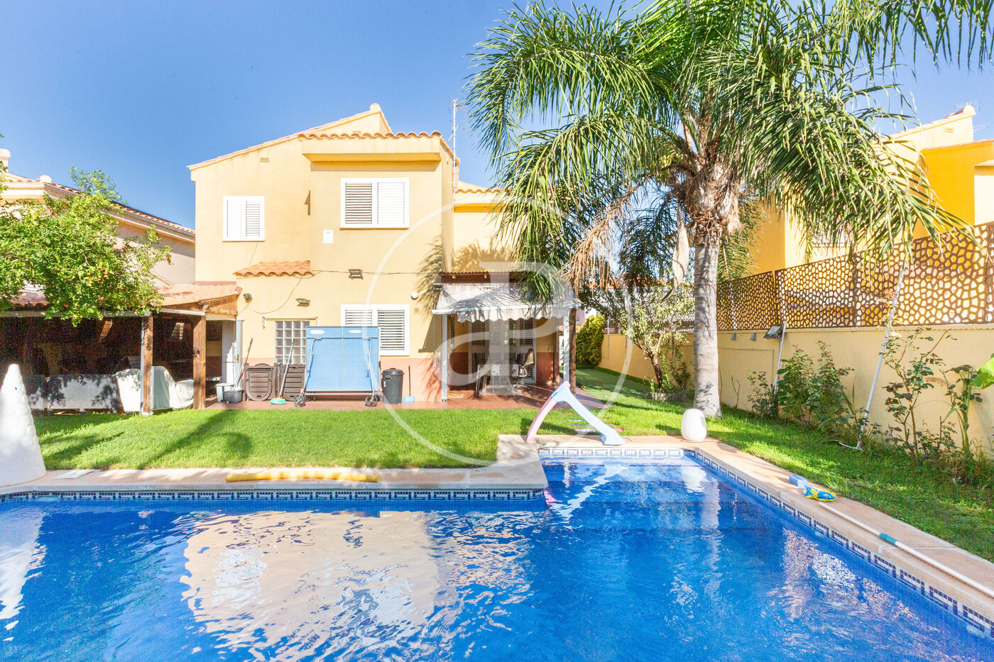 aProperties is pleased to present this exceptional home located in a privileged setting, within one of the best residential areas and equipped with all the necessary services for a comfortable life. This spacious and bright residence is distributed over two floors and features a charming garden and private pool, as well as a comfortable parking area, including a covered space with a summer dining area, kitchen, and fireplace.