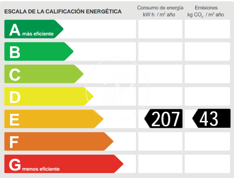 More efficient Less efficient Energy efficiency rating Energy consumption Kw h/m² year Emissions Co/m² year 207.00 43.00