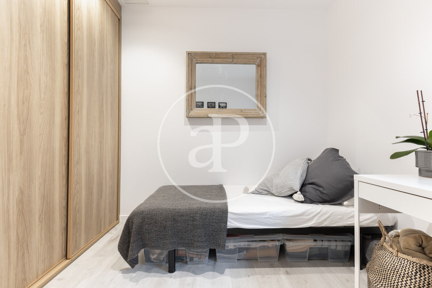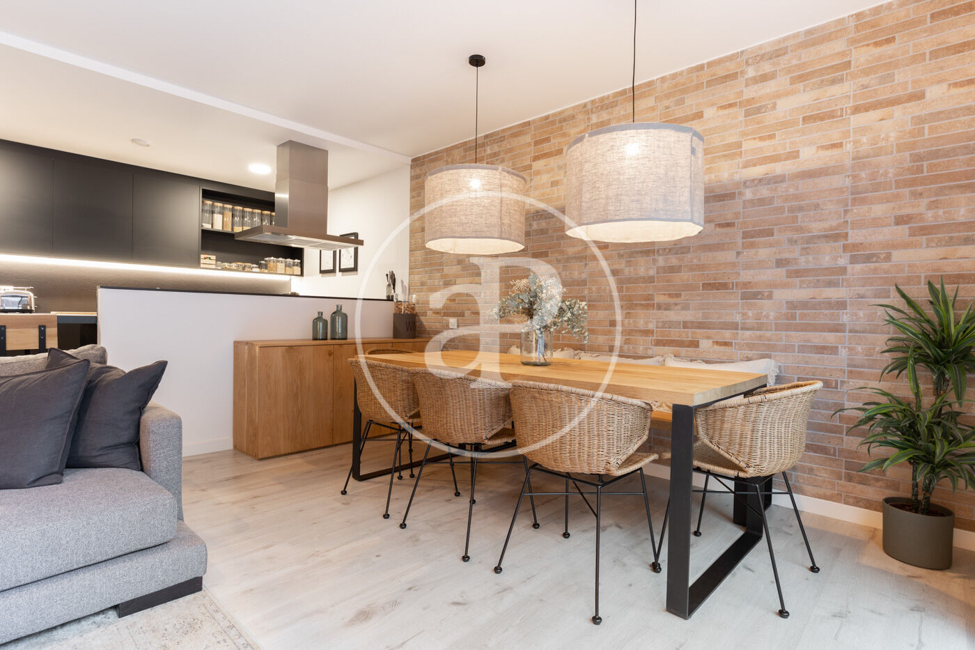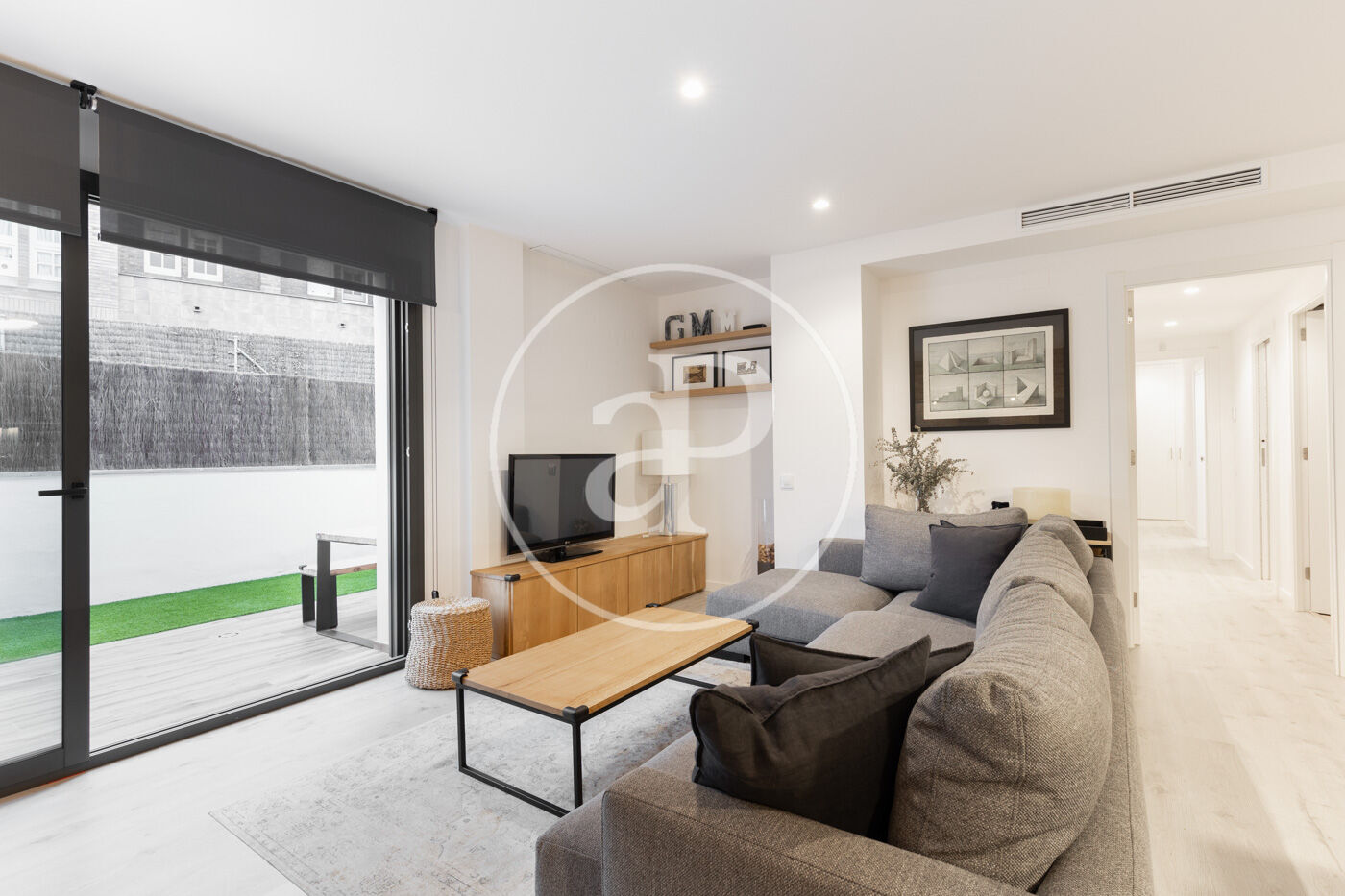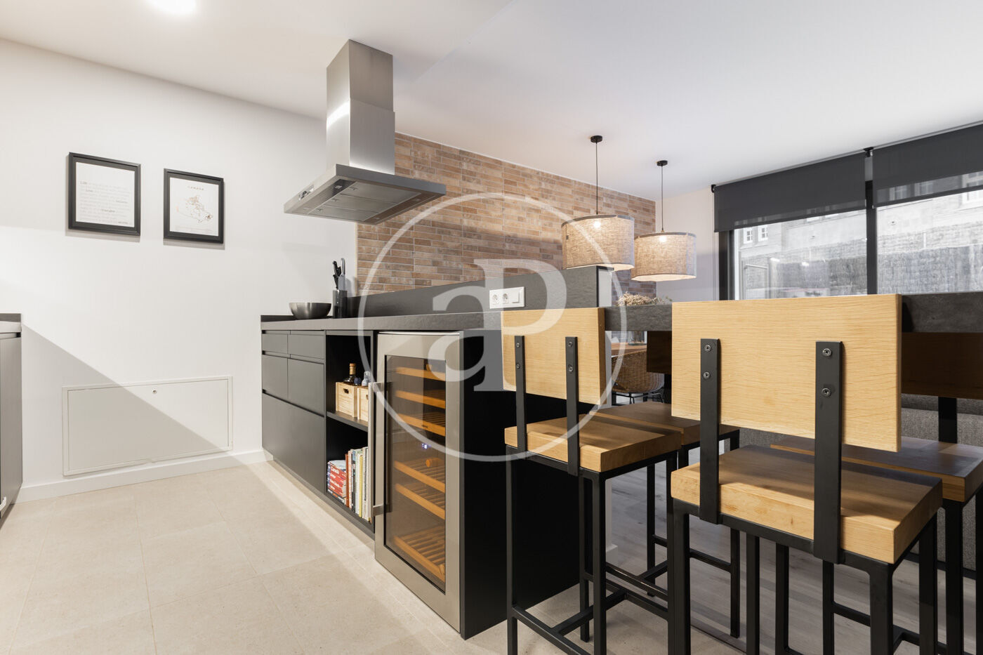 Upon entering the property, we find a living-dining room integrated with the kitchen. Featuring high-end finishes and appliances built into the custom-designed furniture, this space includes large windows that not only provide natural light and ventilation but also lead to the 60 m² private garden—perfect for enjoying a peaceful chill-out area.
