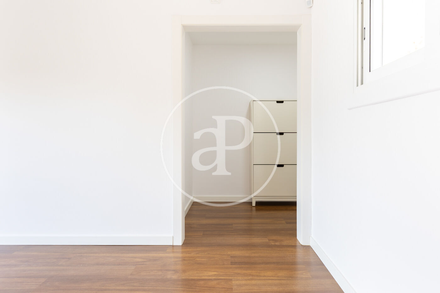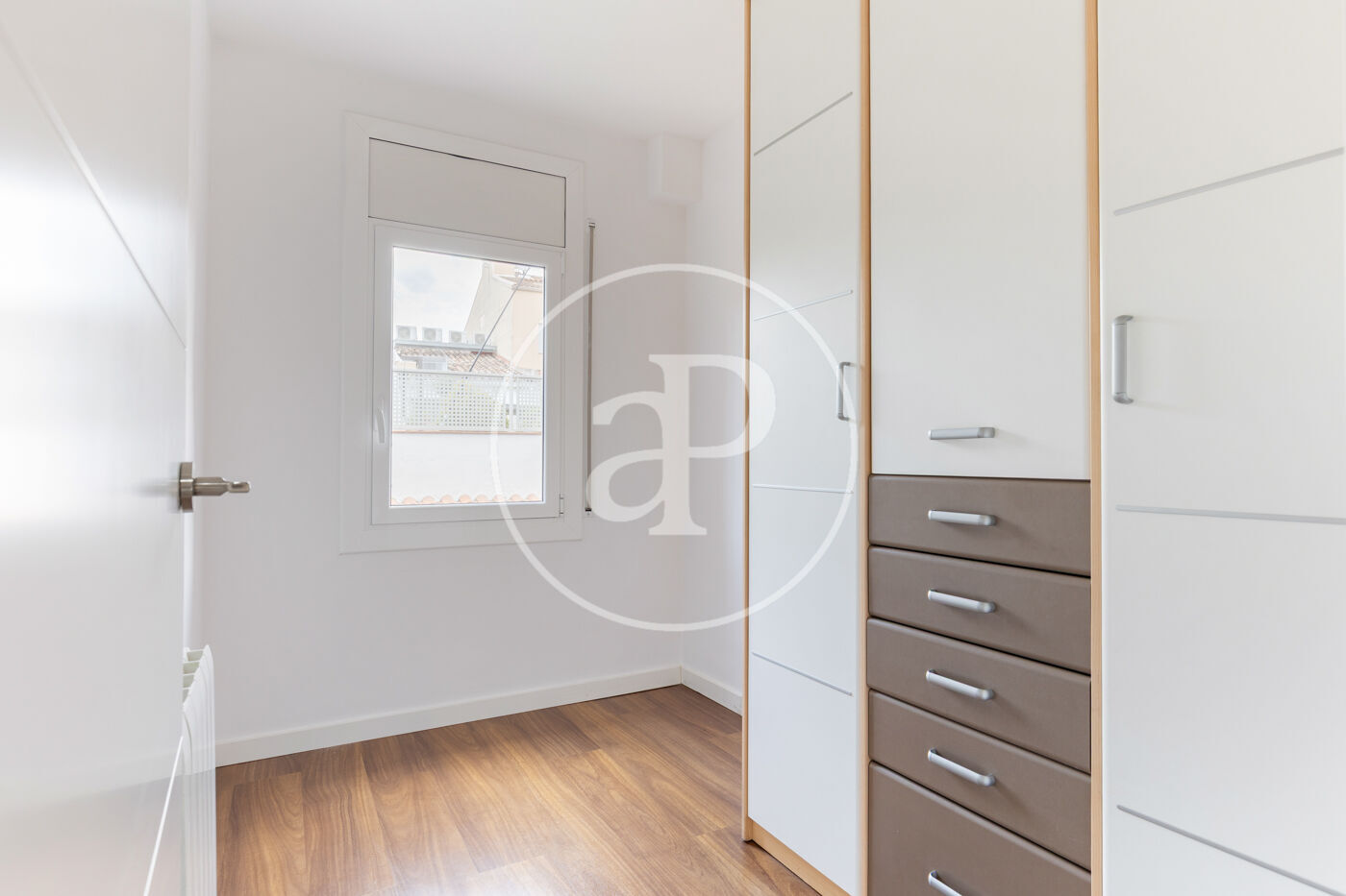 Renovated penthouse with 4 bedrooms and 3 bathrooms with terrace and parking space in the Left Eixample of Barcelona. Located in an emblematic area of the Right Eixample of Barcelona, near to the Sant Antoni neighborhood, we offer you this beautiful renovated penthouse. Upon entering the apartment we find a distributor that connects to the night area on the left and to the day area on the right, where the light that comes from the terrace receives you, the living room of approximately 34 m2, connects with the terrace through two large windows, from the 28 m2 terrace, facing South West, we have a beautiful view of the City where you can see from the Maria Cristina Palace on the Montjuic mountain, to the Plaza Tetuán. From the living room you can access the spacious Office kitchen, with access to a water area and a window with views of the rooftops of Barcelona. Next, we move on to the night area, with a bedroom on each side, one a suite individual room and the other a double room, both with built-in wardrobes and windows with views that provide lots of light. At the end of a small hall, also equipped with built-in wardrobes, we have two double bedrooms and two complete bathrooms, one with a shower and the other with a bathtub; both bedrooms benefit from beautiful windows overlooking the City and built-in wardrobes. This apartment is presented with a timeless renovation, ready to move into. Split air conditioning in several rooms, gas heating and concierge service on the property. It consists of a parking space in the same building included in the price, with the possibility of purchasing another. An unbeatable opportunity for thosewho are looking for a home in the heart of Barcelona.