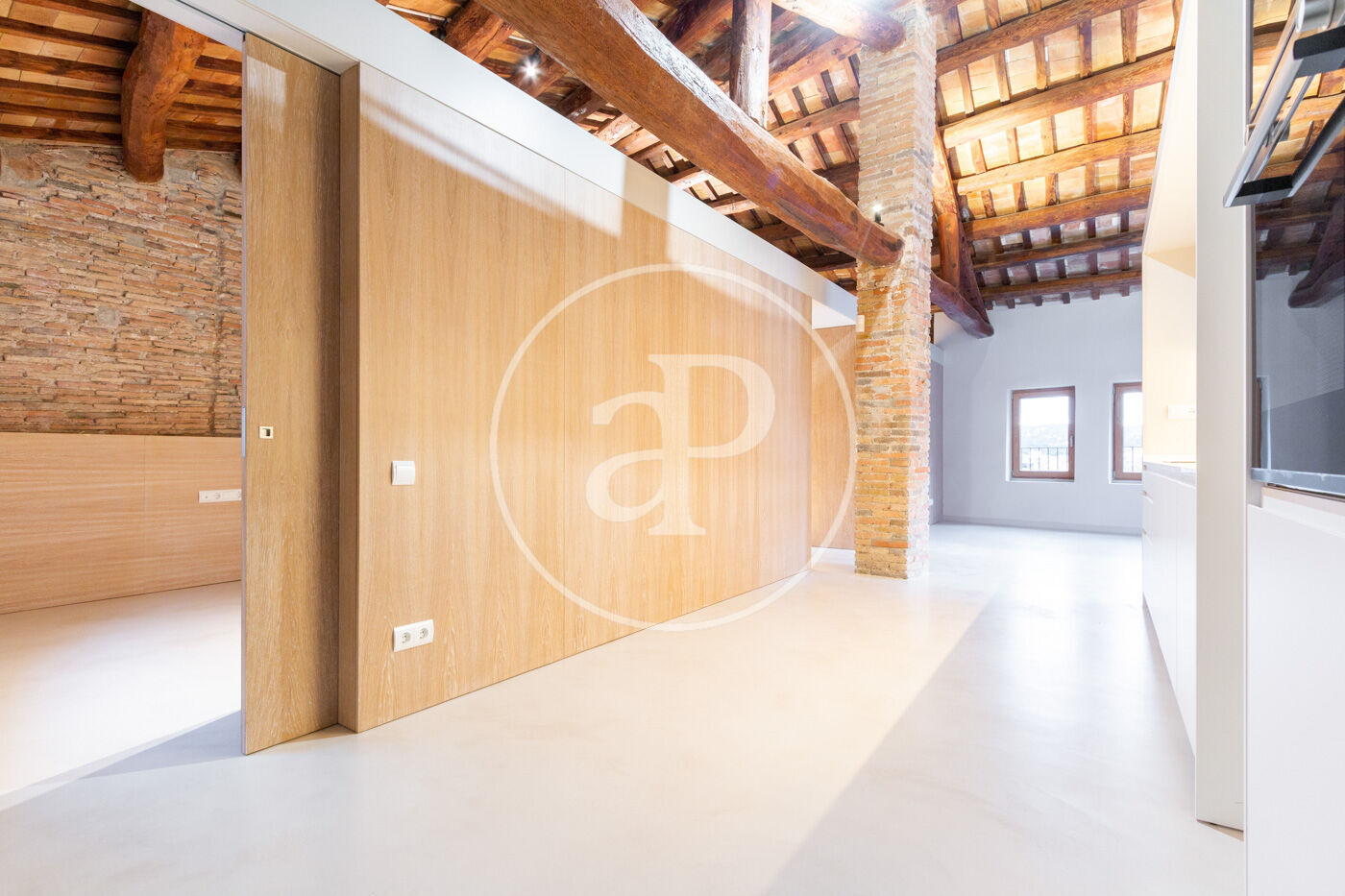 Magnificent penthouse, fully renovated, of 106 m² with a 23 m² south-facing terrace. Loft-style renovation in a 15th-century building in the heart of Sant Cugat, close to countless corners and spaces in the city.