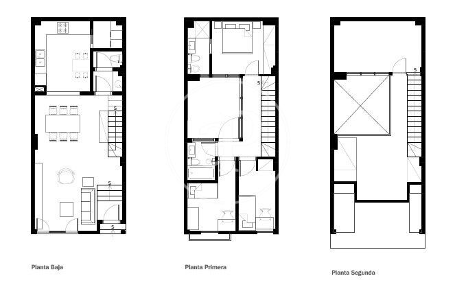 On the second floor, there are two single bedrooms with fitted closets, a bathroom with shower and the master bedroom en suite with bathroom. There is also a chill out area.