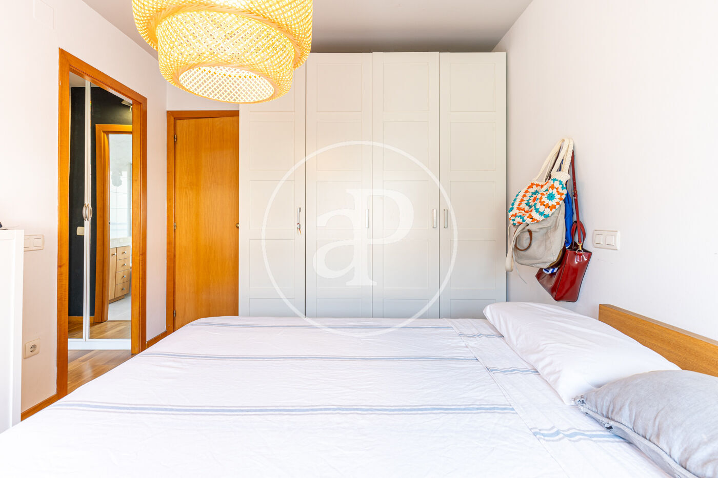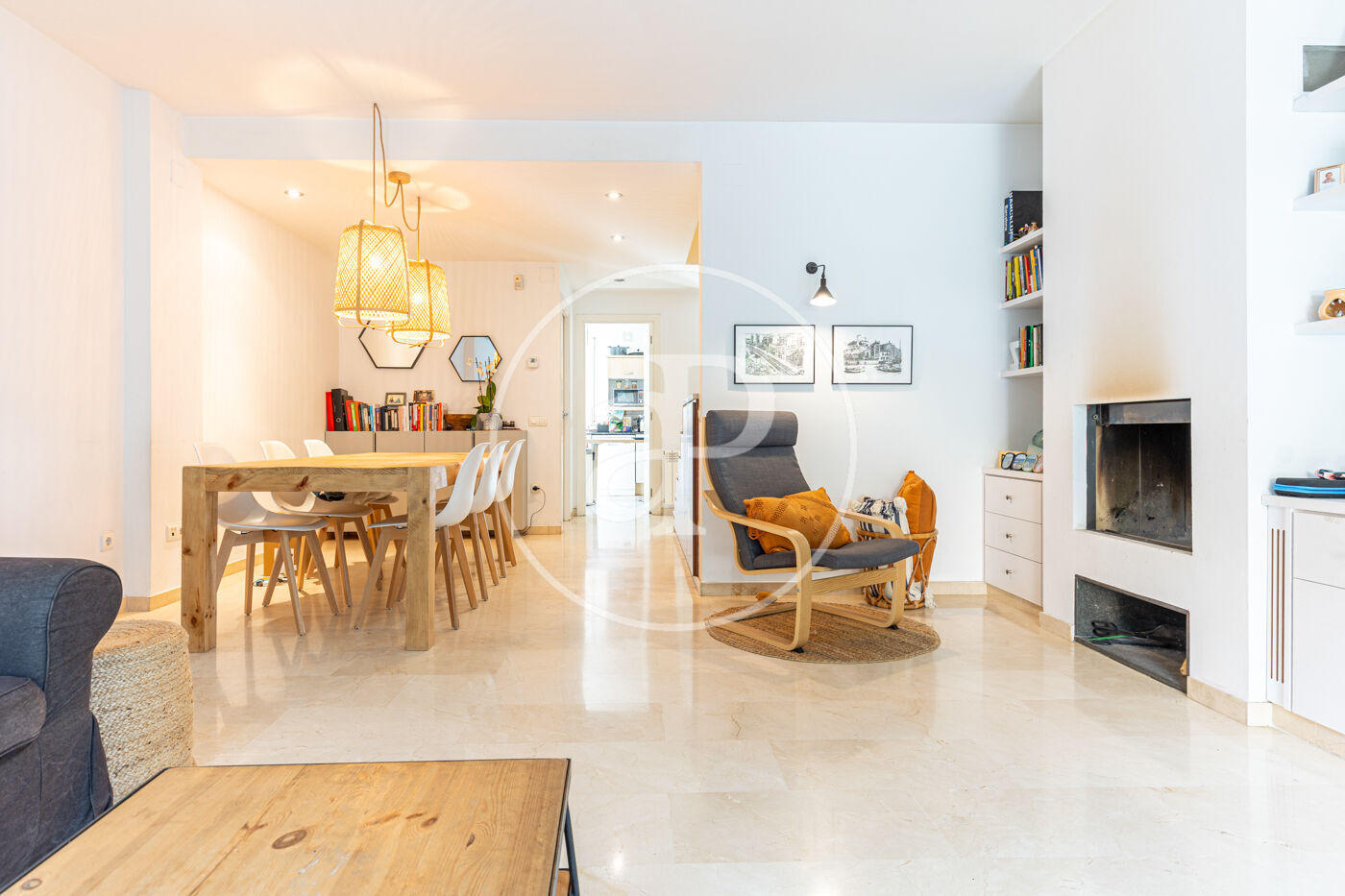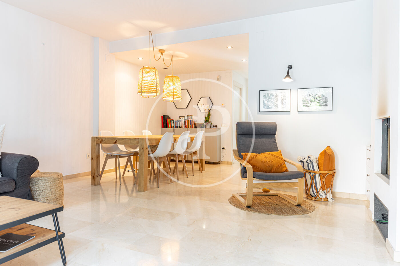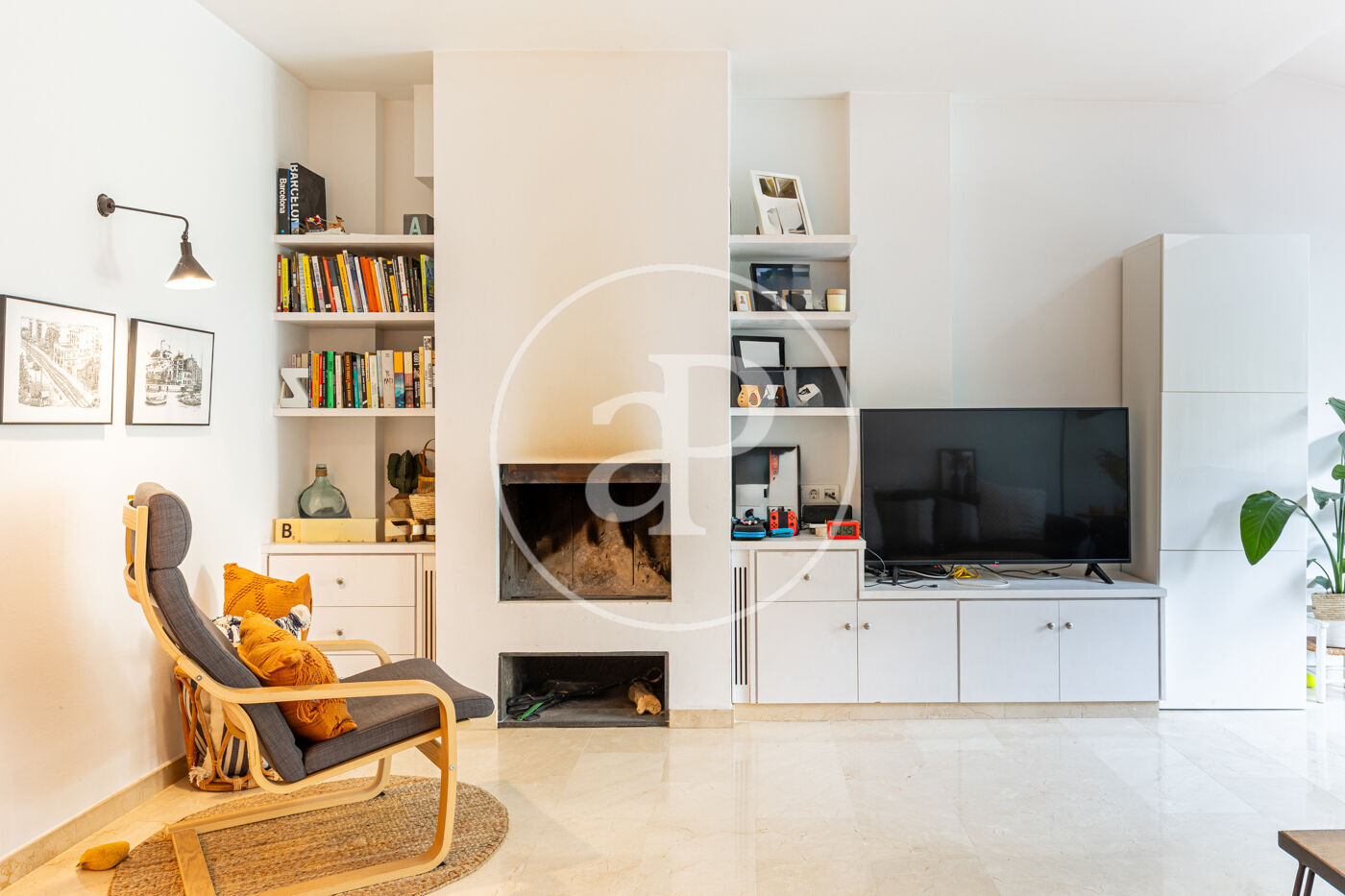 From Aproperties we are pleased to present you EXCLUSIVELY, this magnificent designer duplex penthouse located in the exclusive area of Can Magi. The property is located in an estate of 1998 and has been updated by its owners, providing it with quality finishes that convey a comfortable and cozy atmosphere. Its location is unbeatable, as it is in a quiet area with mountain views, and at the same time it is just a few minutes drive from the center of Sant Cugat del Vallés.  The house of 124m² built, which are developed as follows: 76.30m² on the ground floor to which are added a small terrace of 3.70m², 33m² on the second floor with sloping ceilings, plus a super terrace of 25.80m² with views of the most characteristic mountains of the Vallés.  The whole apartment is completely exterior, with privileged orientation that bathes each of the rooms in natural light. It is located in a very quiet community of neighbors with gardens and swimming pool.   We begin our tour after crossing the hall, equipped with courtesy closets. We move towards the spacious living room with large windows, a wall with a large window joins the fully equipped kitchen with access to a covered terrace ideal for two people to eat and enjoy the views. On this floor, also develops the sleeping area consisting of a double bedroom (originally two single rooms) with designer closets and a bathroom. Finally, the floor is completed with a water area.   Returning to the living room we find a beautiful staircase that combines steel and wood and leads to the upper floor. There is a small hall that divides the floor into areas, the suite that has fitted closets and a wall with natural stone cladding and an elegant and original design bathroom clad in marble, which includes a large bathtub and a spacious space with two showers. There is also a single bedroom with fitted closets and a large sun terrace with artificial grass, views that invite summer evenings, barbecues, etc..  The property has a security entrance door, parquet floors, aluminum windows with double glazing and motorized blinds controlled with home automation. The kitchen is fully equipped with oven, ceramic hob and extractor hood. It has cold-heat pump on all floors.  The price includes two parking spaces and a storage room.