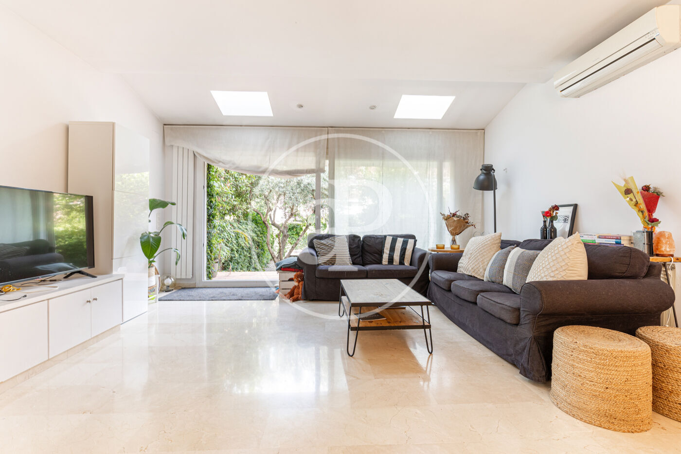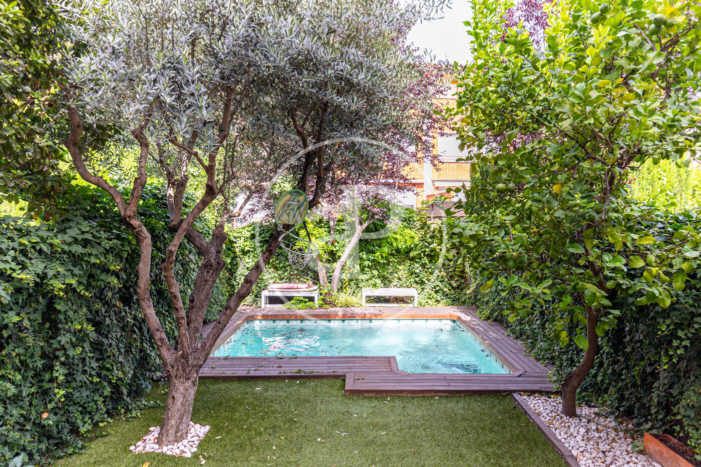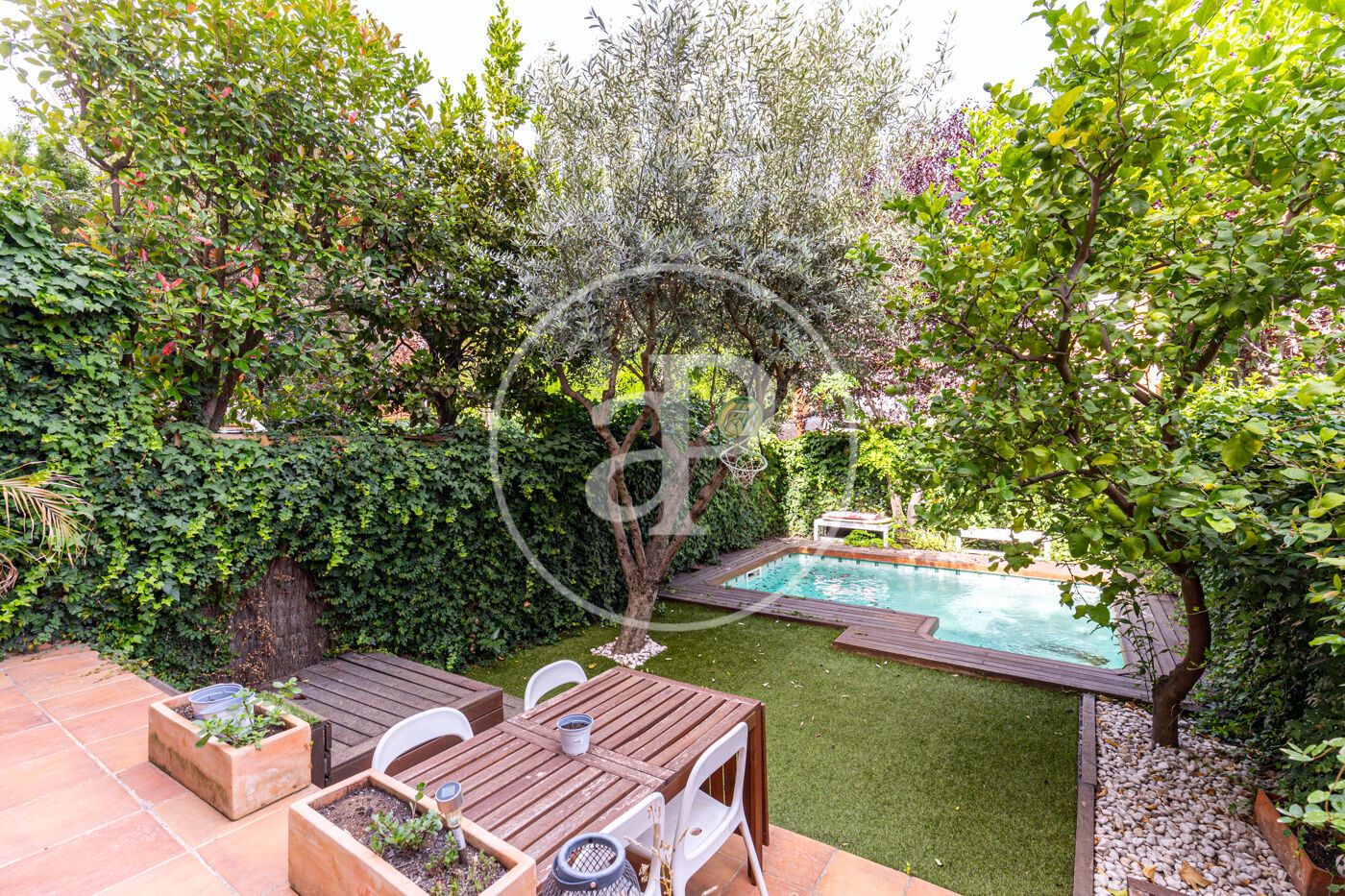 Exclusively from Aproperties, we are pleased to present this corner semi-detached house, fully renovated in 2017. This home is located just an 8-minute walk from the Mira-Sol train station, the market, shops, and restaurants, and only a 4-minute walk from La Farga school and 5 minutes from the Catalunya school and the Casal de Mira-Sol. Despite its central location, it retains the calm and quiet that characterize the area. Accessed via a charming private entrance and a beautifully landscaped porch, we arrive at this fabulous 245 m² house, complemented by a splendid green oasis of 230 m² and a 16 m² terrace. On the main floor, you’ll find the entrance hall leading into a large living-dining room with direct access to the garden. The fully renovated open kitchen can be enclosed with glass sliding doors that disappear into the walls, preserving the open-concept feel. A guest toilet completes this level. From the living room, there is direct access to the garden, which wraps around the house in a U shape. The garden has been beautifully landscaped, creating a total oasis where you can lose track of time. The current owners opted not to build a pool, but there is ample space — even enough for a 25-meter lap pool or a classic pool in several corners of the garden. The exterior also features a barbecue area. On the first floor, there is a master suite with dressing room and full bathroom, as well as two spacious single bedrooms served by a second bathroom. The second floor, also fully renovated, includes an open study area and two more bedrooms with a third bathroom. Finally, the basement level includes a laundry and ironing room, a versatile 20 m² room currently used as a storage space, and a garage with side-by-side parking for two cars, plus space for bikes and motorbikes. Additional features include: alarm system, blinds in all rooms, air conditioning, radiator heating, parquet flooring, and built-in wardrobes in some rooms. All spaces are exterior-facing, bright, and offer cross ventilation through multiple windows. Please do not hesitate to contact us for more detailed information about this property.