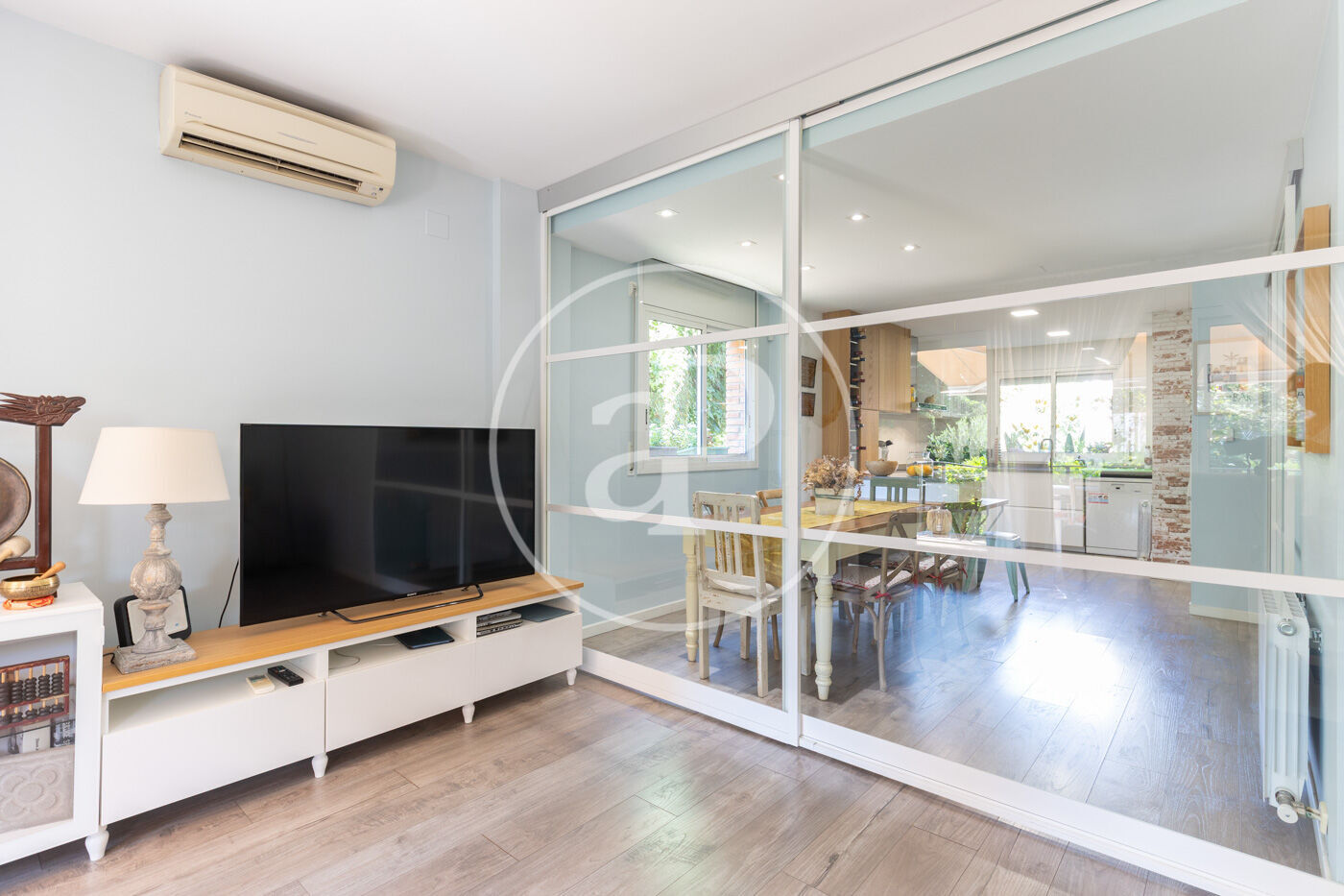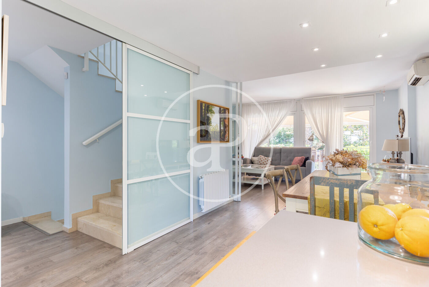 We are pleased to present this beautiful detached house, renovated and excellently located, distributed on one floor. On a plot of 300 m² it stands with almost 80m². We begin our virtual tour after crossing the hall, which leads us to a living room, open space, with clear virtual separations. Play and recreation area, dining area and lounge area with large windows, double height ceilings and fireplace. The living room has double direct exit to a nice and comfortable porch in the front area of the garden and behind, also communicates with the garden, but this time directs us to the dining area, barbecue and recreation. The kitchen is also open, integrated into the diaphanous space that characterizes this house. The sleeping area consists of a double bedroom, a single bedroom and a bathroom. All rooms are exterior and with plenty of sunlight, all double windows, with thermal bridge and shutters. The heating is with radiators supplied by natural gas and there is also air conditioning. The truth, it is a very cozy house and well located near the station and the shopping center, pharmacy, bakery, school. It is only 3 minutes by car or 10 minutes walk from the Mira-Sol station and its shopping center, 7 minutes walk from the school La Farga and 12 minutes from the school Catalunya, the Casal de Mira-Sol and the soccer club, the second nerve center of the area. In the highest area of the street, with the perfect south orientation that floods the house with natural light in all rooms. Ideal for those who want to live in an exclusive and quiet environment but surrounded by all kinds of comfort. Do not hesitate to contact us to arrange a visit!!!