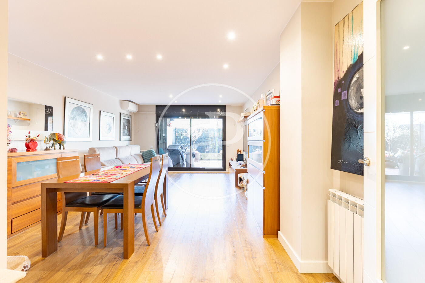 Upon entering the property, we find an entrance hall, a large living-dining room with access to the 30 m² terrace, which offers direct access to the communal area with swimming pool, a fully equipped kitchen with office area, 3 double bedrooms, 1 single bedroom, and 2 full bathrooms. The property is equipped with air conditioning and natural gas heating. It stands out for its southwest orientation and its proximity to the town center and Sant Cugat train station.