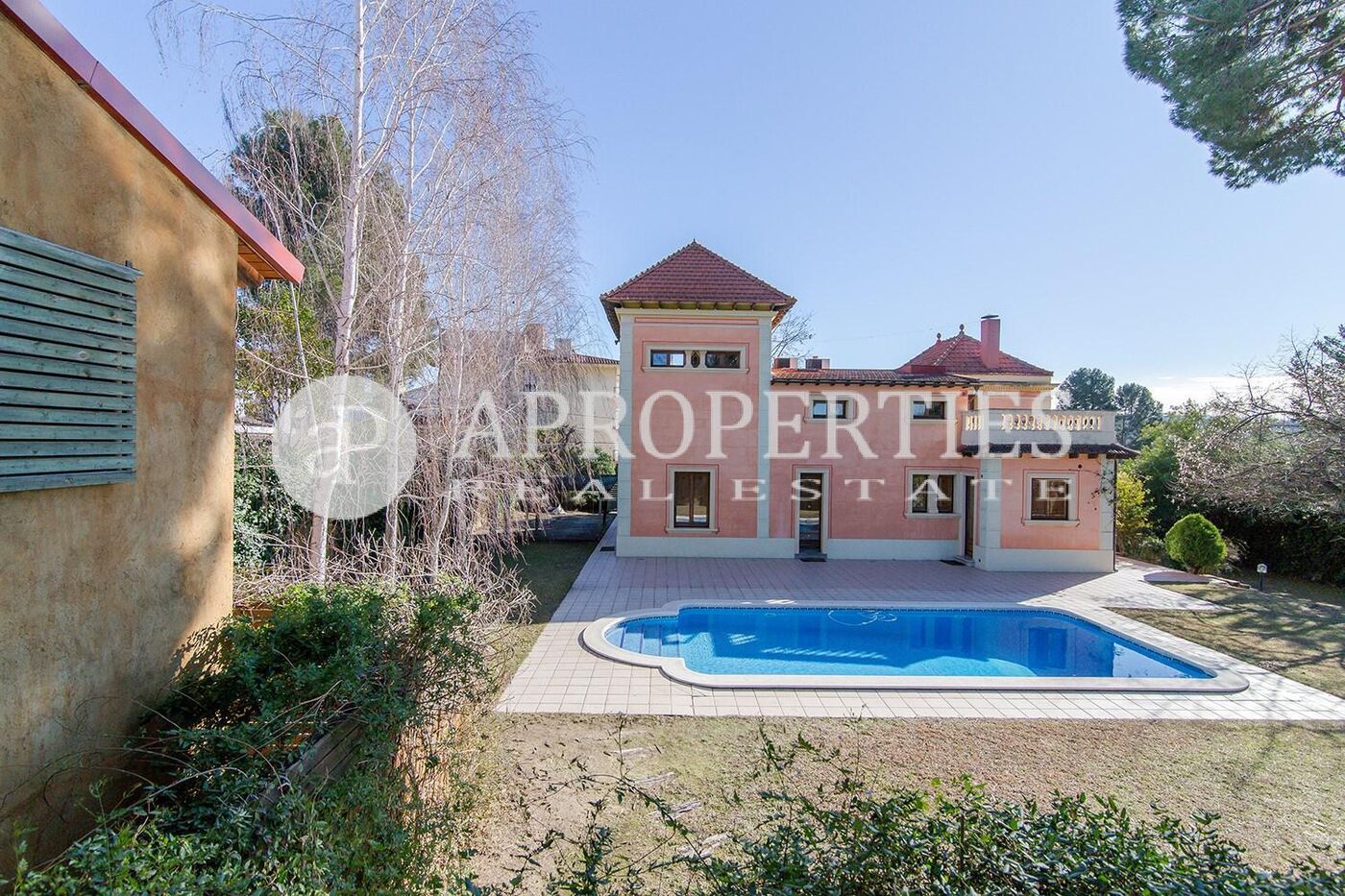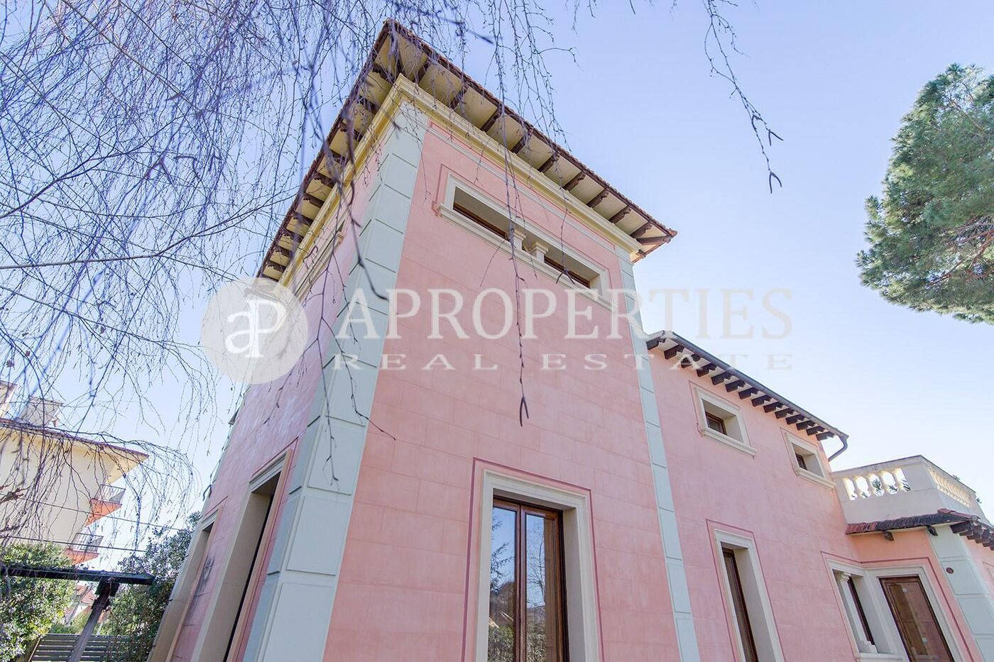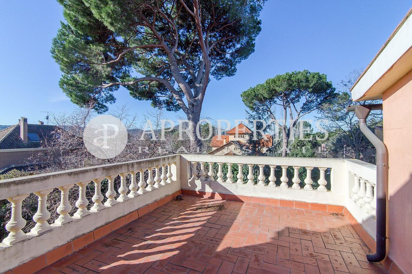 Singular and charming Tuscan style home built in 1917 of 370sqm on a plot of 1800sqm, completely refurbished maintaining its charm, with sloping ceilings and original shutters. The house, located in one of the best areas of Valldoreix, near to the transport and shops and surrounded by a large garden, has two floors and an independent bungalow or guest house. Through the entrance hall we access to the living-dining room with fireplace and access to the garden, a large kitchen with access to an elegant dining room and to pool area, a guest bath and a large bedroom en suite overlooking the garden. On the second floor, or sleeping area, we find a master suite on two levels with access to a terrace with panoramic views, two double bedrooms en suite, one of them with access to a private terrace. The guest house, which is private and intimate, has a living-dining room and a kitchen, two bedrooms and bathroom upstairs. The parking has space for four vehicles, wood and ceramic floors, gas heating, air conditioning and alarm.