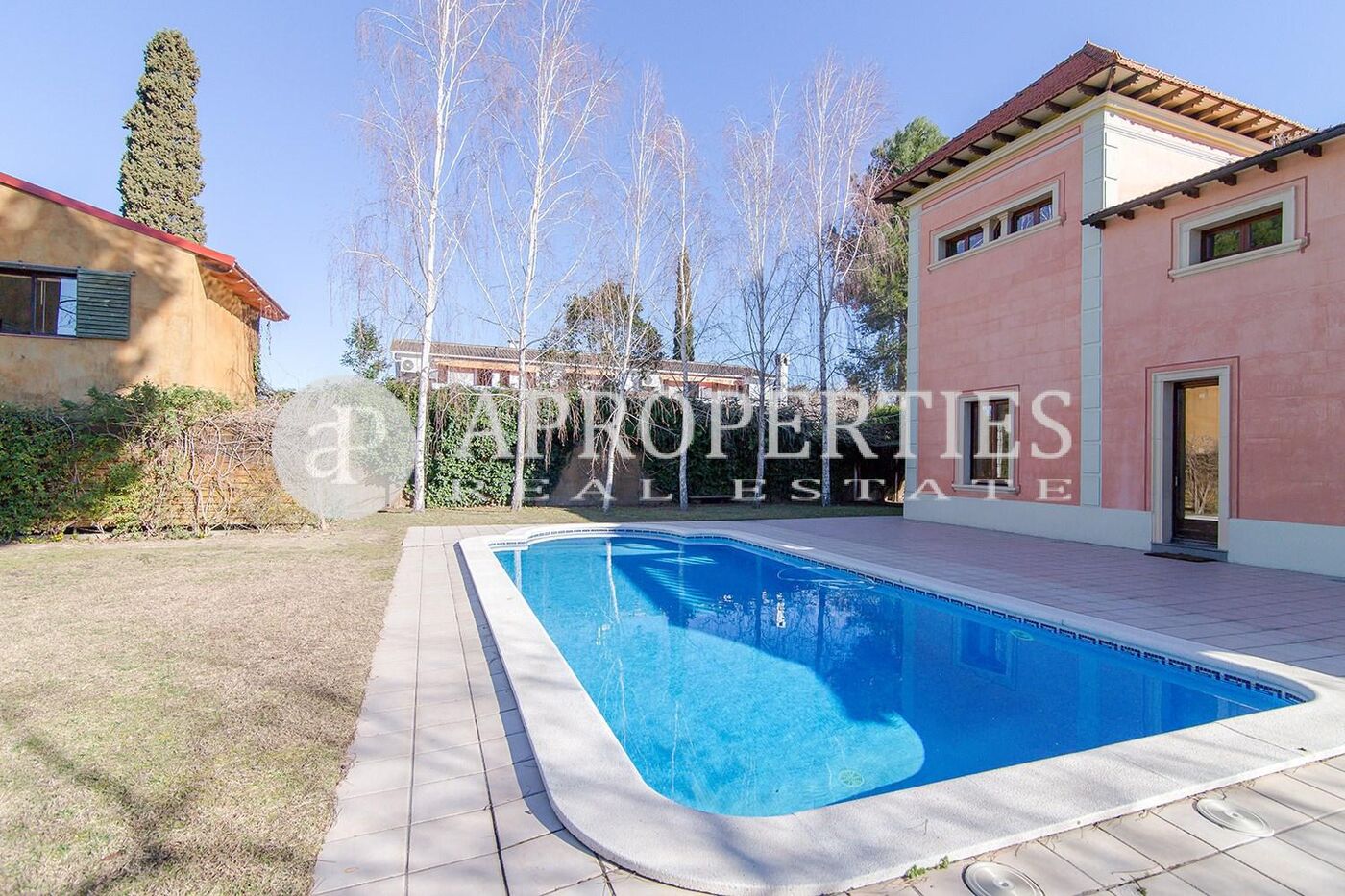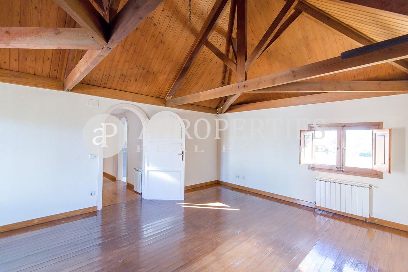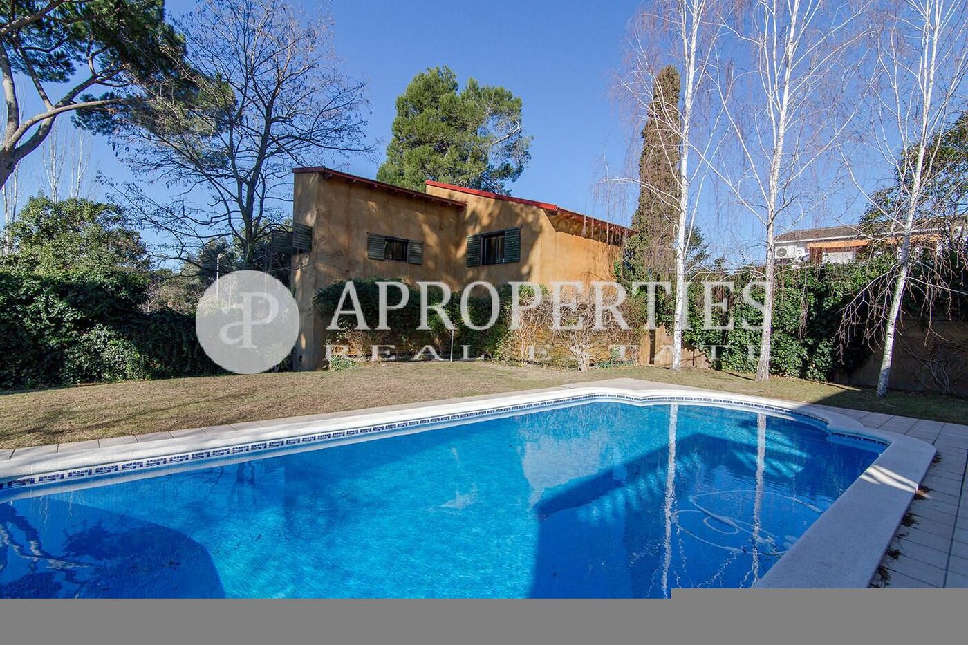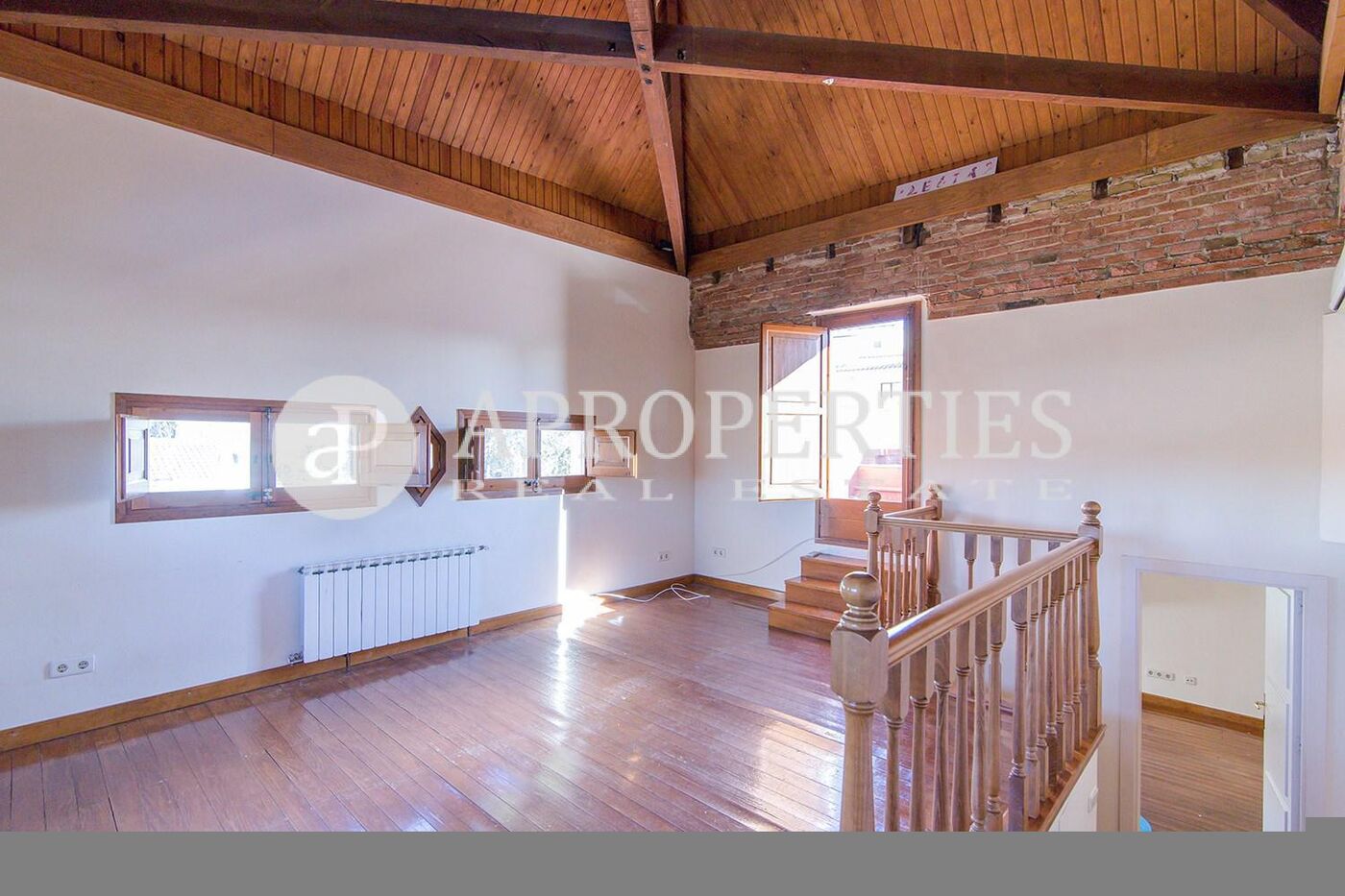 Singular and charming Tuscan style home built in 1917 of 370sqm on a plot of 1800sqm, completely refurbished maintaining its charm, with sloping ceilings and original shutters. The house, located in one of the best areas of Valldoreix, near to the transport and shops and surrounded by a large garden, has two floors and an independent bungalow or guest house. Through the entrance hall we access to the living-dining room with fireplace and access to the garden, a large kitchen with access to an elegant dining room and to pool area, a guest bath and a large bedroom en suite overlooking the garden. On the second floor, or sleeping area, we find a master suite on two levels with access to a terrace with panoramic views, two double bedrooms en suite, one of them with access to a private terrace. The guest house, which is private and intimate, has a living-dining room and a kitchen, two bedrooms and bathroom upstairs. The parking has space for four vehicles, wood and ceramic floors, gas heating, air conditioning and alarm.