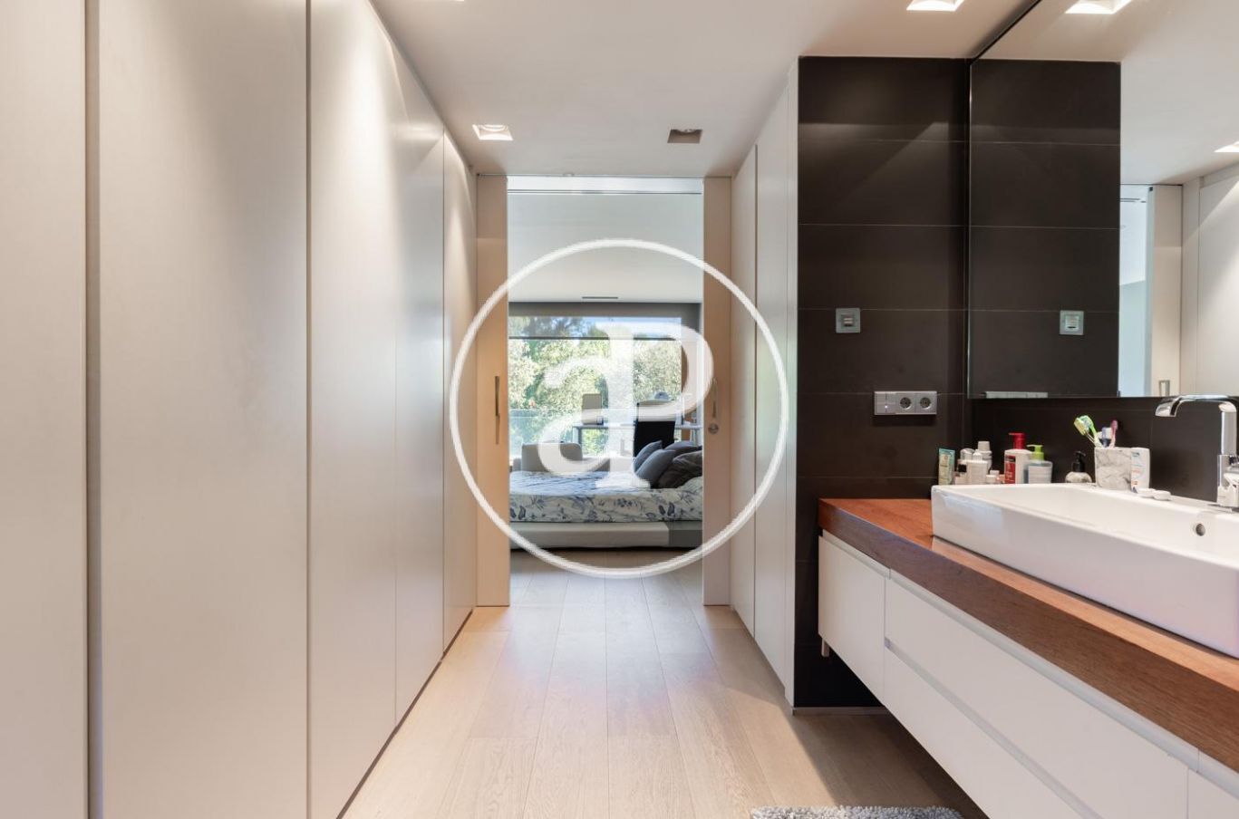 The house has quality finishes, underfloor heating, ducted air conditioning, water area, fitted wardrobes, aluminium carpentry, alarm system, solar panels, home automation and motorized curtains throughout the house.