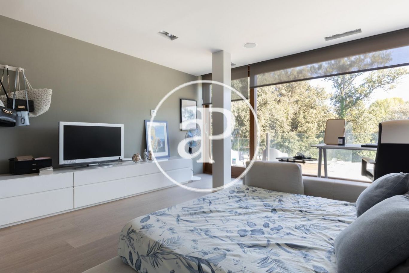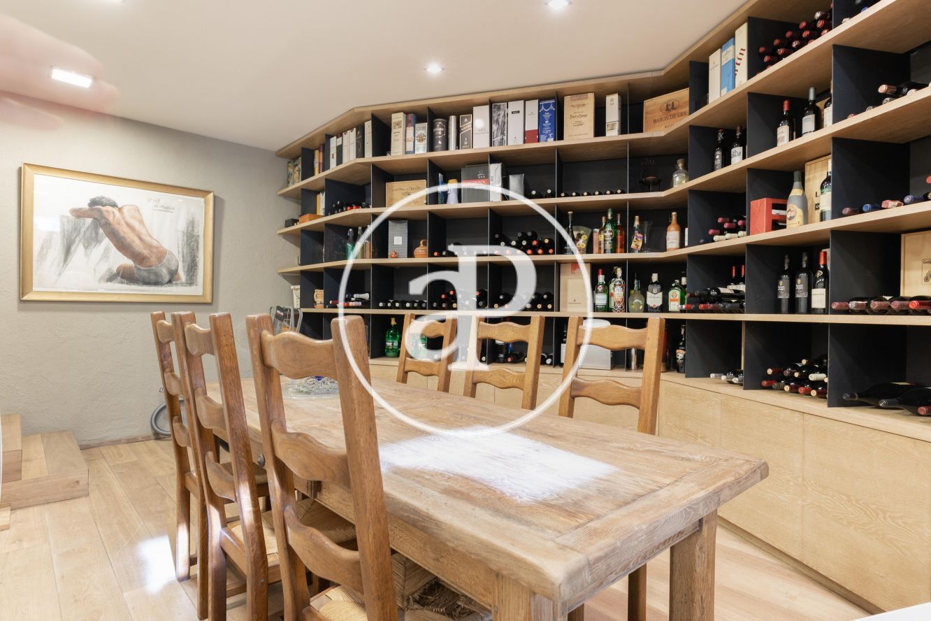 The house is distributed over three floors, the main access is on the side, on the main floor we find a spacious and bright living-dining room on two levels with access to the porch with chill out area and an outdoor dining room that leads to the wonderful garden and pool, fully equipped kitchen with high quality appliances, a single bedroom and a bathroom. On the first floor there are two spacious bedrooms en suite with their own dressing room each and with access to a large terrace where you can enjoy the views of the garden. The first floor is a spectacular suite with a large dressing room. On the lower floor there is parking for 4 cars and a wine cellar. Outside there is a separate cottage with 1 bedroom, bathroom and a kitchen perfect for guests or for the maid.