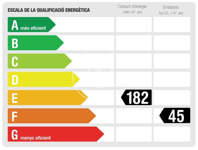 More efficient Less efficient Energy efficiency rating Energy consumption Kw h/m² year Emissions Co/m² year 182.00 45.00