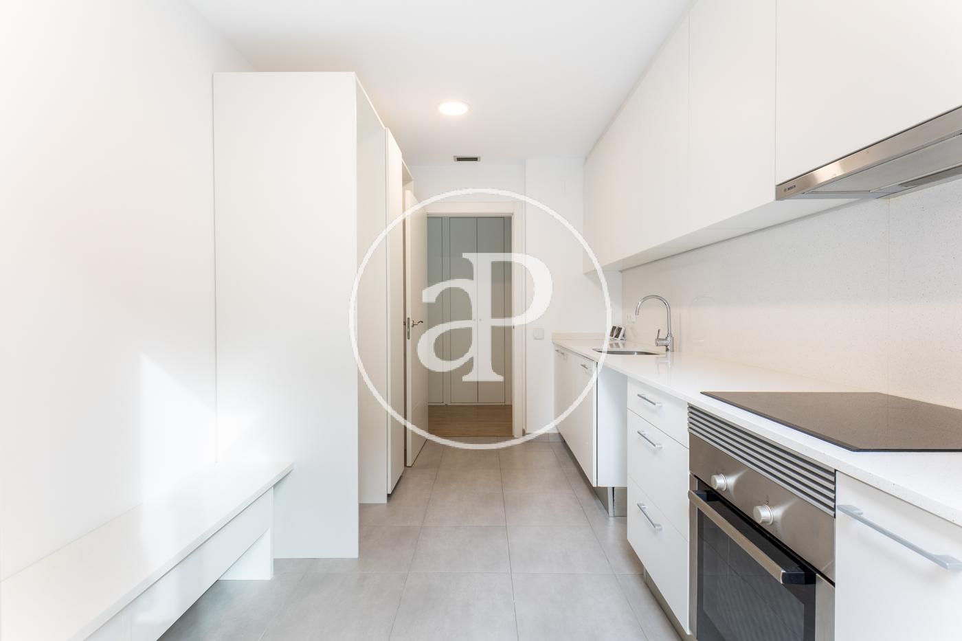 The property is a corner ground floor, which has in its day area, a large entrance hall, through which we access to a large living room almost completely glazed and with direct access to a private garden of over 95sqm. This makes it particularly bright and comfortable. It also has an eat-in kitchen, with a comfortable layout and direct access to the garden.