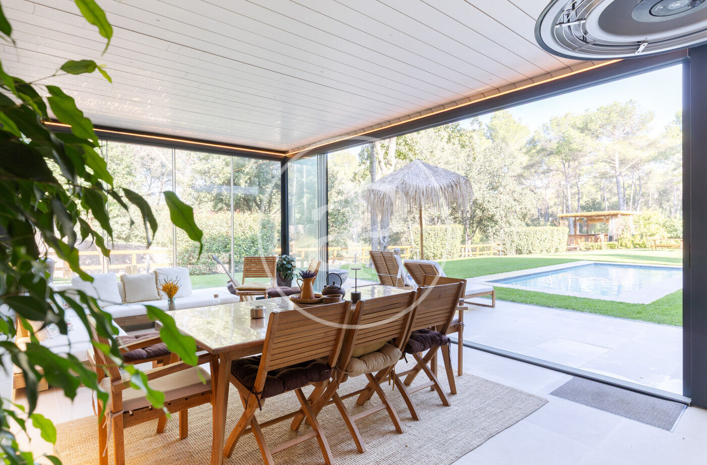 This property offers large green spaces to relax and enjoy nature just a few minutes from Sant Quirze and Bellaterra. The finishes are of high quality: underfloor heating, ducted hot/cold air conditioning, aluminum windows with exterior shutters, fireplaces in both the kitchen and living room, automatic irrigation system, perimeter alarm, and ample parking space.