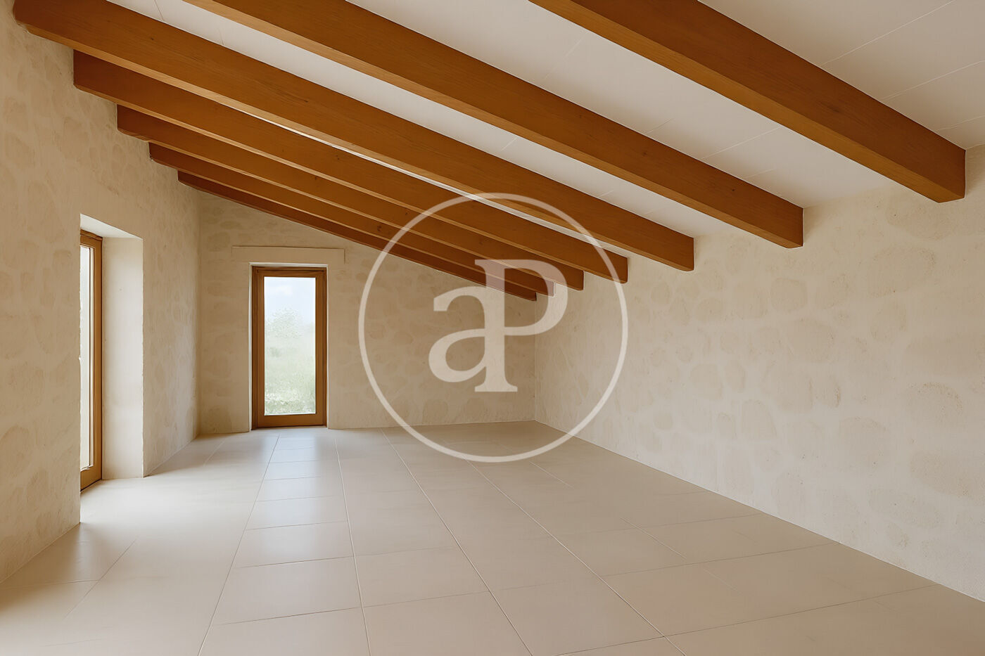 The renovated ceilings with exposed wooden beams add character and warmth, while the 145sqm interior courtyard becomes a blank canvas for designing a private oasis: garden, pool, terrace or even an event space.