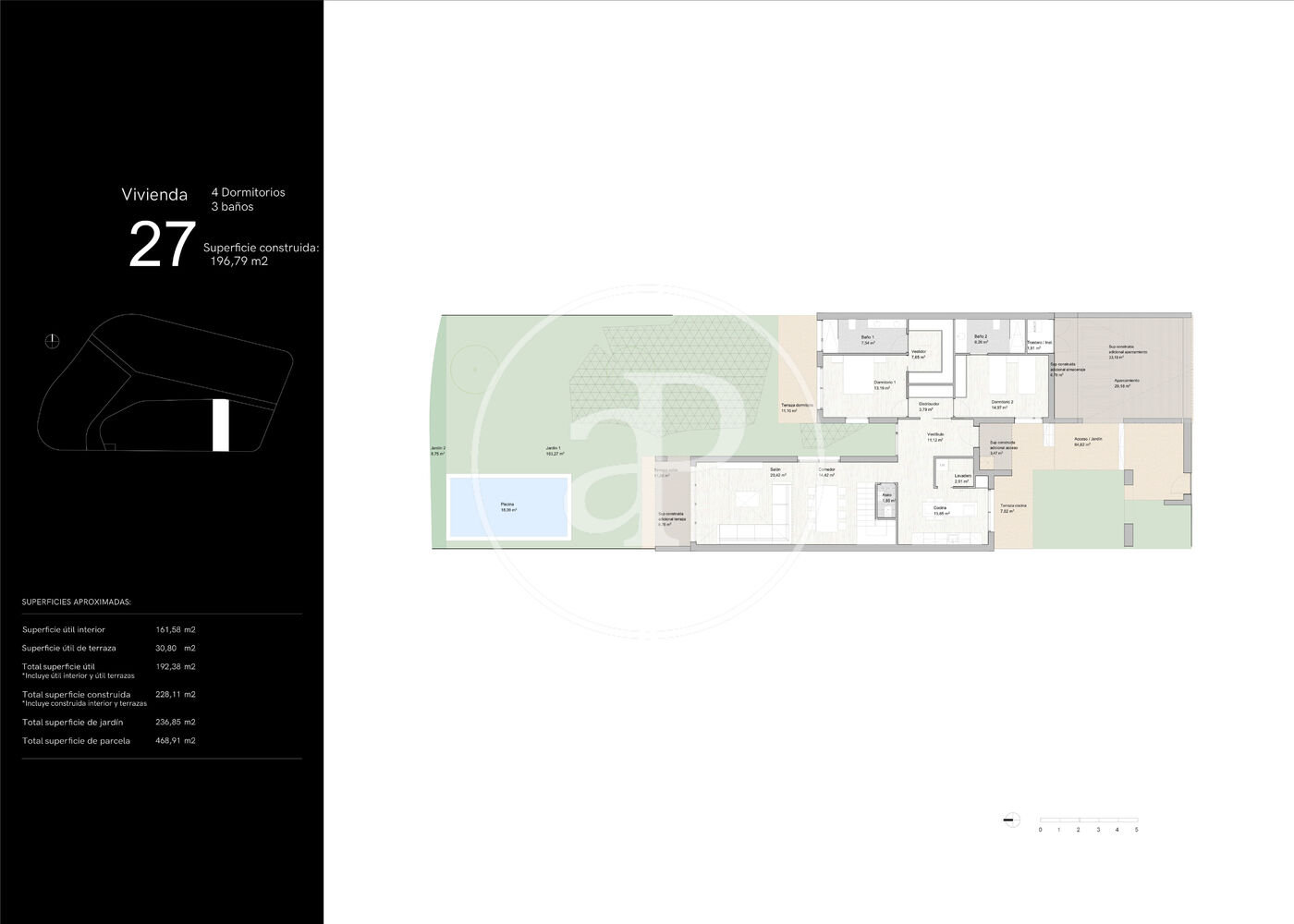 aProperties presents ONIX, an avant-garde project designed by Clavel Arquitectos in the Las Marías estate, Torrelodones. 29 single-family homes with 4 and 5 bedrooms are immersed and integrated in nature. Thanks to its independent gardens of more than 400 m² with private swimming pool and its spectacular surroundings, this exclusive residential complex allows you to enjoy the environmental richness of the Sierra de Madrid, with all the services of the capital less than 30 minutes away.
