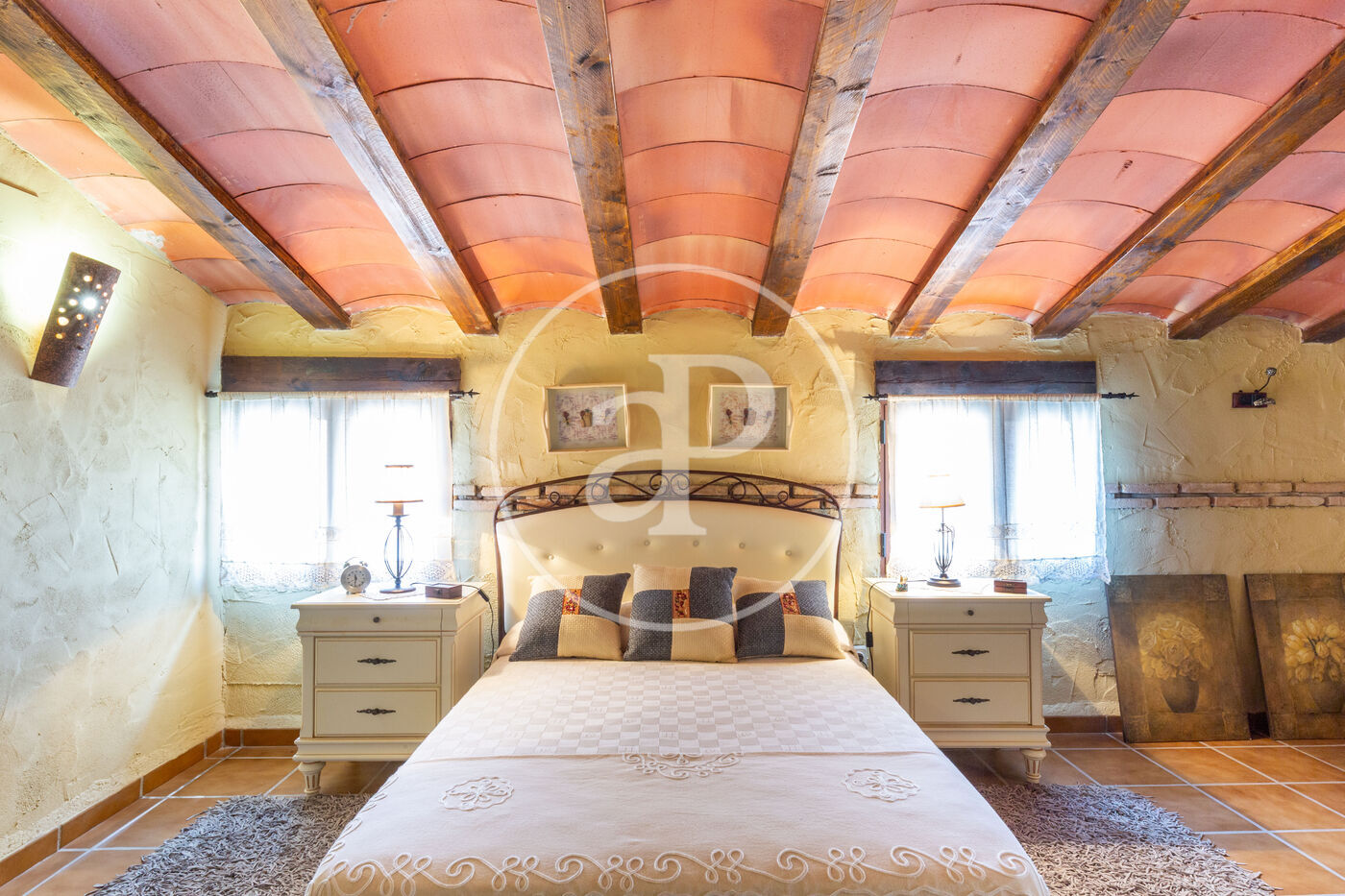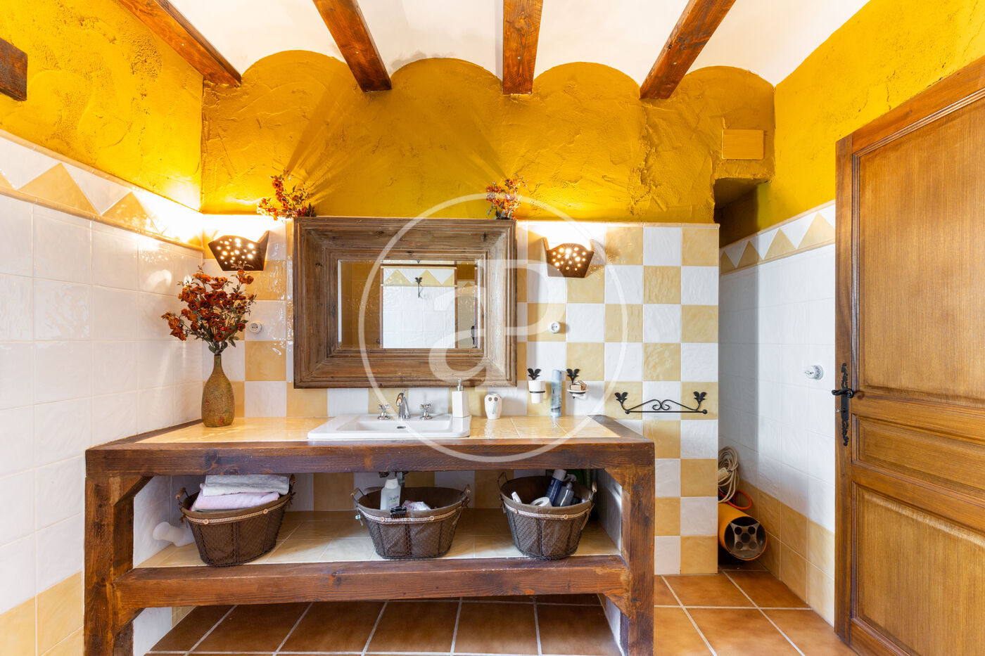 Beautiful original doors and wooden beam ceilings, preserving the charm of the house.