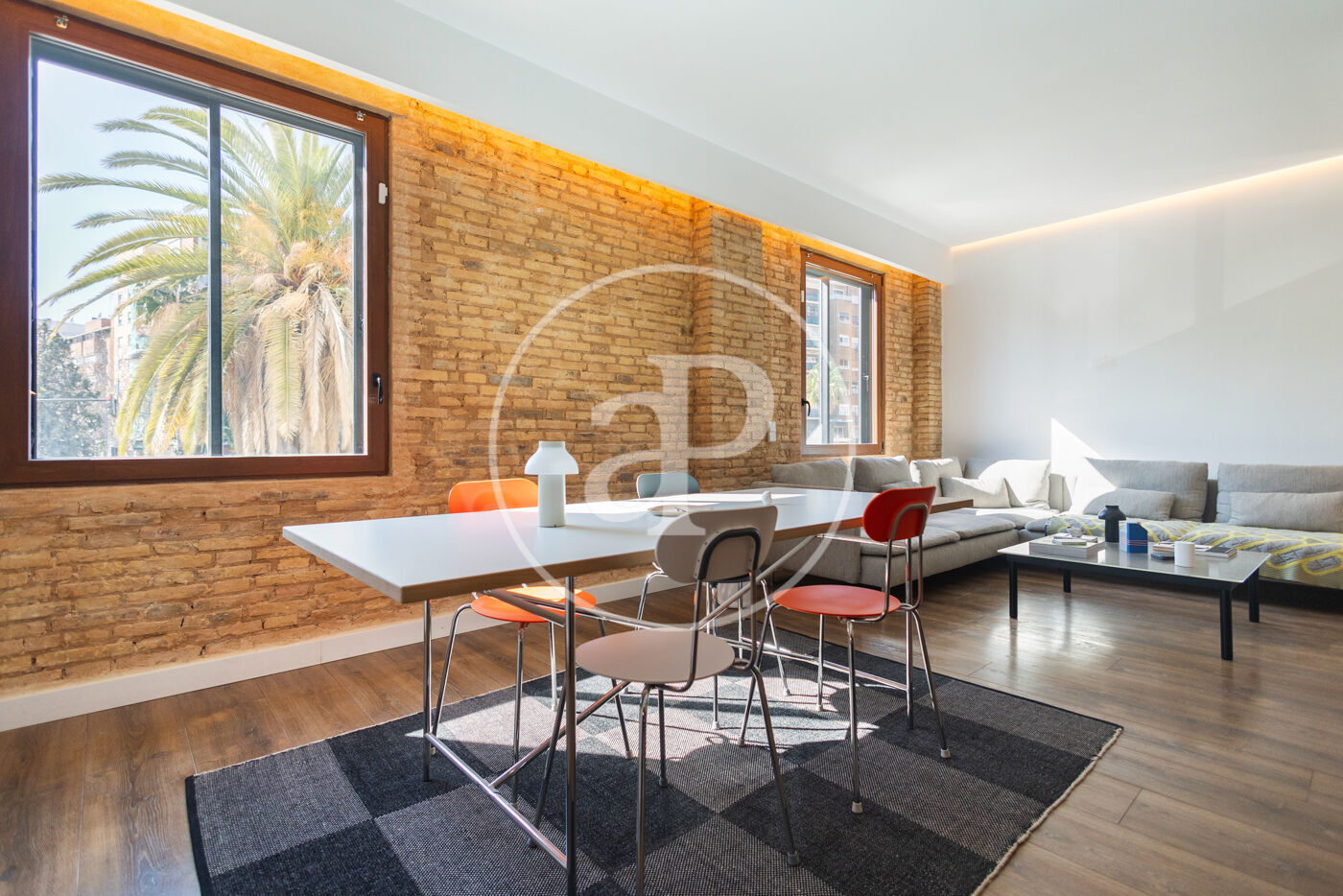 This magnificent renovated apartment is located on Cuenca Street, in a privileged area close to the city center. Located in the comfortable neighborhood of Arrancapins, this home offers a perfect combination of comfort and accessibility, with all the services at your fingertips. The home has been completely renovated by a team of architects, who have managed to masterfully fuse a modern style with the charming beauty of old brick. Natural light floods every corner of the apartment, creating a cozy and vibrant atmosphere. The kitchen open to the living room has been designed with top quality materials, adding a touch of style and modernity to the space. In addition, it has double soundproof windows that face the street, guaranteeing tranquility and comfort. The distribution of the property includes two comfortable bedrooms and an external bathroom. The laminated wood decoration, which goes from the ceiling to the floor, is discreetly integrated into each space, from the entrance to the living room-dining room-kitchen. The main room has a separate toilet and shower, fully integrated into the room itself. Highlighting the design, the house is distributed around a beautiful interior patio terrace, with access from three sides and an outside laundry room. The Arrancapins neighborhood offers a charming neighborhood where vitality and convenience merge in harmony. Just steps away, you'll find a wide variety of amenities that enhance your daily lifestyle. Supermarkets, shops of all kinds, metro and bus stops, as well as leisure areas such as the Mercado de la Imprenta and a wide variety of restaurants and fast food places, everything is within reach. In addition, the proximity to the Joaquín Sorolla AVE high-speed train station, hospitals, pharmacies and green parks, as well as renowned schools such as Colegio Nuestra Señora del Socorro, Agustinos, Teodoro Llorente or Luis Vives, make this neighborhood the perfect place to live. Do not hesitate to contact us for more information and to arrange a visit. We will be happy to assist you and show you all the wonders that this home and its surroundings have to offer.