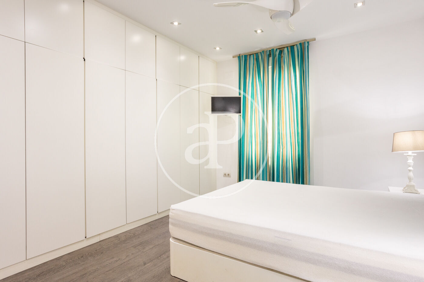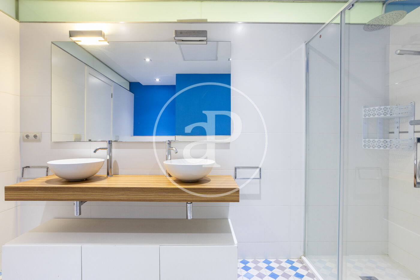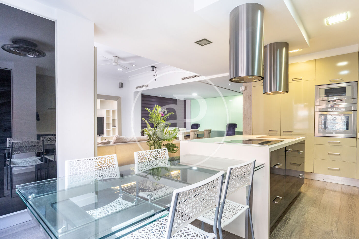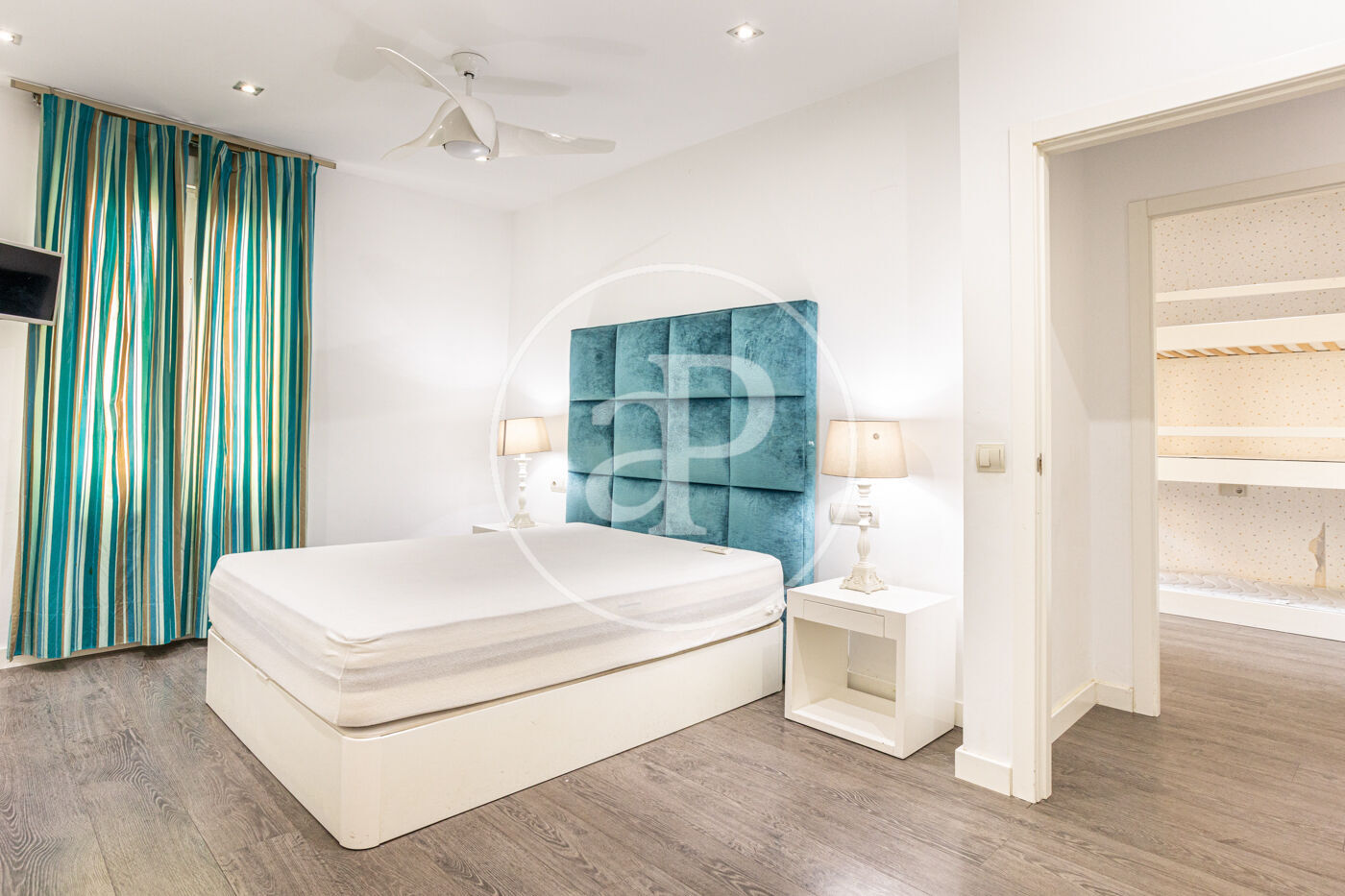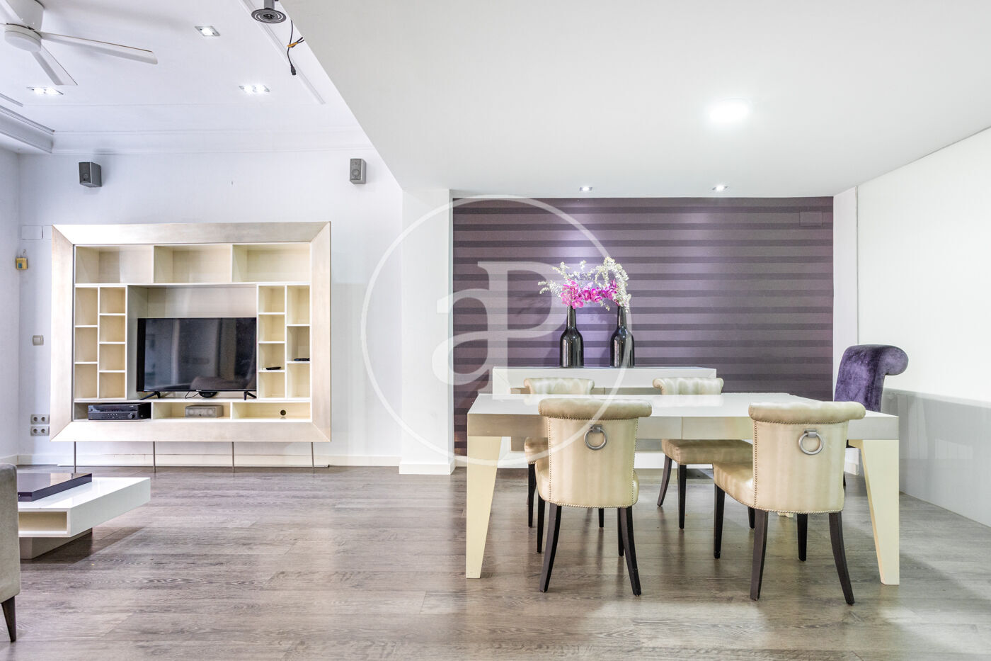The apartment stands out for its high-quality finishes; it is very spacious and bright, offers plenty of storage space, and is located just a 10-minute walk from Valencia City Hall. Features such as a projector with an automatically retractable ceiling screen, a teppanyaki grill, a wine cooler, and an outdoor laundry area make this property truly unique.