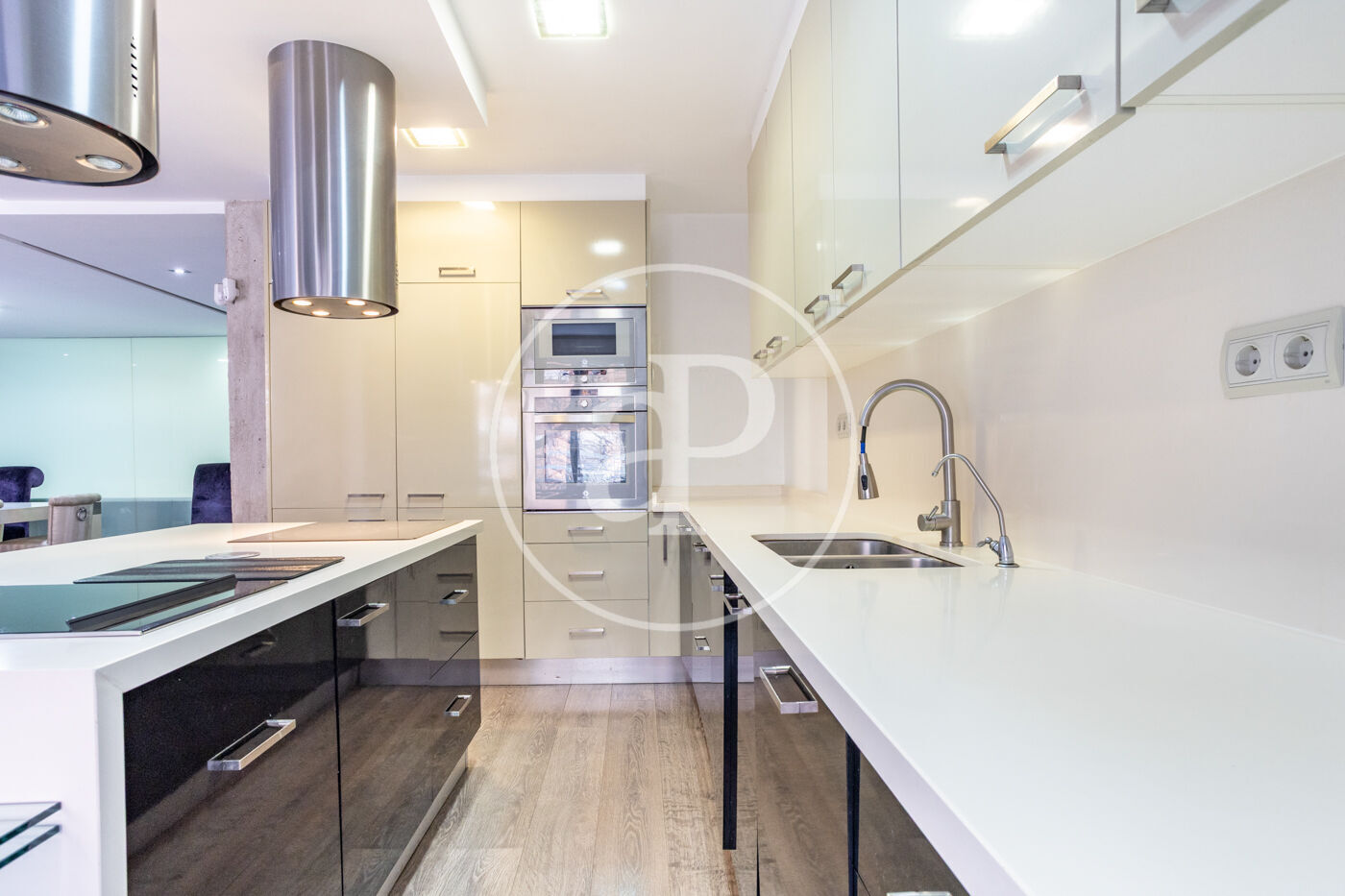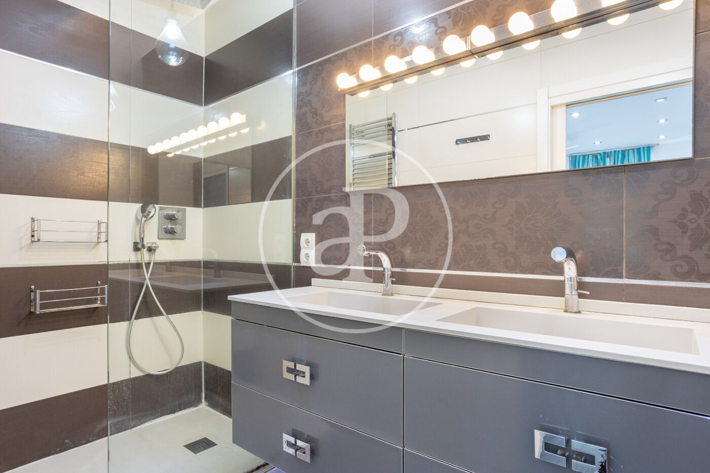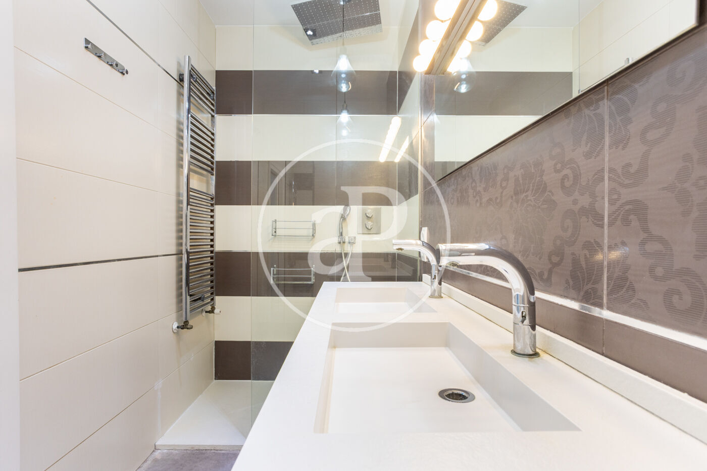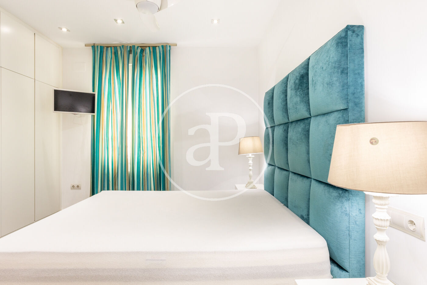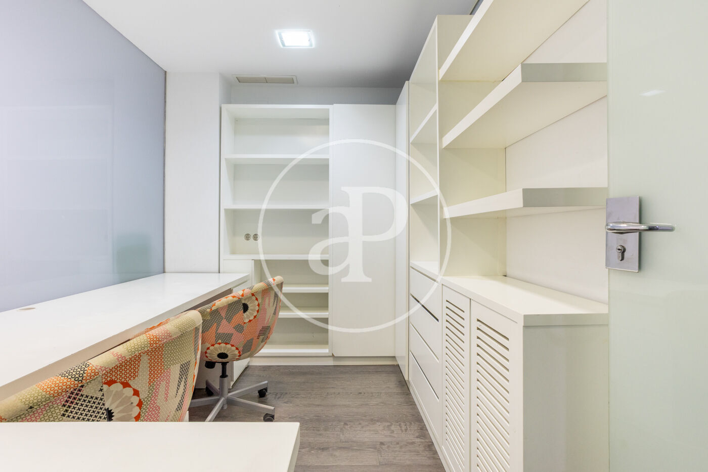 The apartment stands out for its high-quality finishes; it is very spacious and bright, offers plenty of storage space, and is located just a 10-minute walk from Valencia City Hall. Features such as a projector with an automatically retractable ceiling screen, a teppanyaki grill, a wine cooler, and an outdoor laundry area make this property truly unique.