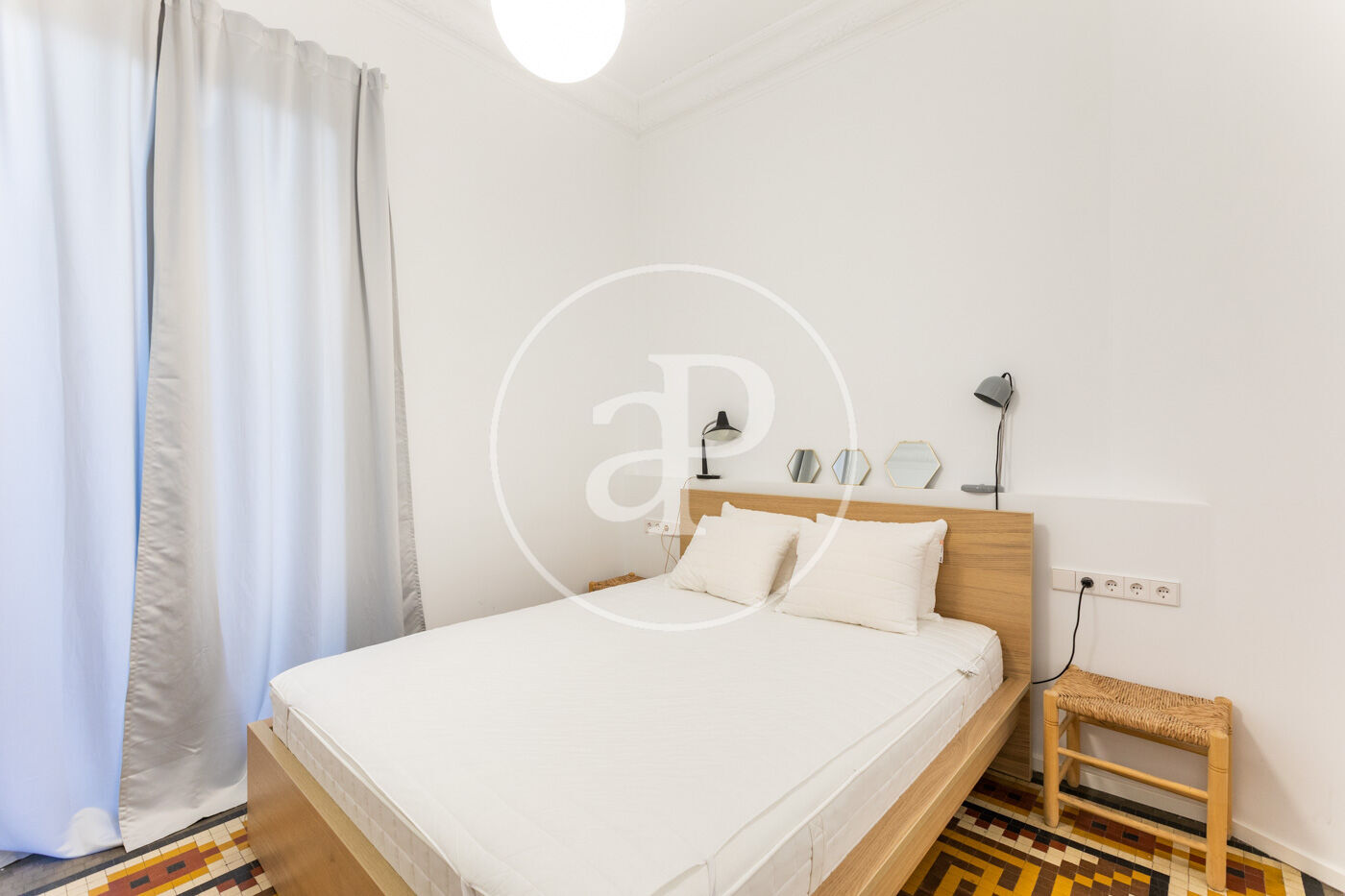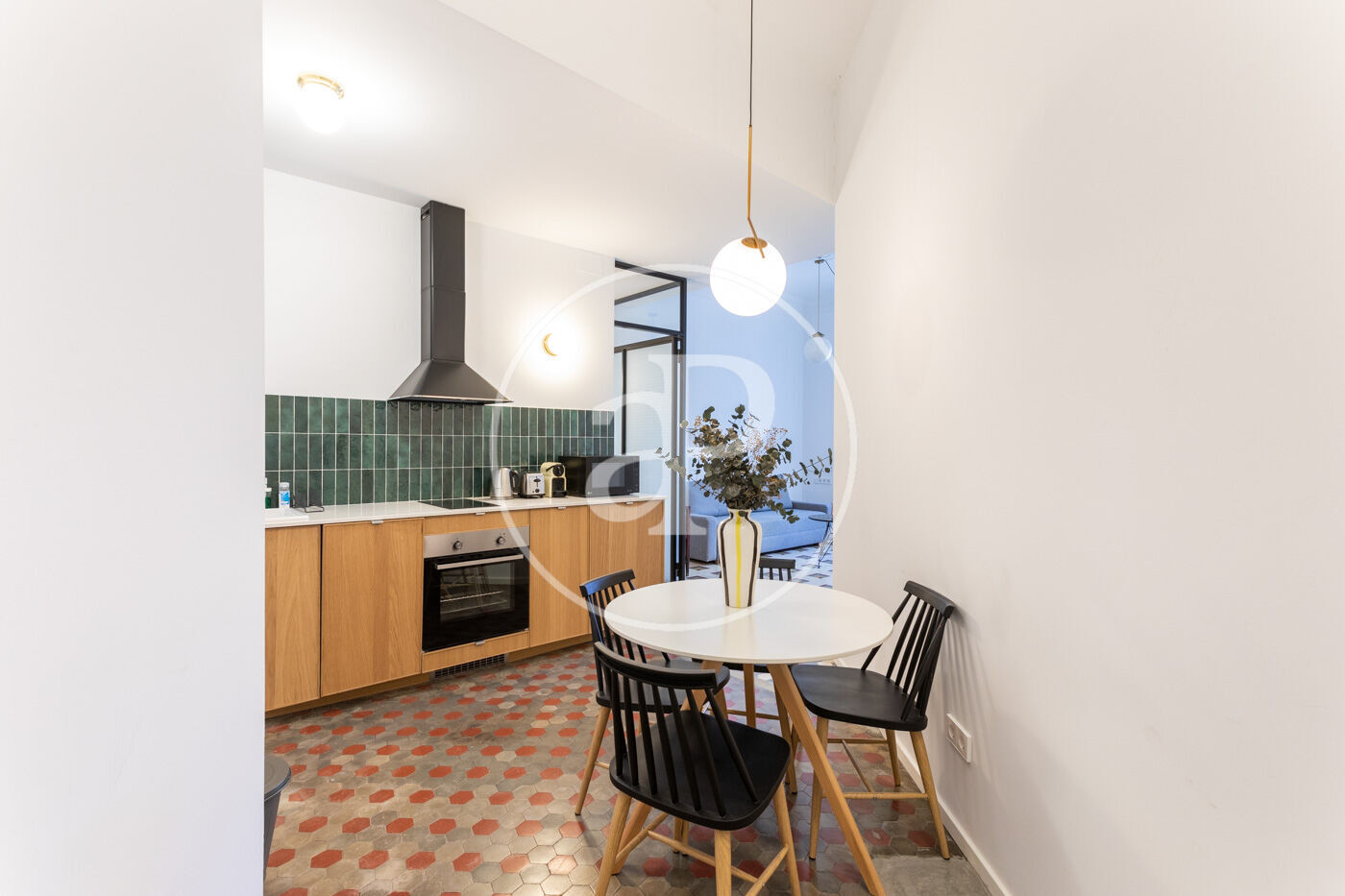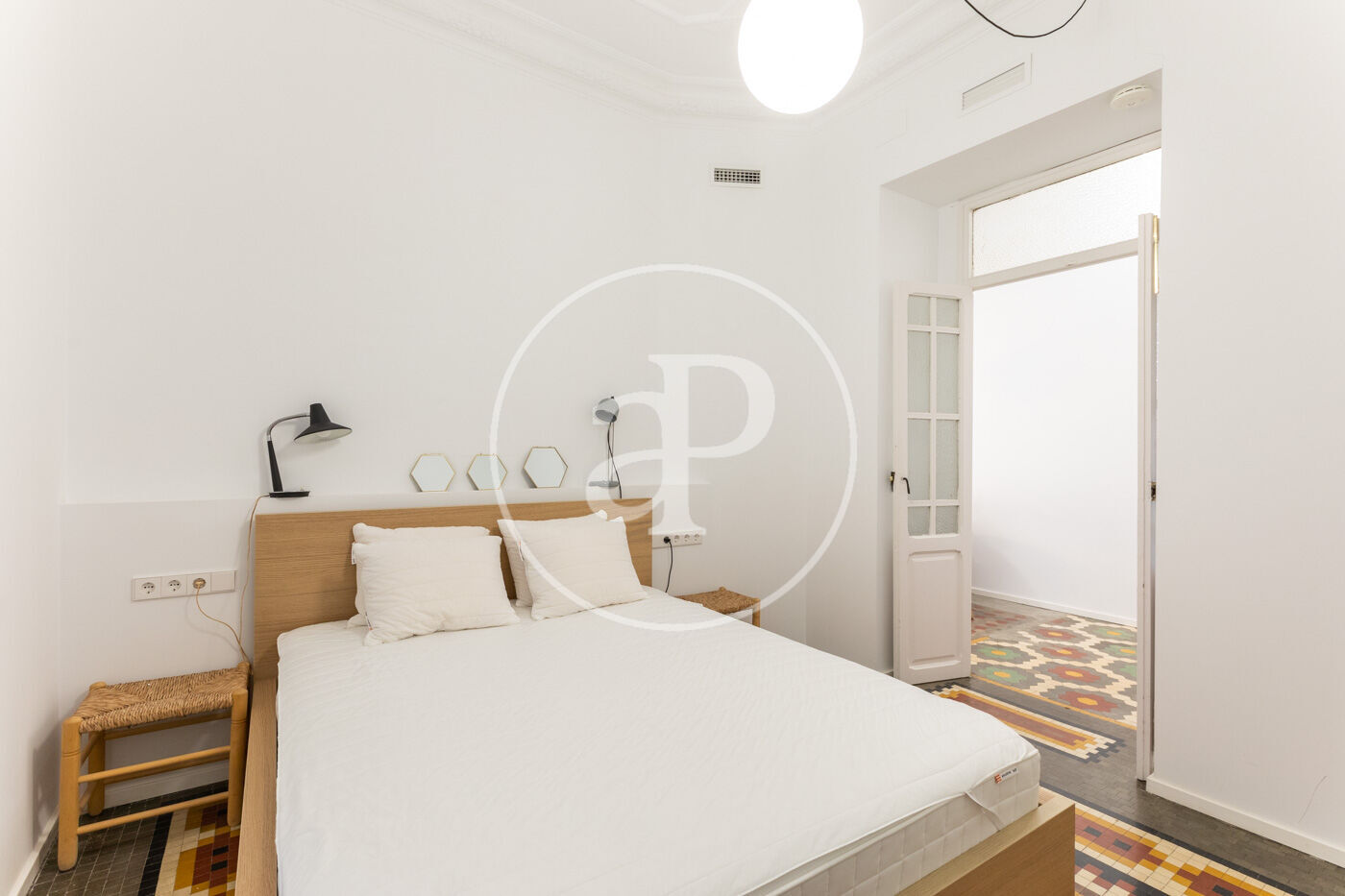 The apartment is very bright, completely renovated using top-quality materials, and elegantly decorated in a modern style. It features a living area with an open-plan, fully equipped kitchen and two large floor-to-ceiling windows that preserve the original design, enhanced with Climalit windows for a peaceful and quiet atmosphere when needed.