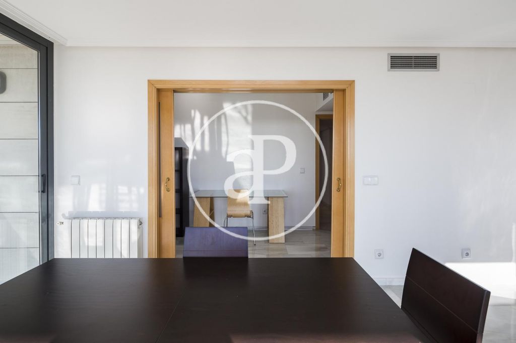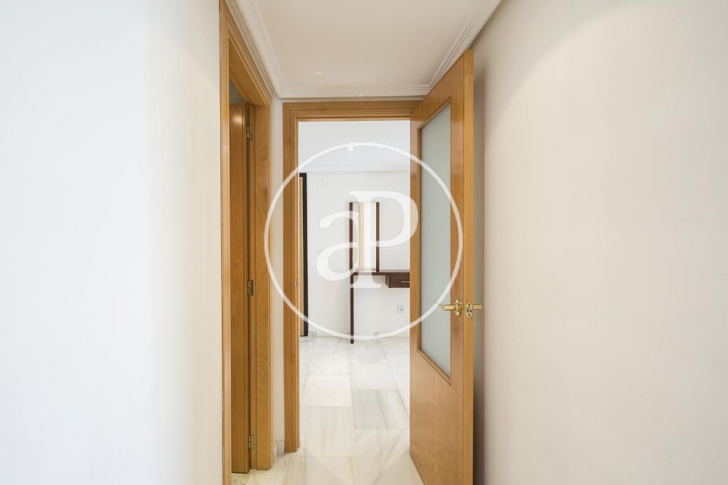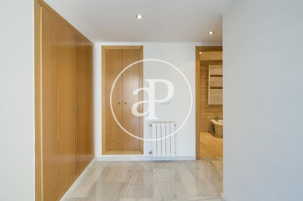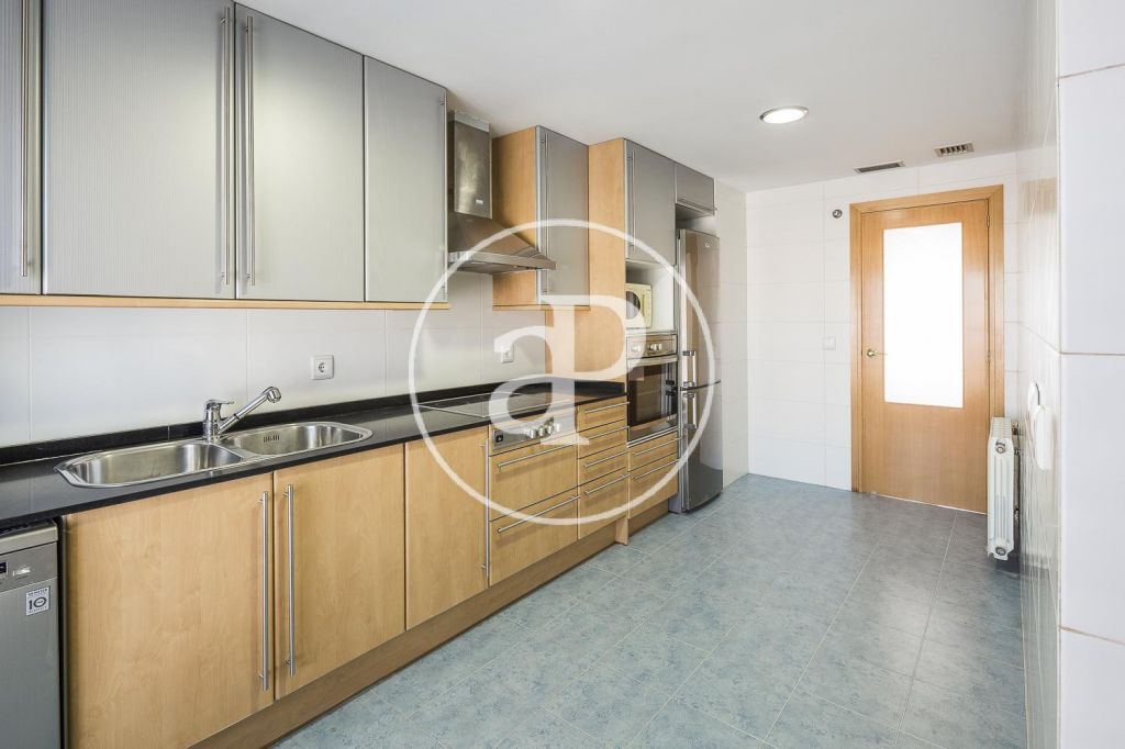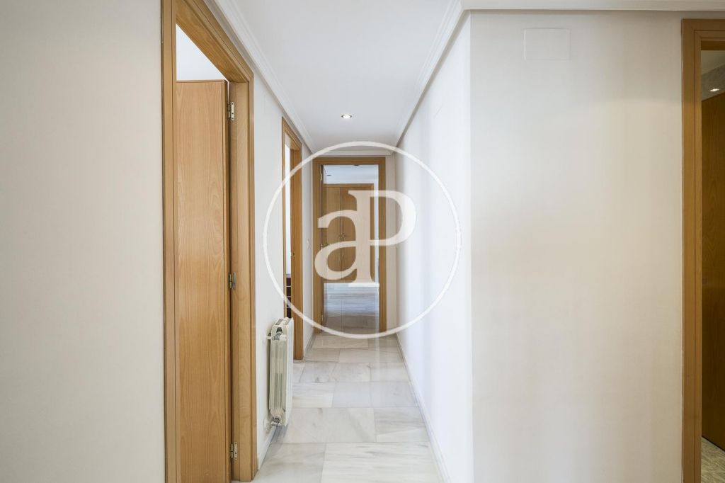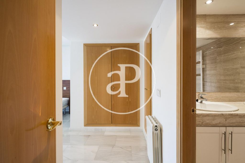 It is a very spacious 180m2 family apartment on a 6th floor. It has a nice living room and a terrace that provides great light to the apartment, a fully equipped kitchen with access to the laundry area. It has a comfortable study next to the dining room with independent access to the other rooms; all of them have large fitted wardrobes.