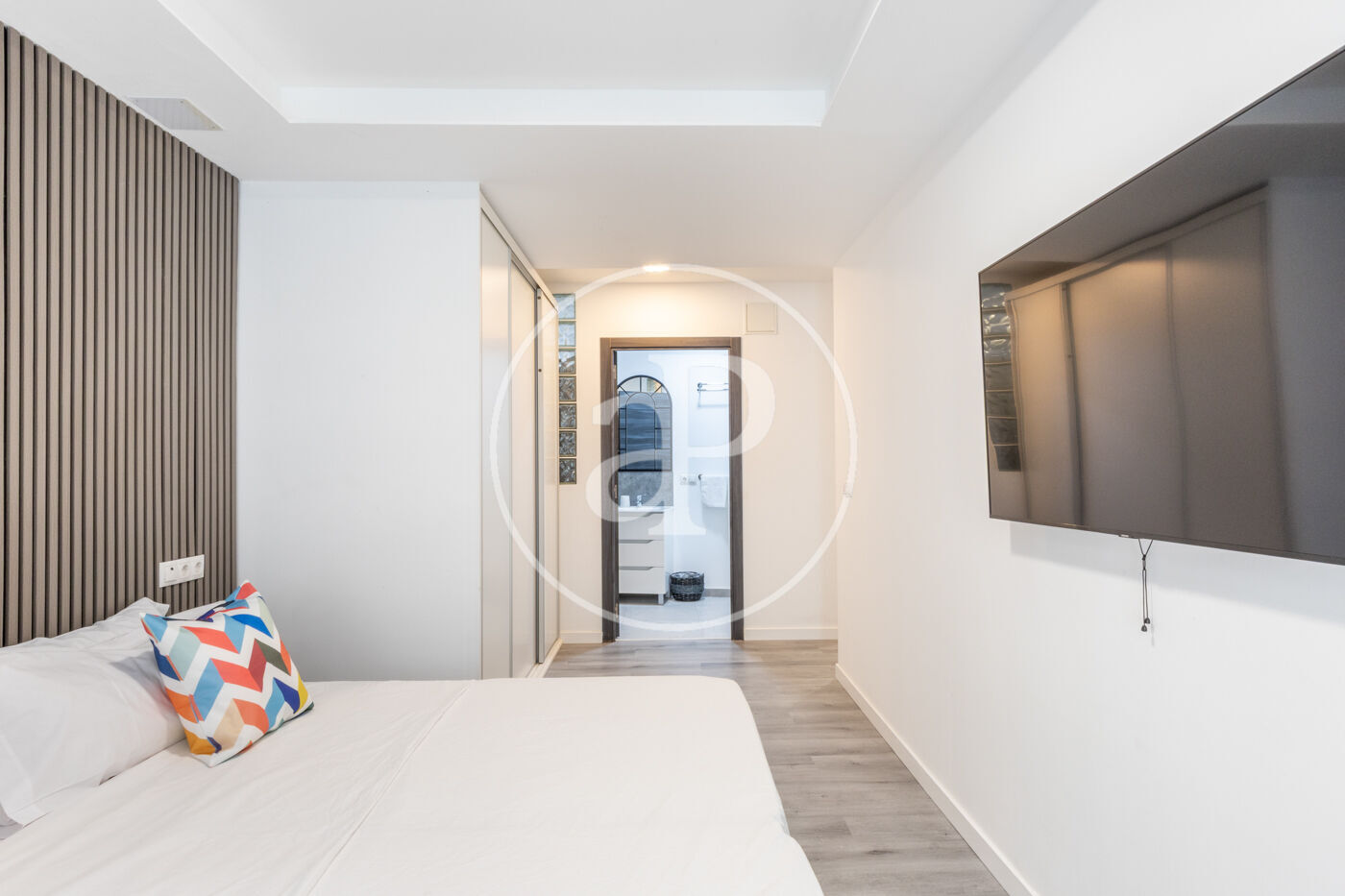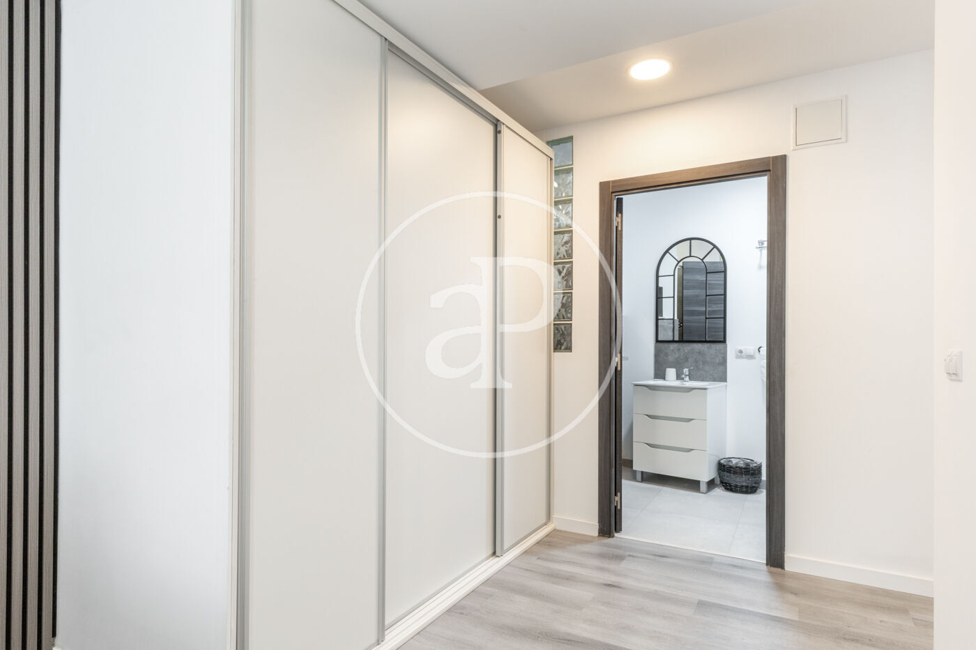 aProperties presents this exclusive 135 sqm residence, located in one of the most sought-after areas of Ruzafa. Designed and built by one of Spain’s most renowned architects, this property combines contemporary design, noble materials, and an exceptional level of comfort, creating an elegant, serene, and timeless home. The property is located on the fifth and top floor of the building, with elevator access, ensuring privacy, tranquility, and excellent natural light throughout the day. Upon entering the home, you are welcomed by a spacious open-plan area that integrates the living room and kitchen, conceived as the heart of the home. The living area stands out for its generous proportions, brightness, and carefully curated minimalist aesthetic. The fully integrated kitchen features all appliances concealed behind custom-made cabinetry, achieving a clean, sophisticated, and highly functional environment. The property offers two double bedrooms, both designed to provide maximum comfort and silence thanks to outstanding acoustic insulation in both walls and windows—an uncommon feature in the city center. The private area is completed by two spacious bathrooms, a separate home office, ideal for remote work, a walk-in wardrobe, and a practical laundry room. In addition, the property boasts excellent storage capacity, intelligently distributed throughout the home. Finishes are of the highest quality, including natural oak parquet flooring, bespoke oak carpentry and furniture, high ceilings, and warm, fully smart-controlled lighting, manageable via mobile phone. Year-round comfort is ensured by the underfloor heating system and air conditioning. Located in the heart of Ruzafa, surrounded by restaurants, shops, galleries, and a vibrant cultural scene, this property also offers absolute peace and quiet, making it a true urban retreat. There is the option to rent a spacious parking space in the same building for €110 per month (optional). If you would like more information or to arrange a viewing, please do not hesitate to contact us. We will be delighted to assist you and guide you every step of the way.
