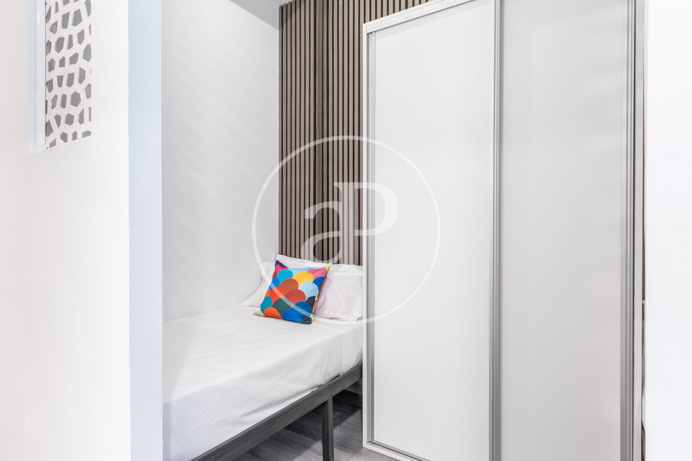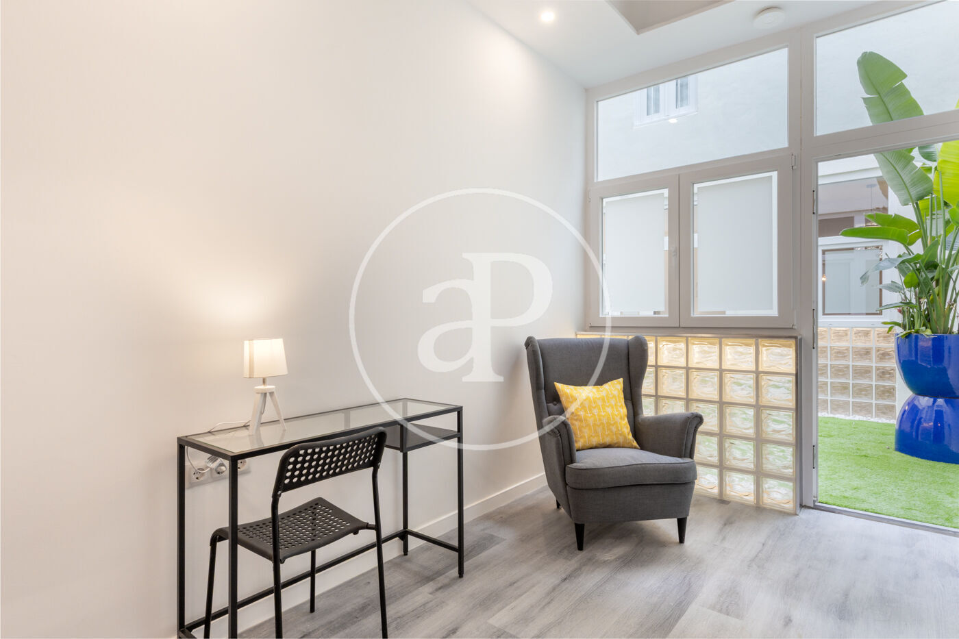 Located on the first floor, this studio is situated in the very center of Valencia, next to the Ruzafa neighborhood. Just a few minutes from City Hall, the San Francesc district, and the main shopping area, it is the ideal place to enjoy the city.